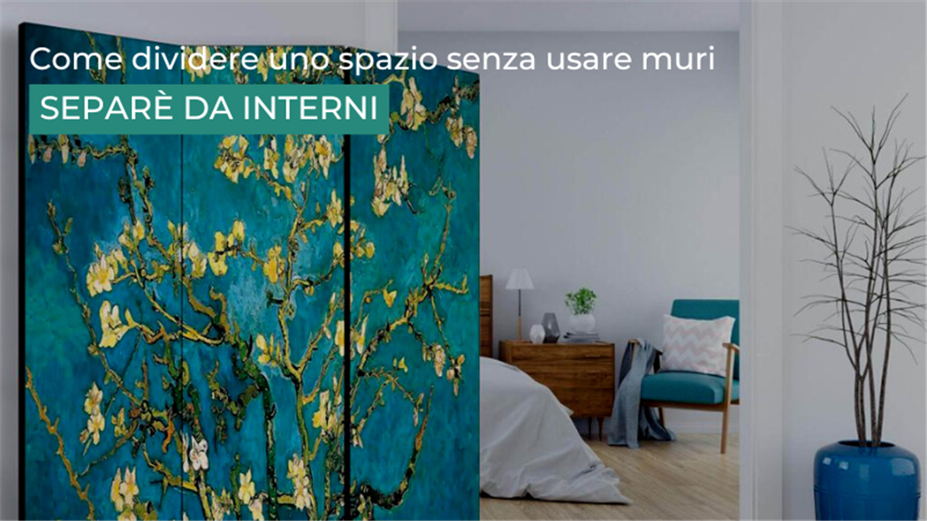 Separé da interni in legno con tela stampata del quadro "Rami di Mandorlo": Paravento in legno con tela in cotone stampata su entrambi i lati, raffigura il famosissimo quadro di Vincent van Gogh "
