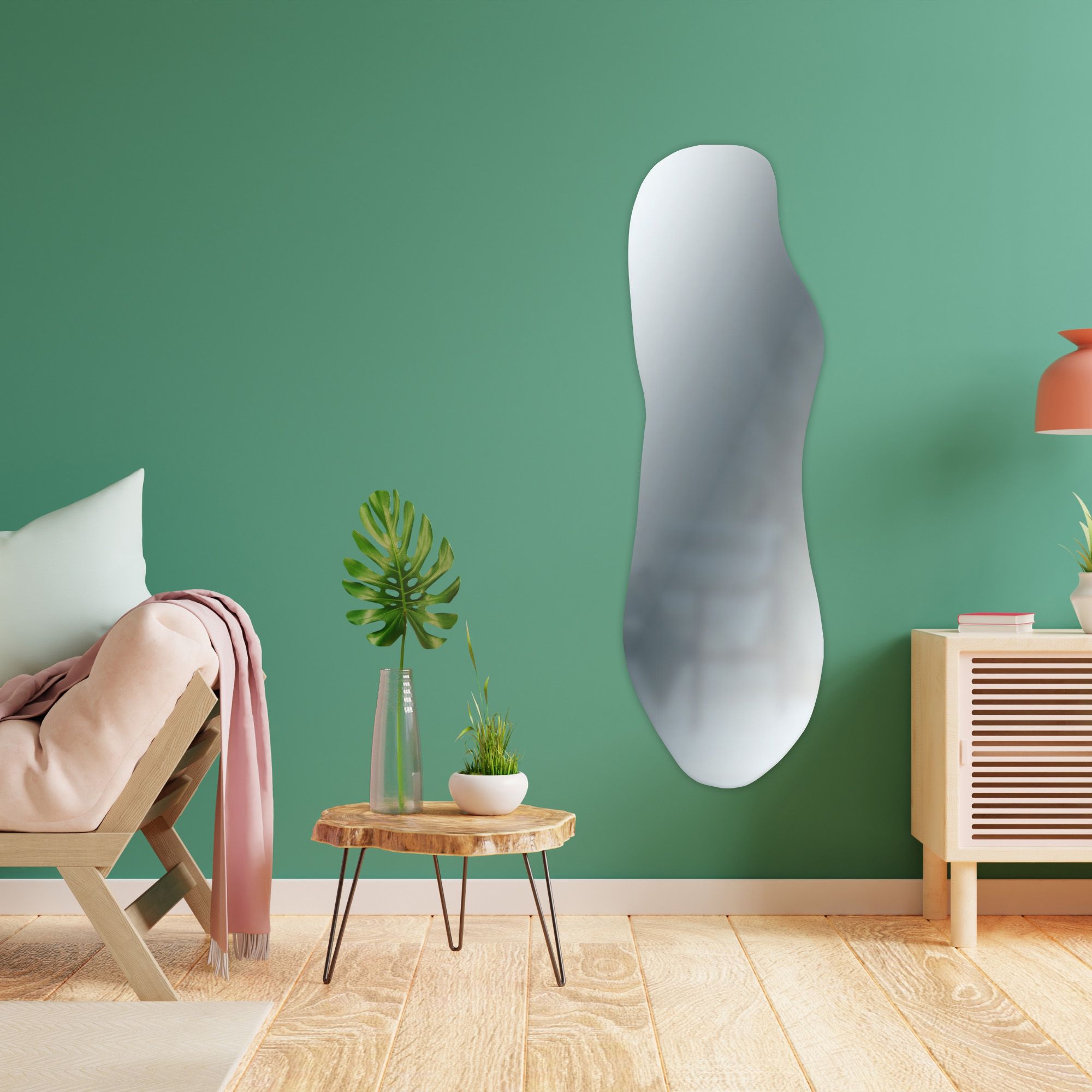 Con la sua forma allungata e armoniosa, questo modello a figura intera è perfetto per chi desidera amplificare visivamente lo spazio. Ideale per aggiungere profondità ad ambienti come corridoi e stanze di dimensioni ridotte. Lo specchio lungo da parete moderno a forma irregolare si presta per essere utilizzato in stanze di diverse dimensioni, come corridoi e loft dal carattere deciso. Posizionato singolarmente o in una composizione con specchi simili, può creare una sensazione di ampiezza ulteriore e di grande impatto visivo.