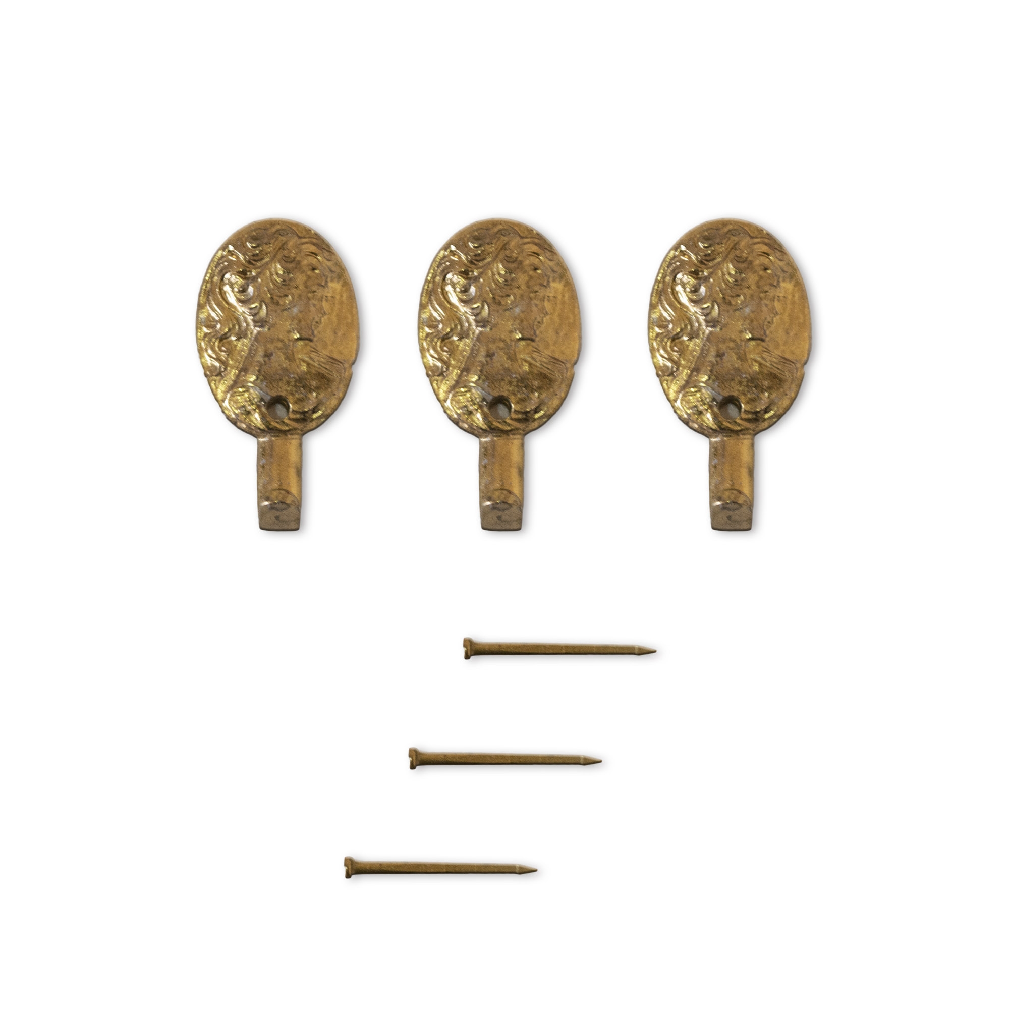 Kit composto da 3 ganci a raffigurante volto di Dama della serie Oro. Ogni singolo gancio misura 3,8x2,0 cm. Realizzato in metallo con finitura dorata, per avere un effetto più artistico. Utile per appendere sulla parete di casa il proprio quadro, specchiera o cornice portafoto. I nostri Ganci Per Quadro,Specchiera, Cornice, possono essere fissati su altri supporti per creare portachiavi o altri utensili. Si adatta allo stile del tuo arredamento per soggiorno,salotto,camera da letto,corridoio, ingresso, cucina o anche per ambiente non domestici. All'interno della confezione sono presenti i chiodini, per il fissaggio sulla parete o su qualsiasi tipo di superficie, come ad esempio il legno.