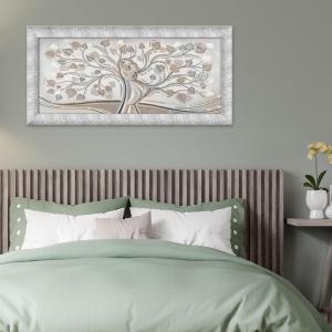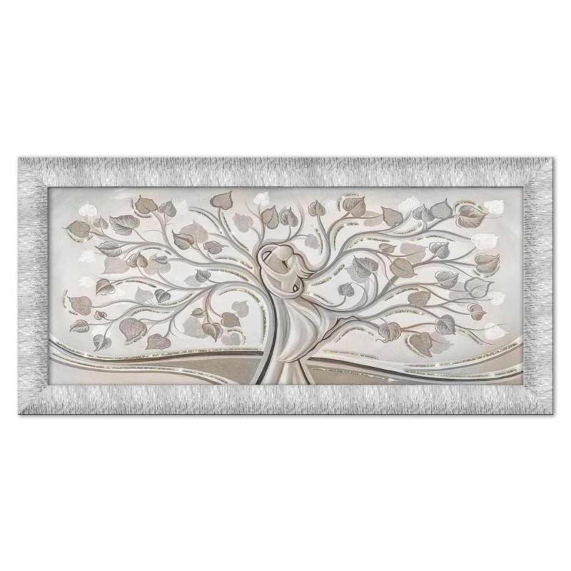 Lupia - Quadro moderno su tela e cornice Prince argento ALBERO ABBRACCIO MIX SILVER, Eleganza artigianale, Glitter, 63x133 cm, Adatto a soggiorno e camera da letto, Cornice legno -