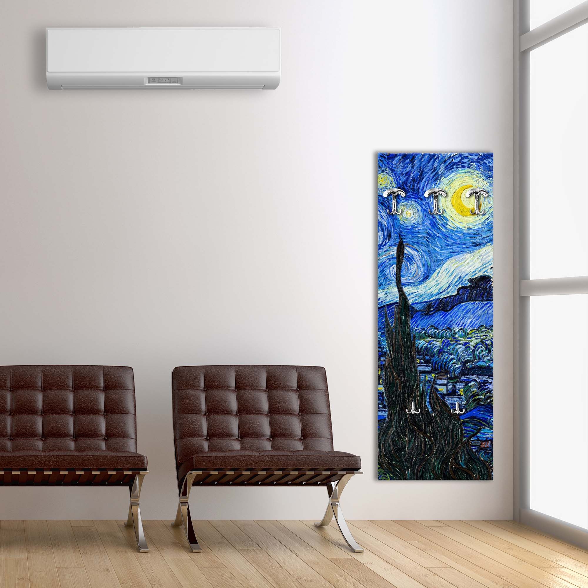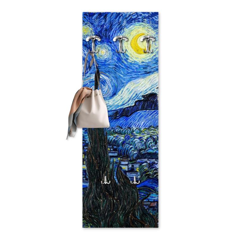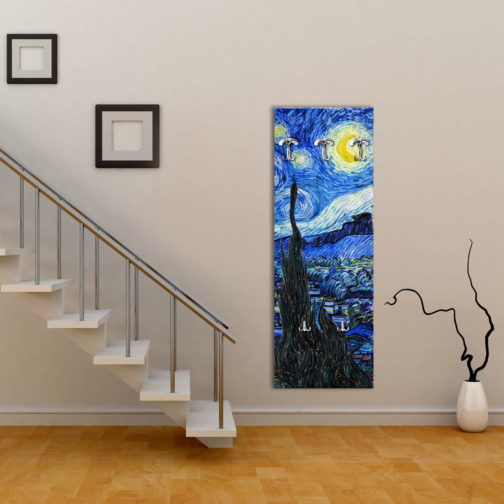 Realizzato in fibra di legno, il nostro Pannello con Stampa notte stellata è molto più di un semplice Attaccapanni: oltre ad essere estremamente funzionale, è un vero complemento d'arredo capace di ottimizzare lo spazio nel migliore dei modi. Il pannello stampato dai colori vivaci, raffigura il celebre quadro di Vincent van Gogh “Notte stellata”, in cui viene rappresentata la città di Saint-Rémy-de-Provence poco prima del sorgere del sole.
