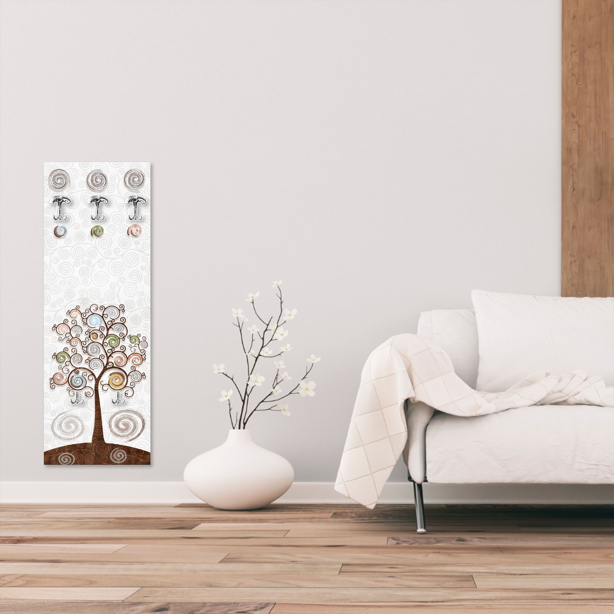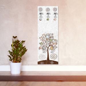 Un moderno ed elegante appendiabiti da parete con decorazione Albero della vita. Un appendiabiti che è anche pannello decorativo realizzato in fibra di Legno, che risulta essere un ideale complemento d’arredo salvaspazio da utilizzare come attaccapanni con un design unico nel suo genere. L’appendiabiti a muro si adatta facilmente a qualsiasi ambiente domestico e lavorativo. La sua decorazione semplice ma di effetto si adatta a tutti gli arredi della tua casa, per l’ingresso, corridoio, il soggiorno, camera da letto, cucina, salotti con stili moderni, classici e tradizionali. La decorazione riprende con toni neutri e colori pastello il simbolo dell’albero della vita che rappresenta un’idea di rinascita e rinnovamento.