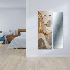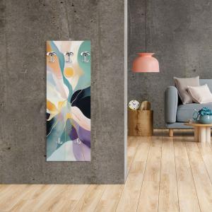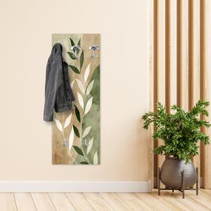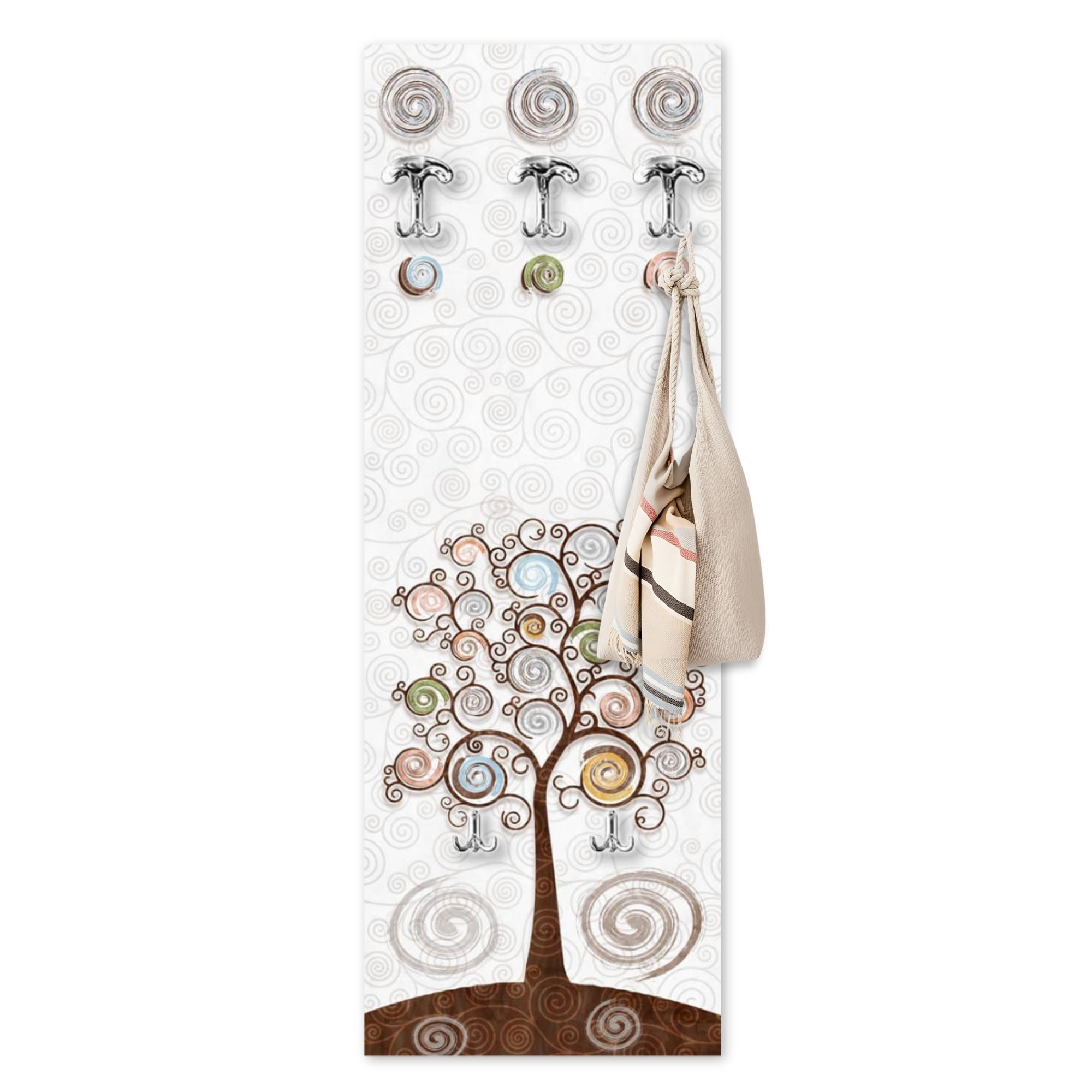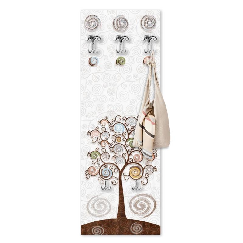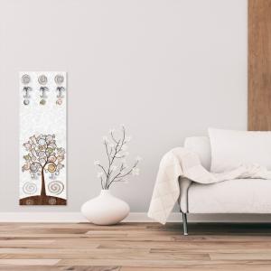 L’appendiabiti da parete o guardaroba con pannello Stampato include 3 ganci appendiabiti, ciascuno composto da 1 grande di supporto e 2 piccoli, con 2 ganci porta borse o accessori inferiori già montati e pronti all’uso. L'appendiabiti da muro è di facile montaggio alla parete con il kit di viti e tasselli forniti nella confezione che fisseranno il pannello al muro direttamente dai fori presenti sui ganci. L’appendiabiti albero della vita è solido e robusto grazie ad un pannello con spessore di 1 cm, con bordo dal colore chiaro. Il prodotto è realizzato completamente in Italia con cura, viene spedito con imballo resistente e sicuro. Dimensioni del prodotto: 46x125 cm.