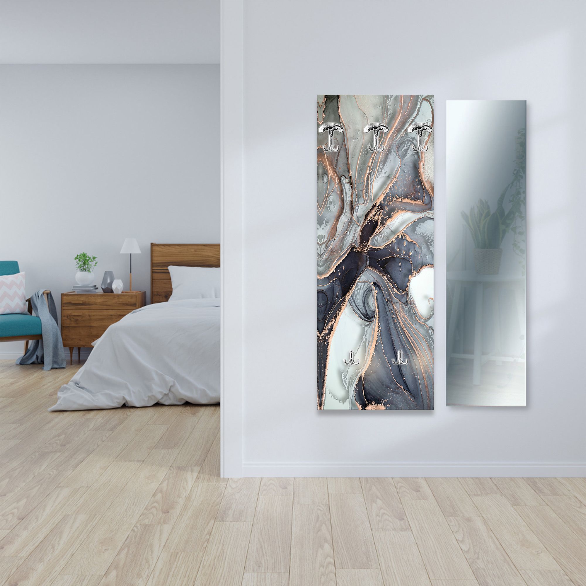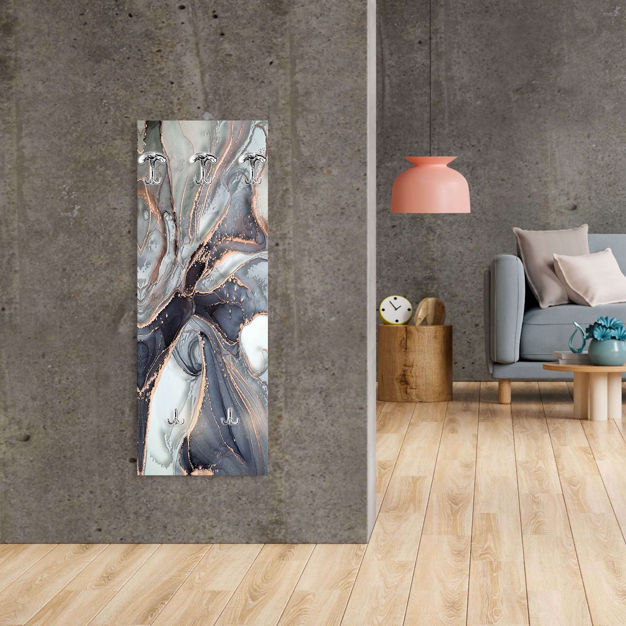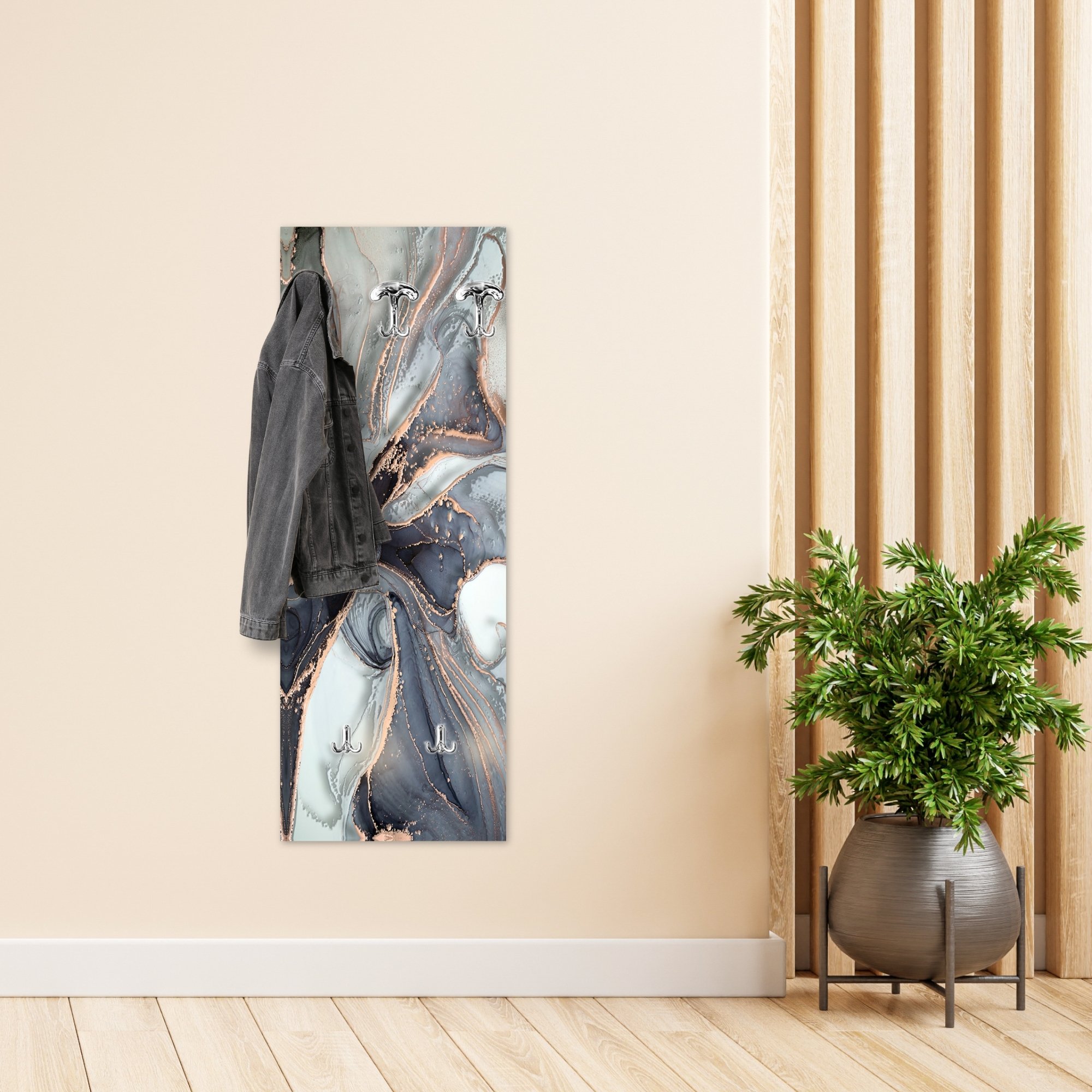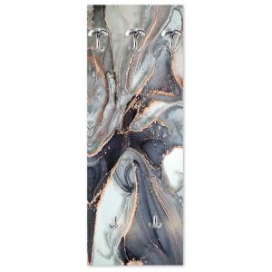 Lupia - Appendiabiti da Parete moderno con pannello in legno Stampato, MARBLE WAVES GREY 46x125 cm, Design Marmo Astratto, 5 Ganci in metallo, Stampa HD, ingresso soggiorno camera da letto -