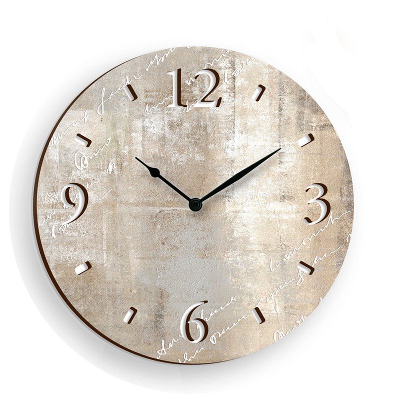 Il nostro orologio decorativo da parete e’ realizzato su pannello da 3 mm in fibra di legno rotondo, intagliato dal pieno ottenendo forme scavate con lo stile della linea, con stampa decorativa di alta qualita’. Complementi d'arredo che combinano funzionalita' e bellezza. Orologi da parete che uniscono la praticita' di controllare l'ora alzando lo sguardo, al piacere di vedere la tua parete illuminata da una piccola opera d'arte. Le misure disponibili dell'orologio sono 32x32 cm, per arredare la tua casa in modo elegante e originale. Adatto per tutti gli stili di casa, dalla camera da letto alla cucina, dal soggiorno alla sala da pranzo, ogni locale puo' essere impreziosito da un orologio di questo tipo, molto utile anche per ambienti di lavoro. Garanzia di raffinatezza Made in Italy. Orologio con movimento a quarzo alimentato a batteria, e' necessaria 1 batteria alcalina AA, non fornita.
