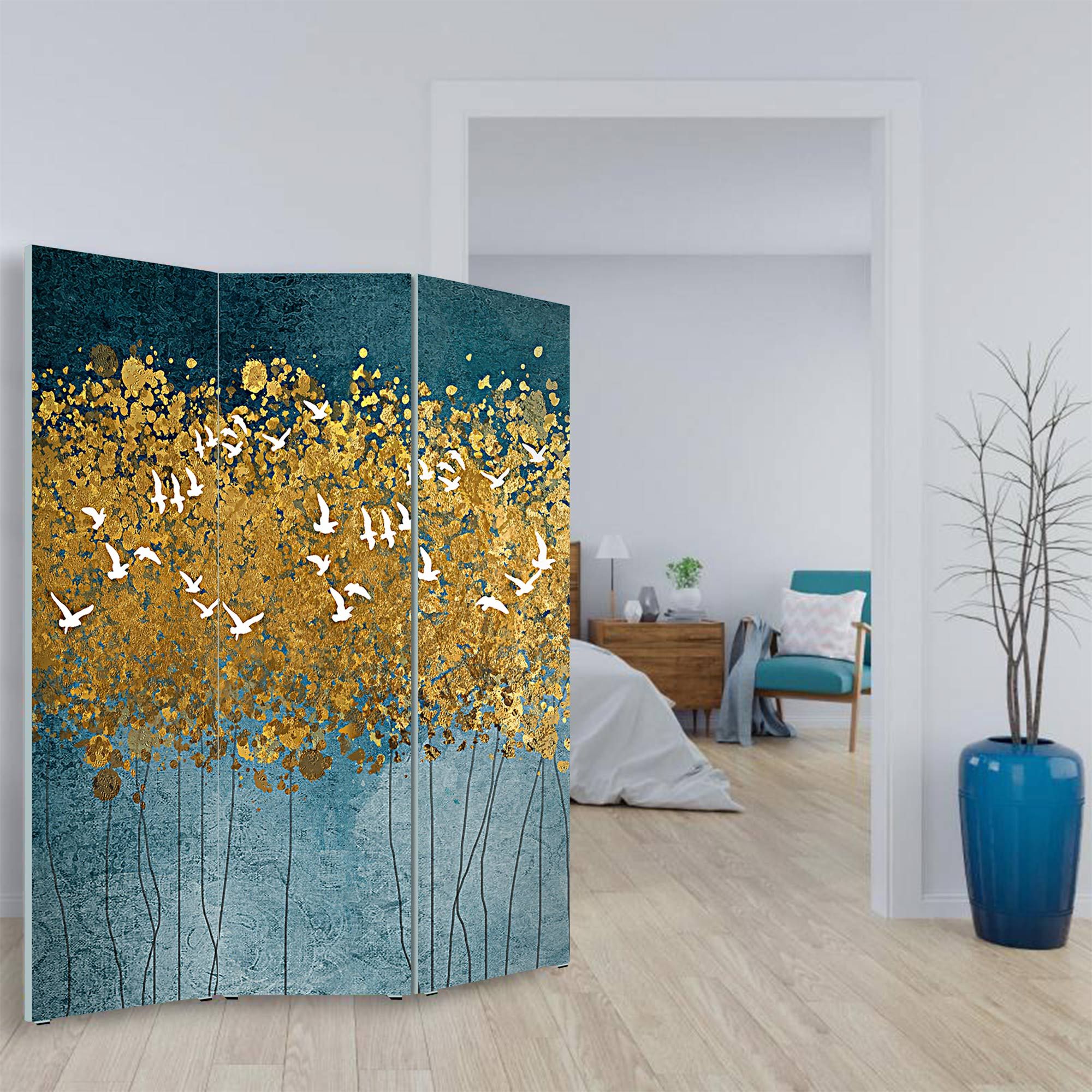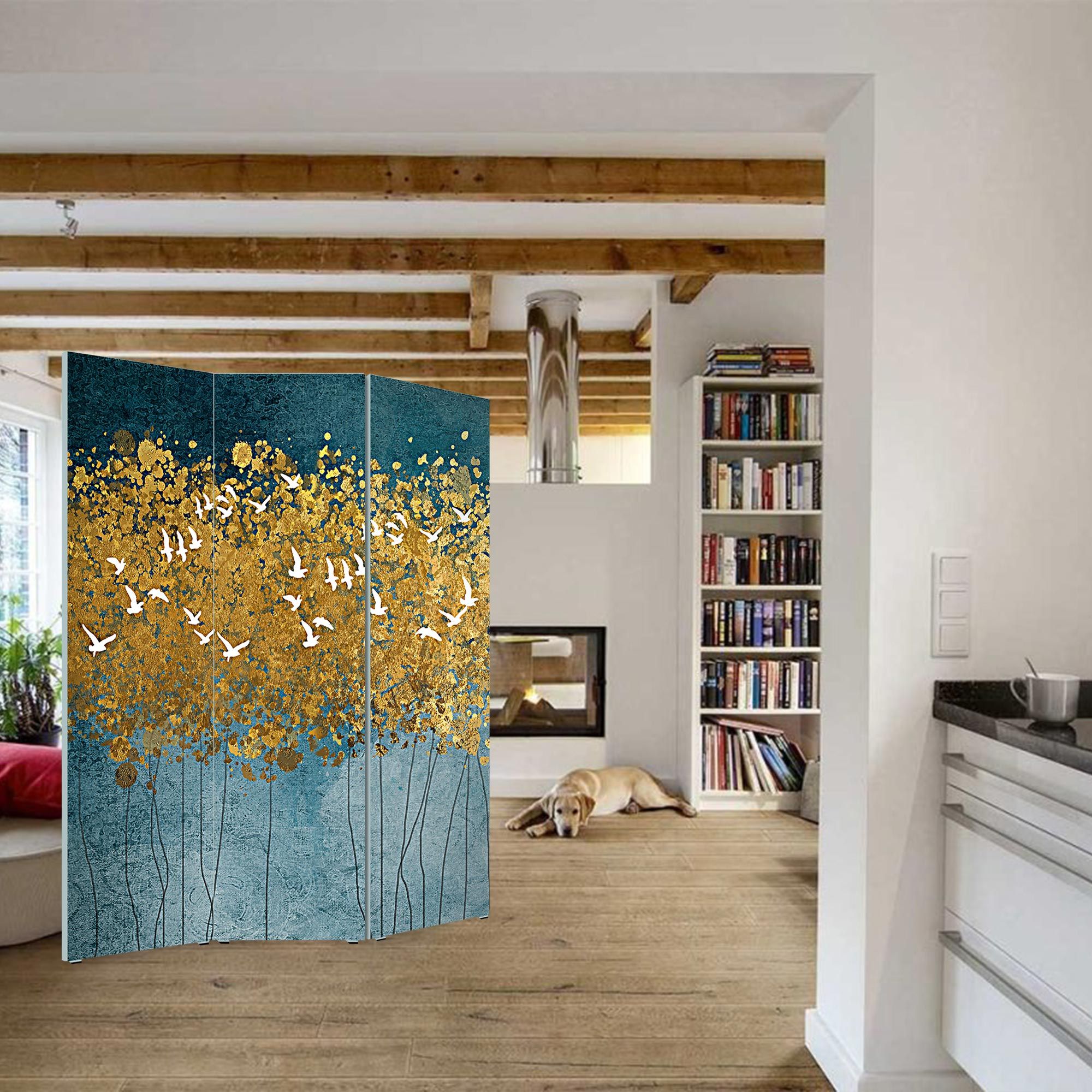 Lupia - Separe' per interni, Divisorio 135,6 x H 176 x P 3,1 cm FLYING TREES paravento 3 Ante in legno con Tele stampate fronte retro Soggetto unico -