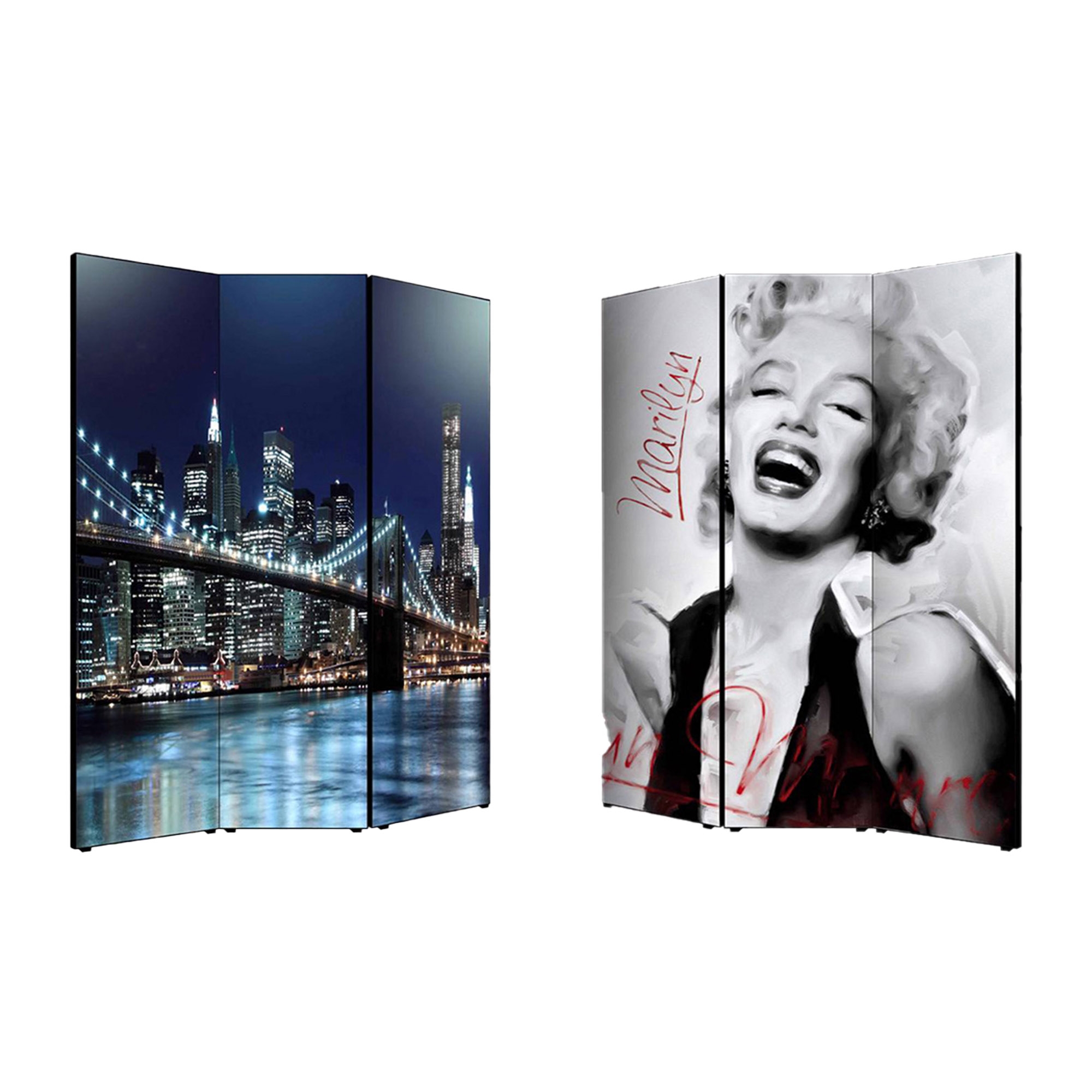 Divisore con struttura in Legno e Tela in cotone stampata in alta definizione su fronte e retro, e’ un utile Separe’ Bifacciale mobile che vi permette di dividere per privacy una parte del vostro ambiente, creando un originale panorama con sfondo artistico grazie all’immagine ed al tema scelti. Il Paravento ha una struttura mobile solida composto da 3 Pannelli pieghevoli, da posizionare su qualsiasi tipo di pavimento grazie al supporto offerto dai piedini in plastica forniti. Un complemento d’arredo che decora o nasconde angoli della vostra stanza, permettendovi di strutturare e organizzare uno spazio con grande facilita’. Le 3 ante pieghevoli sono fissate tramite un sistema di cerniere che ne consente la facile mobilita’ e apertura a seconda delle esigenze. Un’idea originale per gli ambienti di casa come soggiorno, camera da letto, in cucina, bagno, sale da pranzo, ingresso, o per tutti i luoghi non domestici, come ufficio, Hotel, bar, negozio o laboratorio, perché sono adatti a qualsiasi tipologia di stile e arredamento. Prodotto completamente in Italia, le sue dimensioni sono 176x135.6x3,2 cm