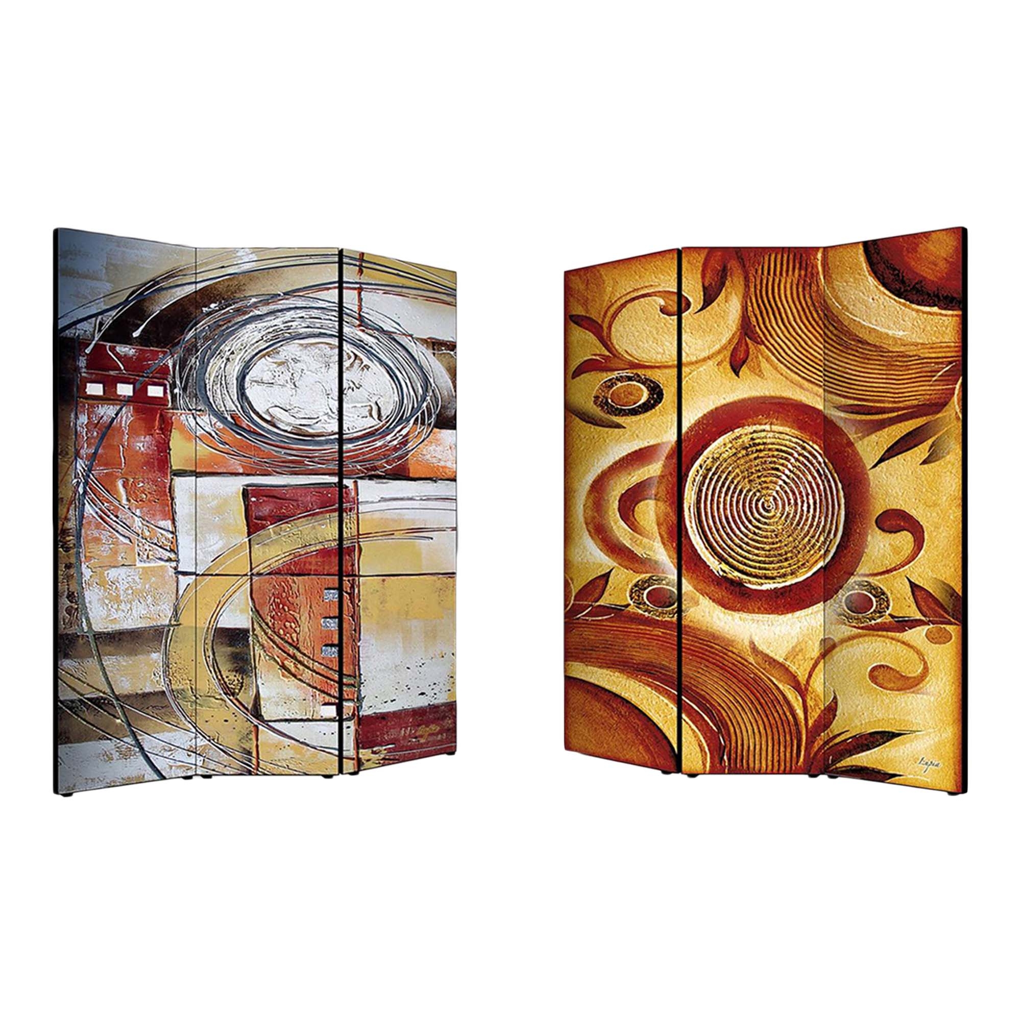 Separe' Divisorio Paravento ASTRATTO 176x135,6x3,2 cm 3 Ante in Legno con Tela stampata Fronte Retro bifacciale -