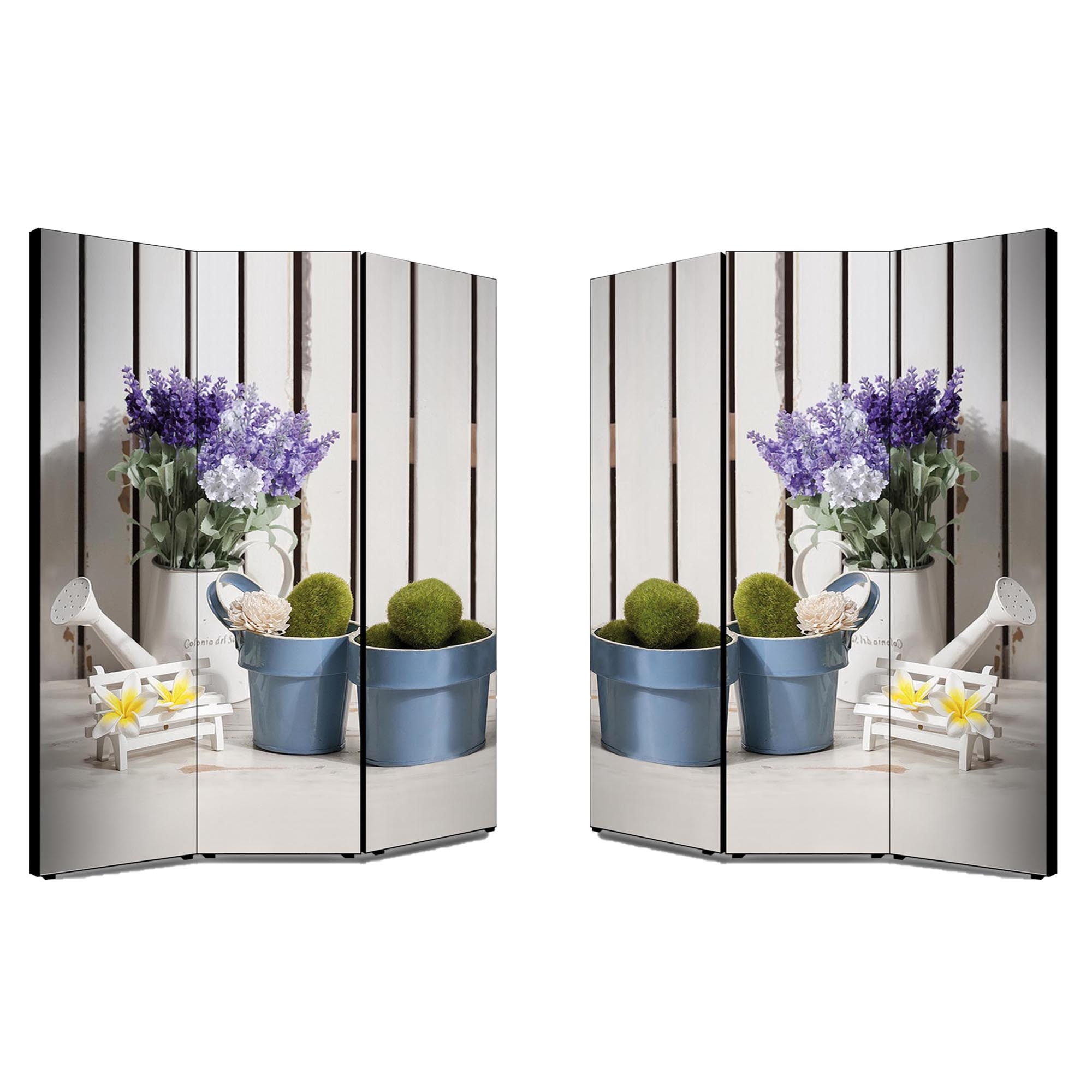 Separe' Divisorio Paravento BLUE POTS 176x135,6x3,2 cm 3 Ante in Legno con Tela stampata Fronte Retro bifacciale -
