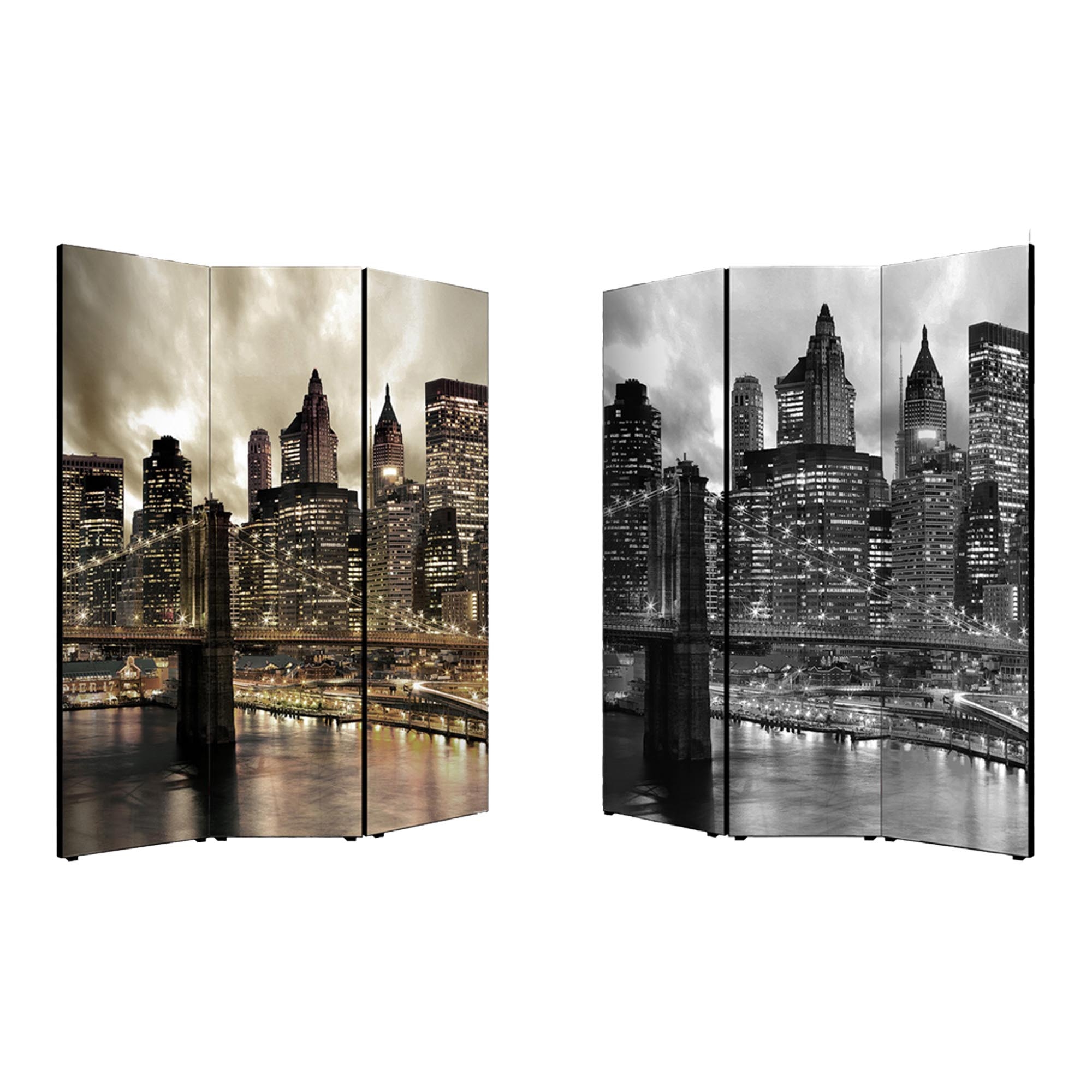 Separe' Divisorio Paravento BROOKLIN 176x135,6x3,2 cm 3 Ante in Legno con Tela stampata Fronte Retro bifacciale -