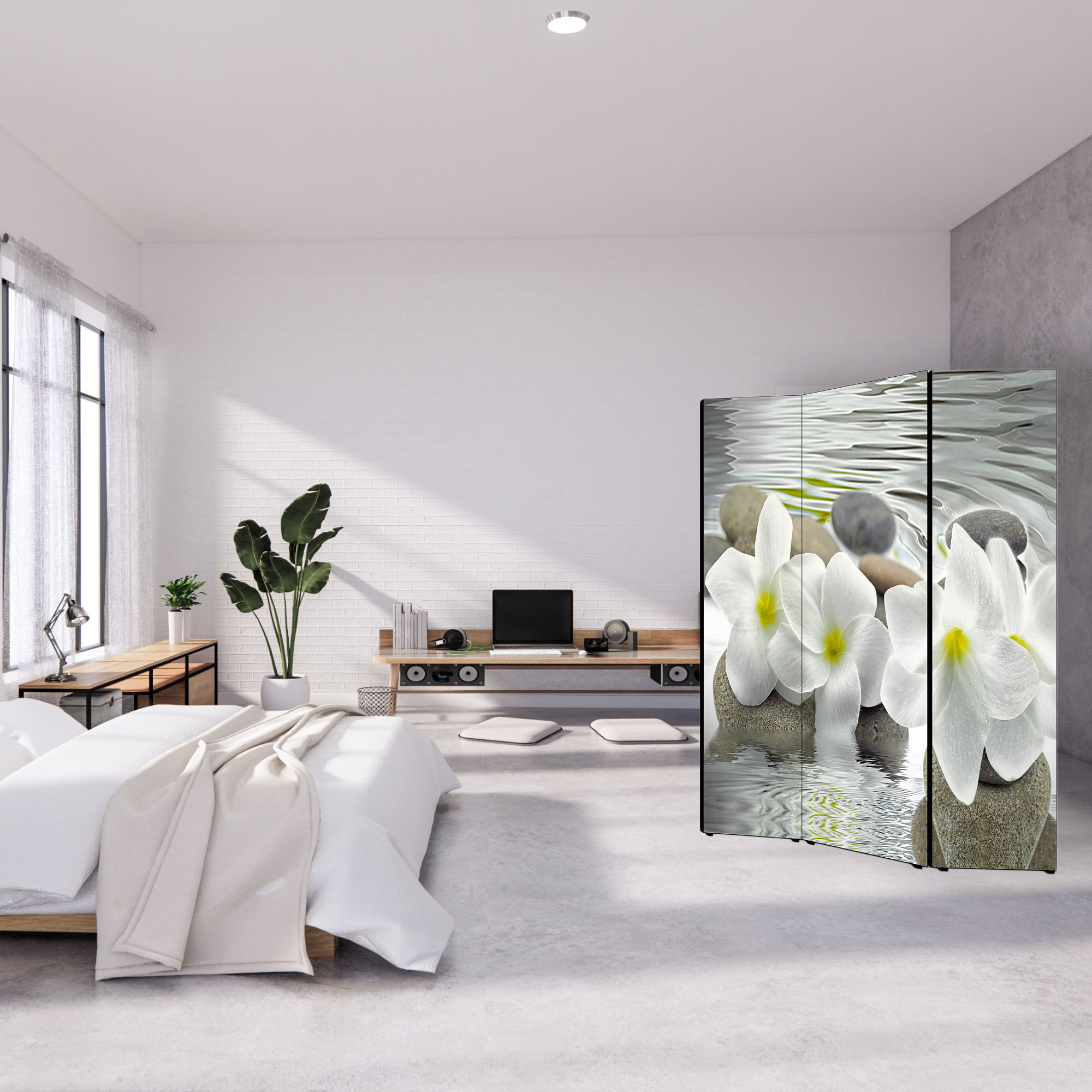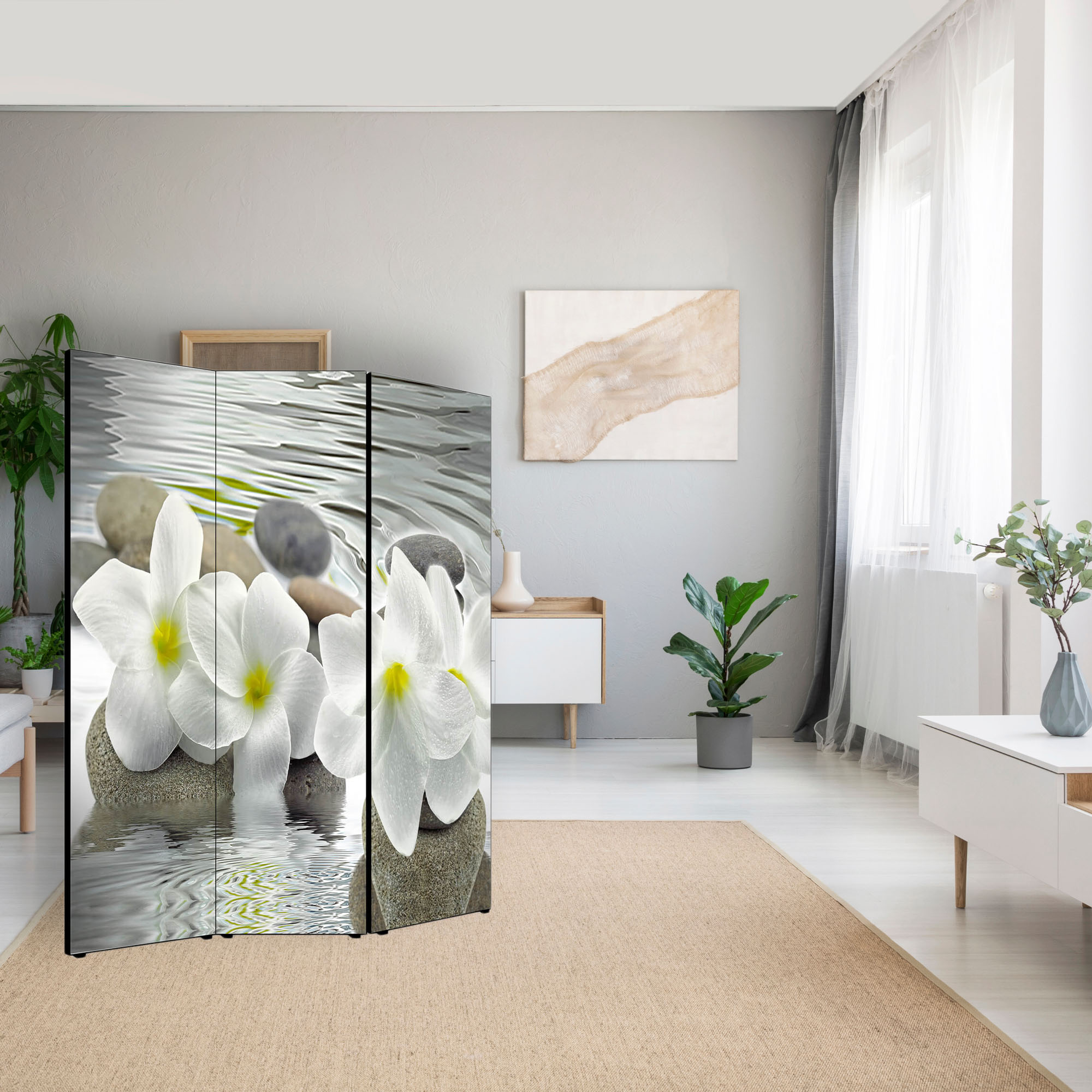 Separe' per interni, Divisorio 135,6 x H 176 x P 3,1 cm FLOWER paravento 3 Ante in legno con Tele stampate fronte retro Soggetto unico -