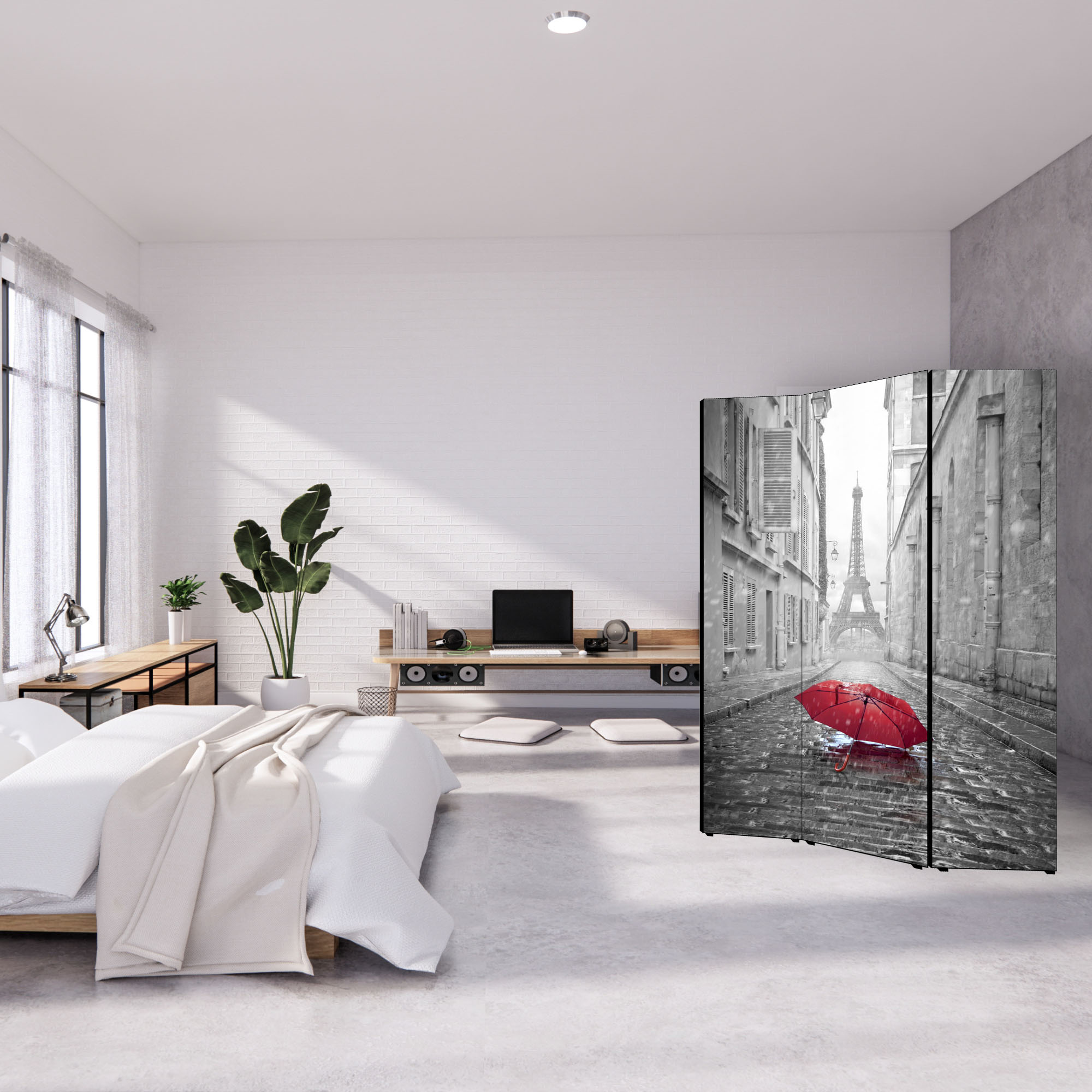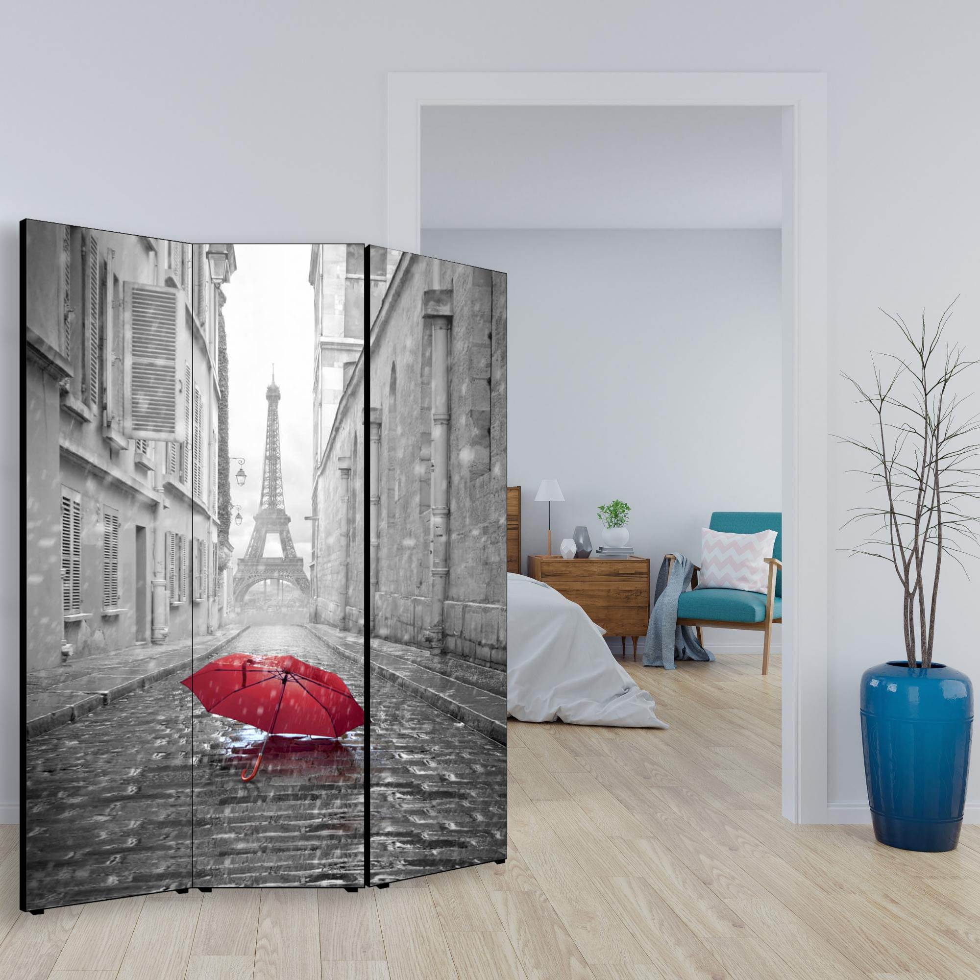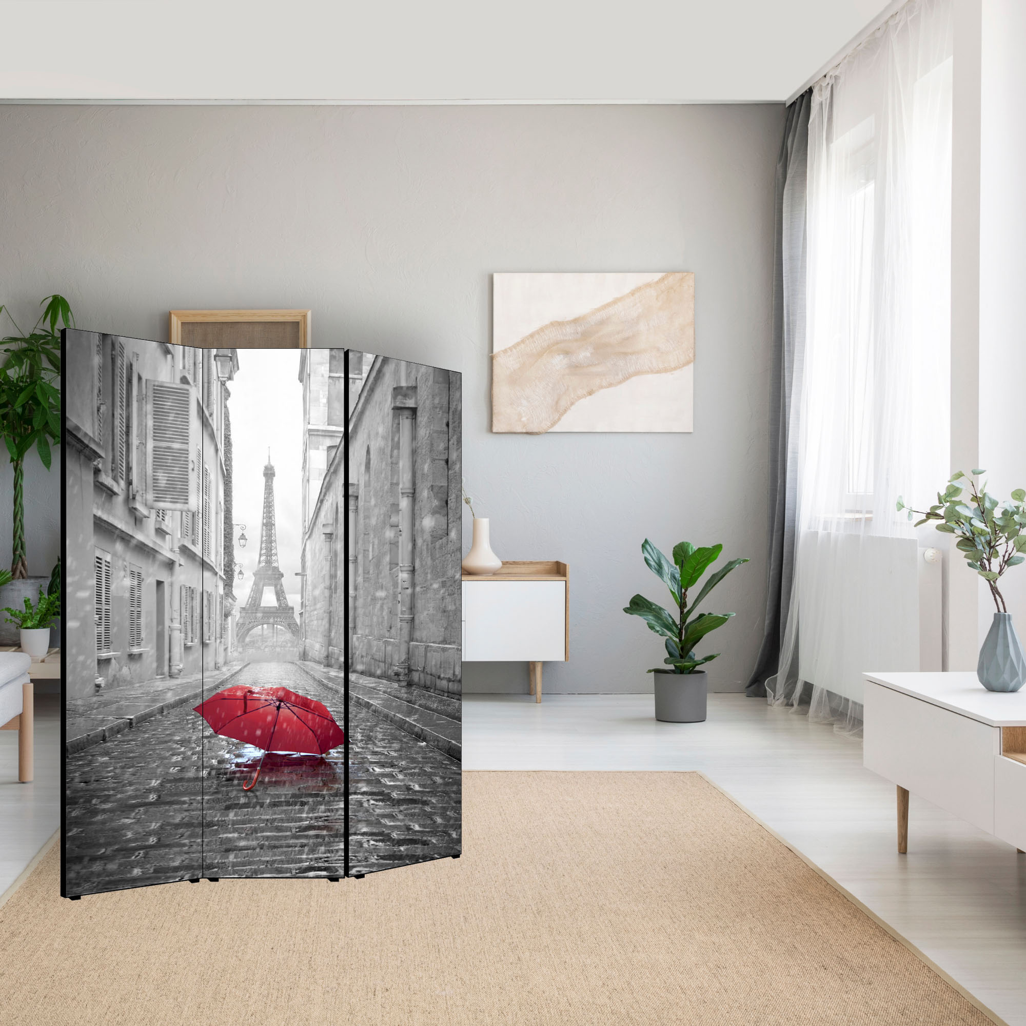 Separe' per interni, Divisorio 135,6 x H 176 x P 3,1 cm PARAPLUIE A PARIS paravento 3 Ante in legno con Tele stampate fronte retro Soggetto unico -