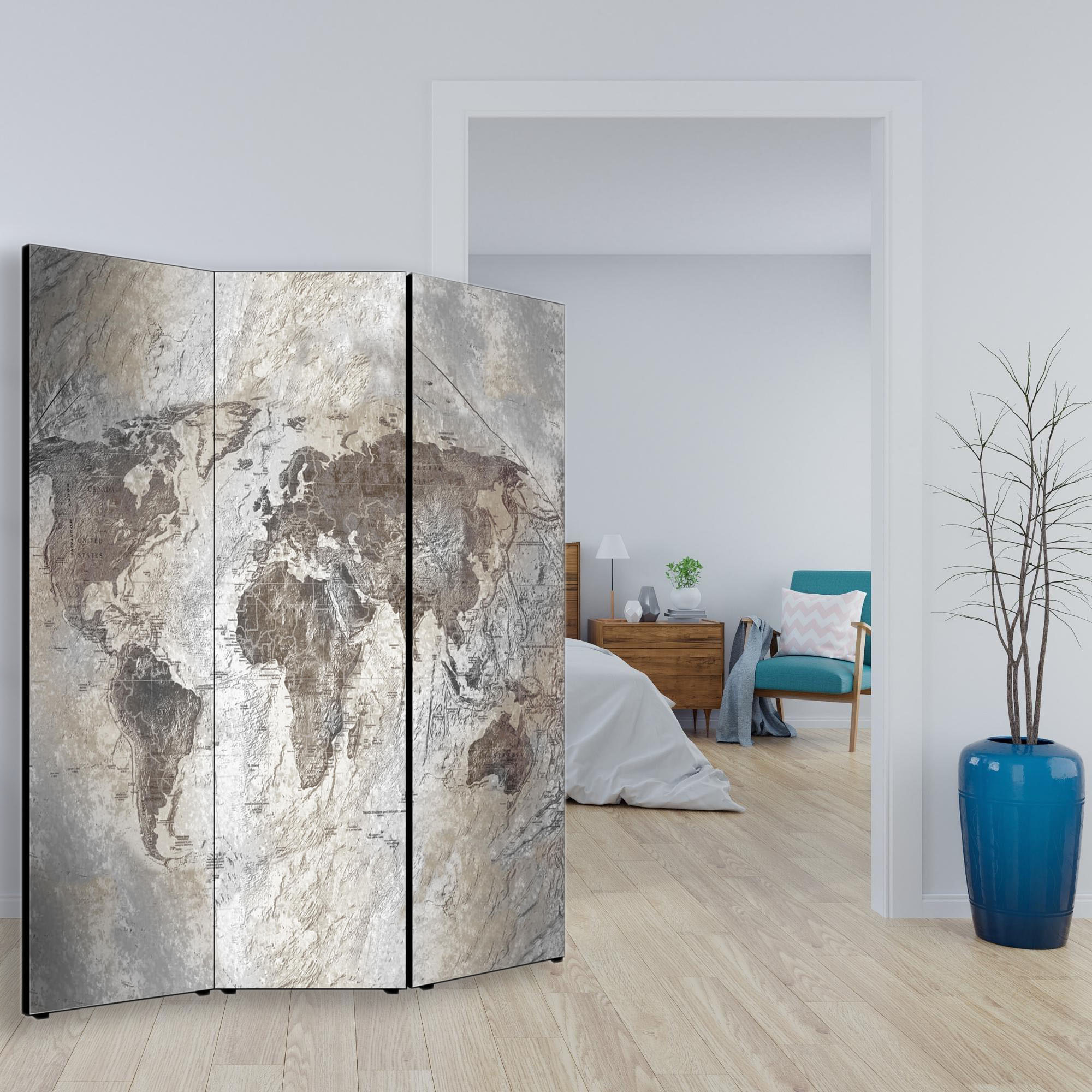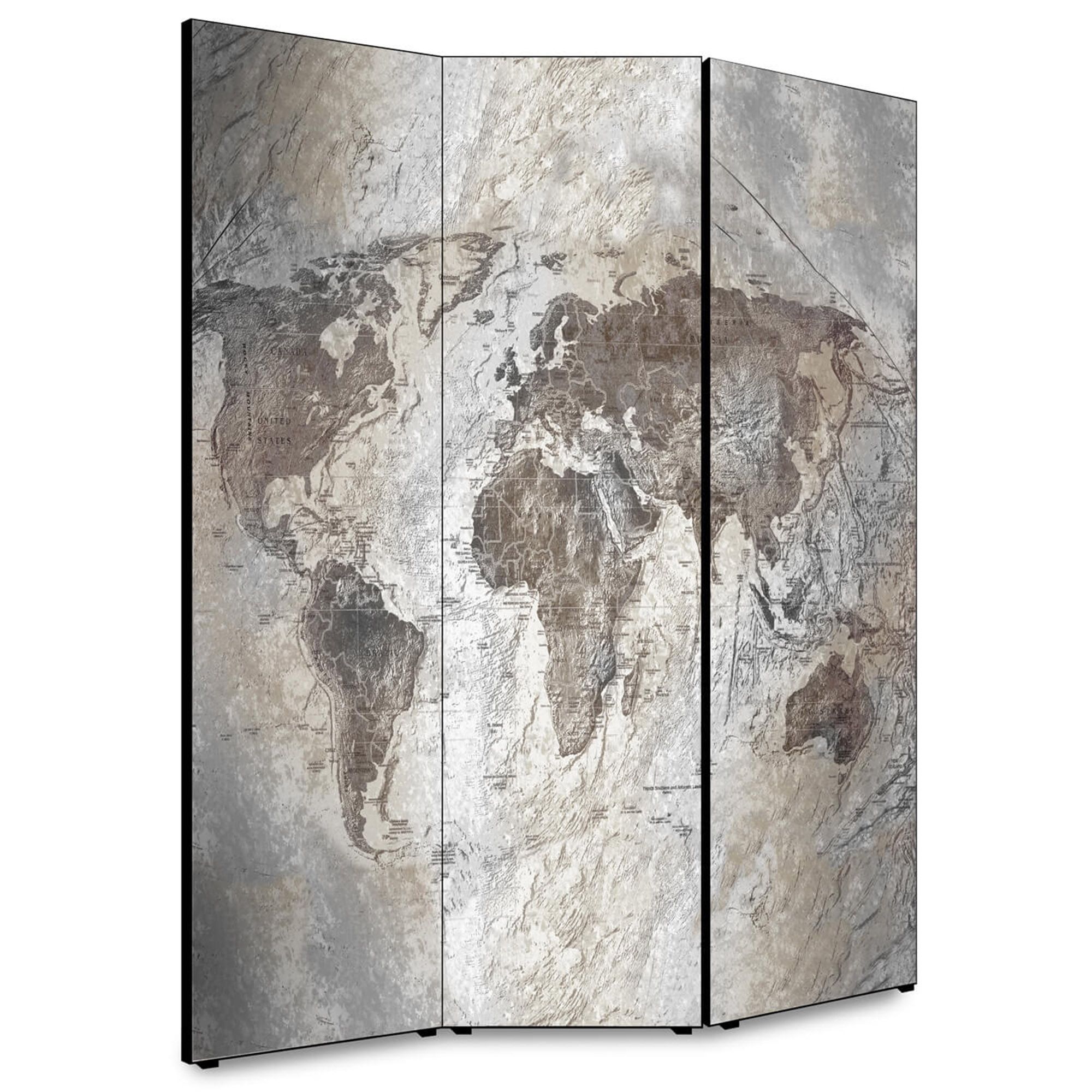 Separe' per interni, Divisorio 135,6 x H 176 x P 3,1 cm WORLD GEOGRAPHIC paravento 3 Ante in legno con Tele stampate fronte retro Soggetto unico -