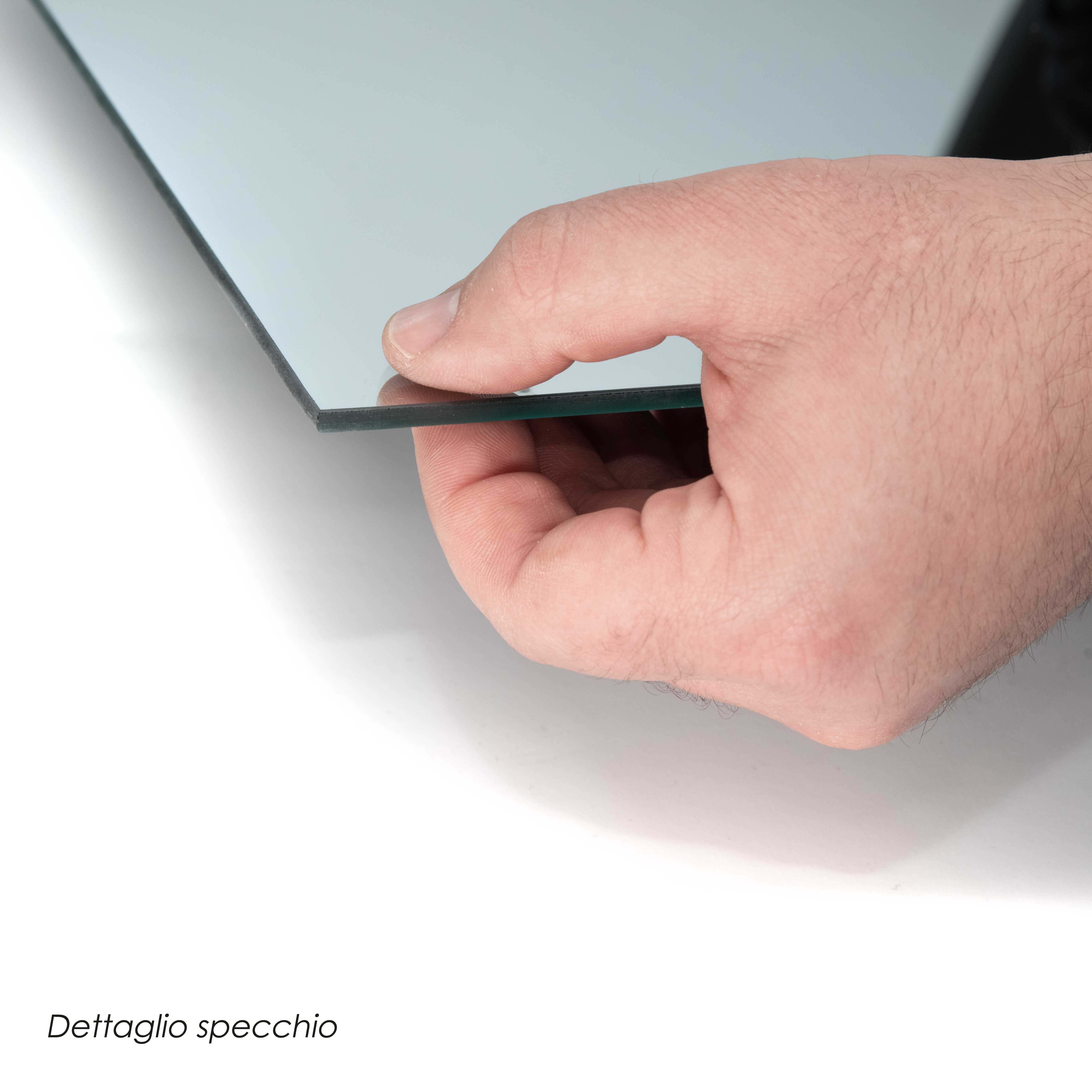 In dotazione forniamo ganci per appendere facilmente lo specchio sia in orizzontale che in verticale in pochi e semplici passaggi. Sul retro è presente un pannello in fibra di legno e lo specchio è in vetro cristallo di prima luce, ad alto indice di riflessione e di alta qualità, per il massimo dell'artigianalità Italiana. Dimensioni totali del prodotto 38x121 cm.
