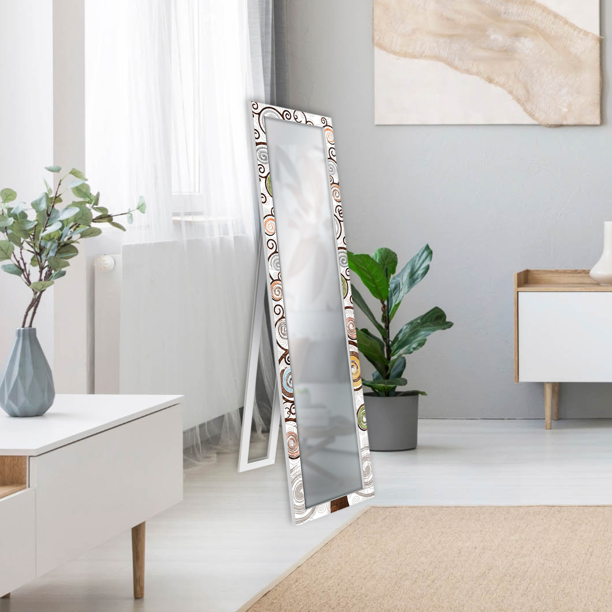 Lupia - Specchio da Terra Moderno FLOOR MIRROR DECO 40x156 cm TREE WHITE, Albero della Vita, Specchiera con Cornice Stampata in Legno Regolabile con cavalletto e Montabile a Parete -