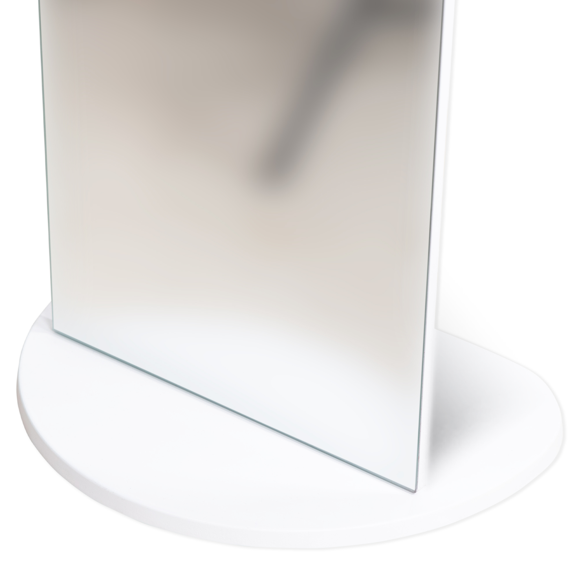 Rendi la tua casa più elegante e funzionale con il nostro specchio da terra MIRROR ORIGINAL WHITE con piedistallo. Lo specchio da terra Elegant è realizzato in vetro cristallo di prima qualità, ad alto indice di riflessione, per garantire un'immagine nitida e senza distorsioni. Grazie al design semplice e raffinato della base in legno, si adatta perfettamente ad ogni tipo di ambiente, dall'ingresso alla camera da letto, dal soggiorno al bagno. La specchiera è dotata di un piedistallo stabile e resistente, realizzato in legno verniciato con un aspetto pulito e sobrio. Grazie ad una staffa solida in alluminio inclusa nella confezione, la specchiera può essere inclinata di circa 85 gradi in modo da permetterti di regolare l'angolo di visuale in base alle tue esigenze.