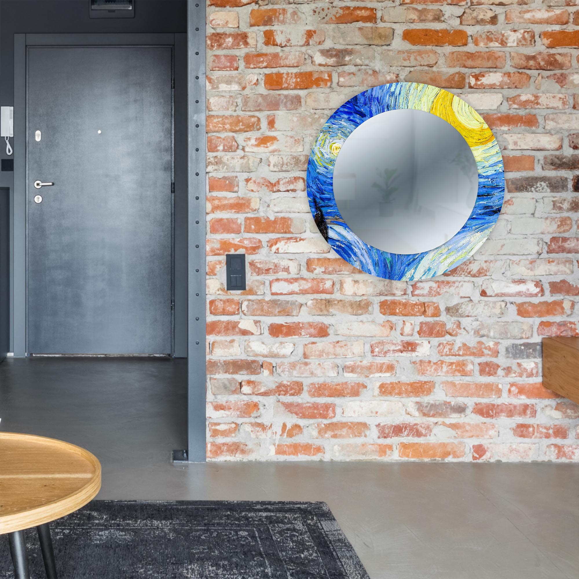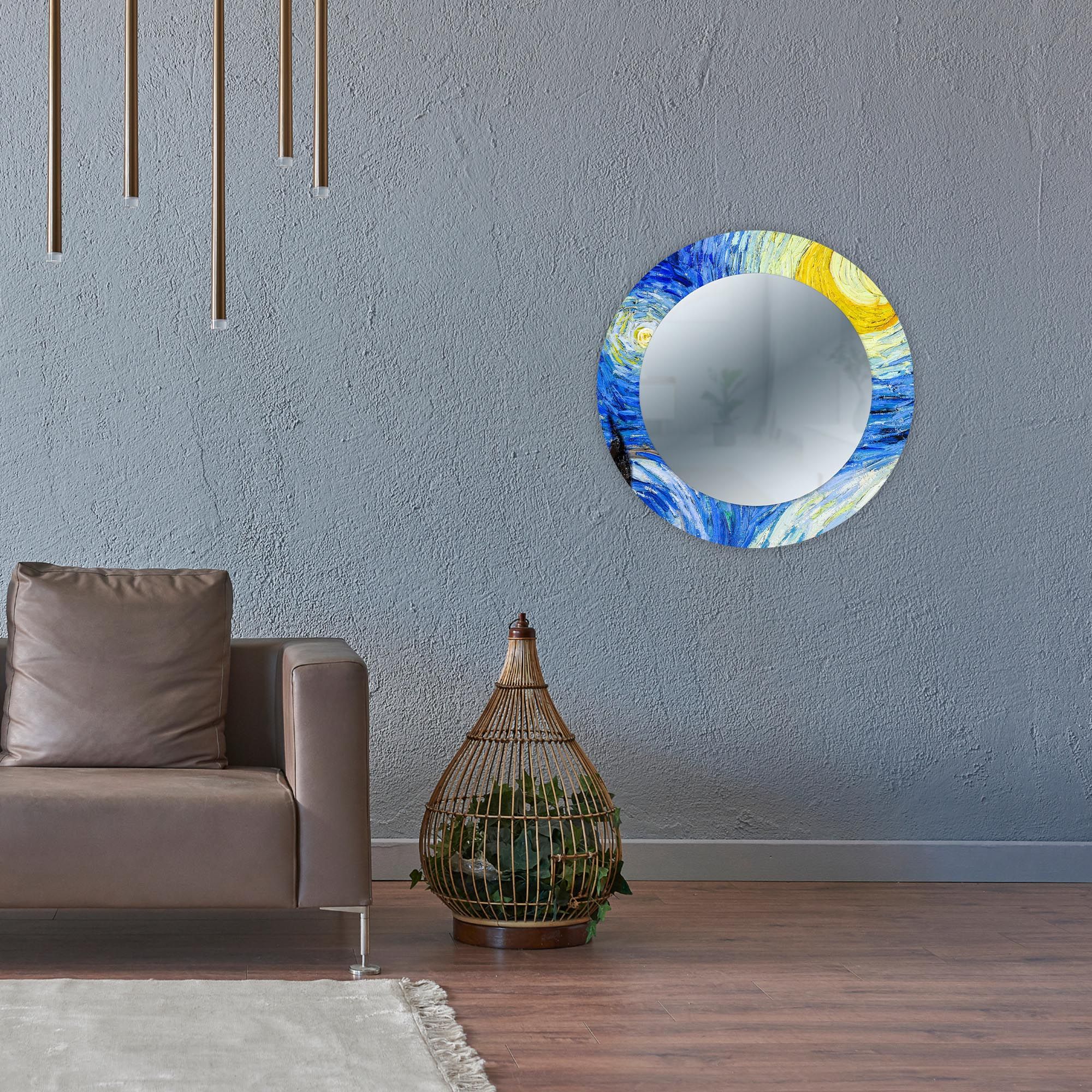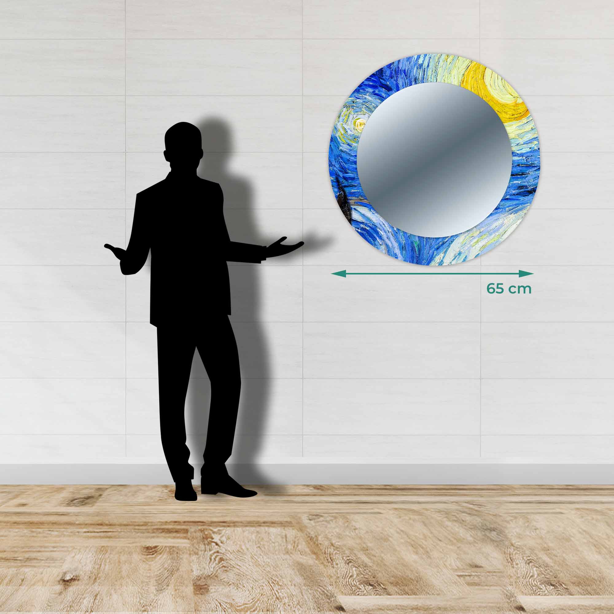 Specchio da parete Rotondo moderno Mirror Fantasy NOTTE STELLATA Van Gogh diam. 65 cm, Circolare con cornice stampata, specchiera per camera da letto, soggiorno, ingresso -