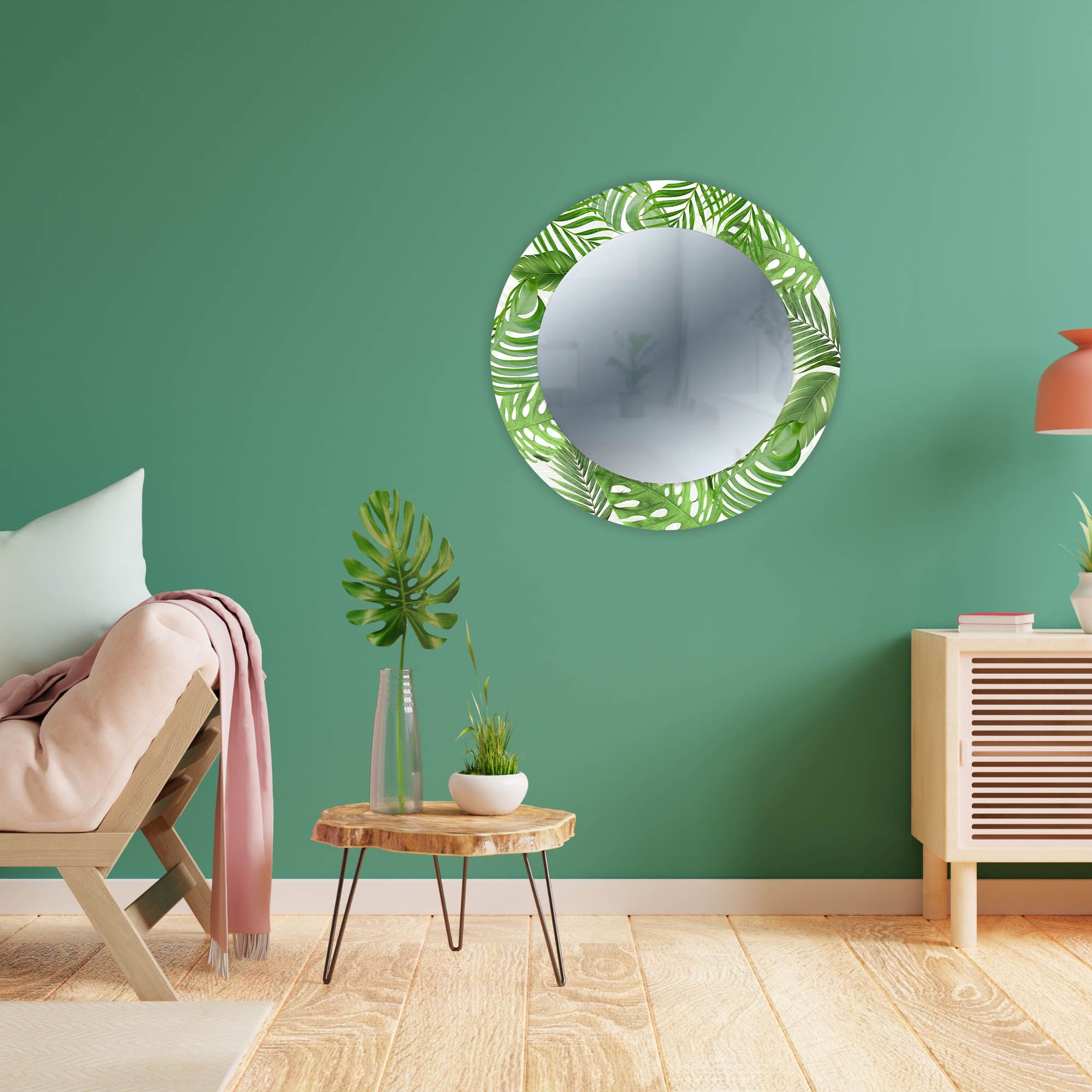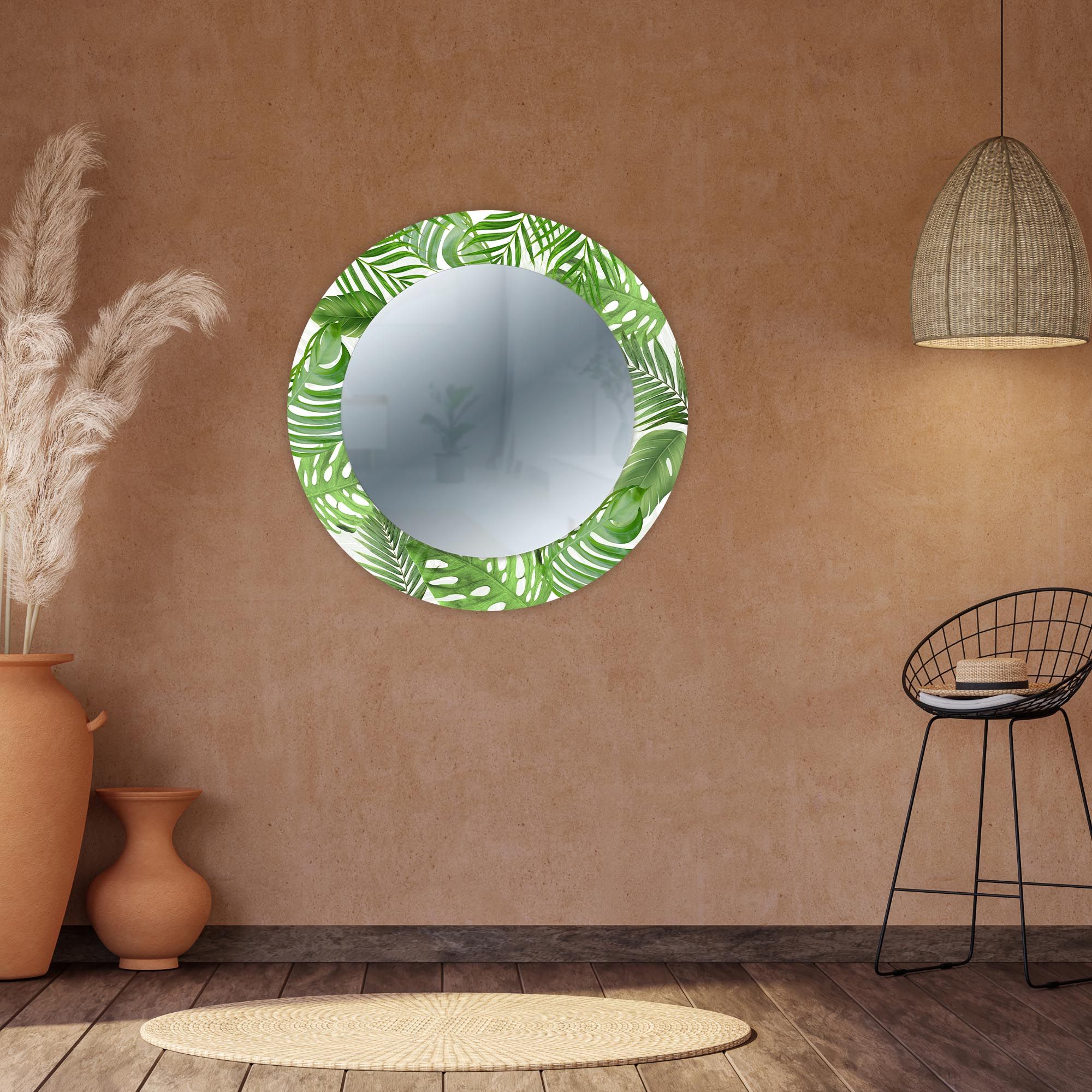 Specchio da parete Rotondo moderno Mirror Fantasy TROPICAL GREEN diam. 65 cm, Circolare con cornice stampata, specchiera per camera da letto, soggiorno, ingresso -