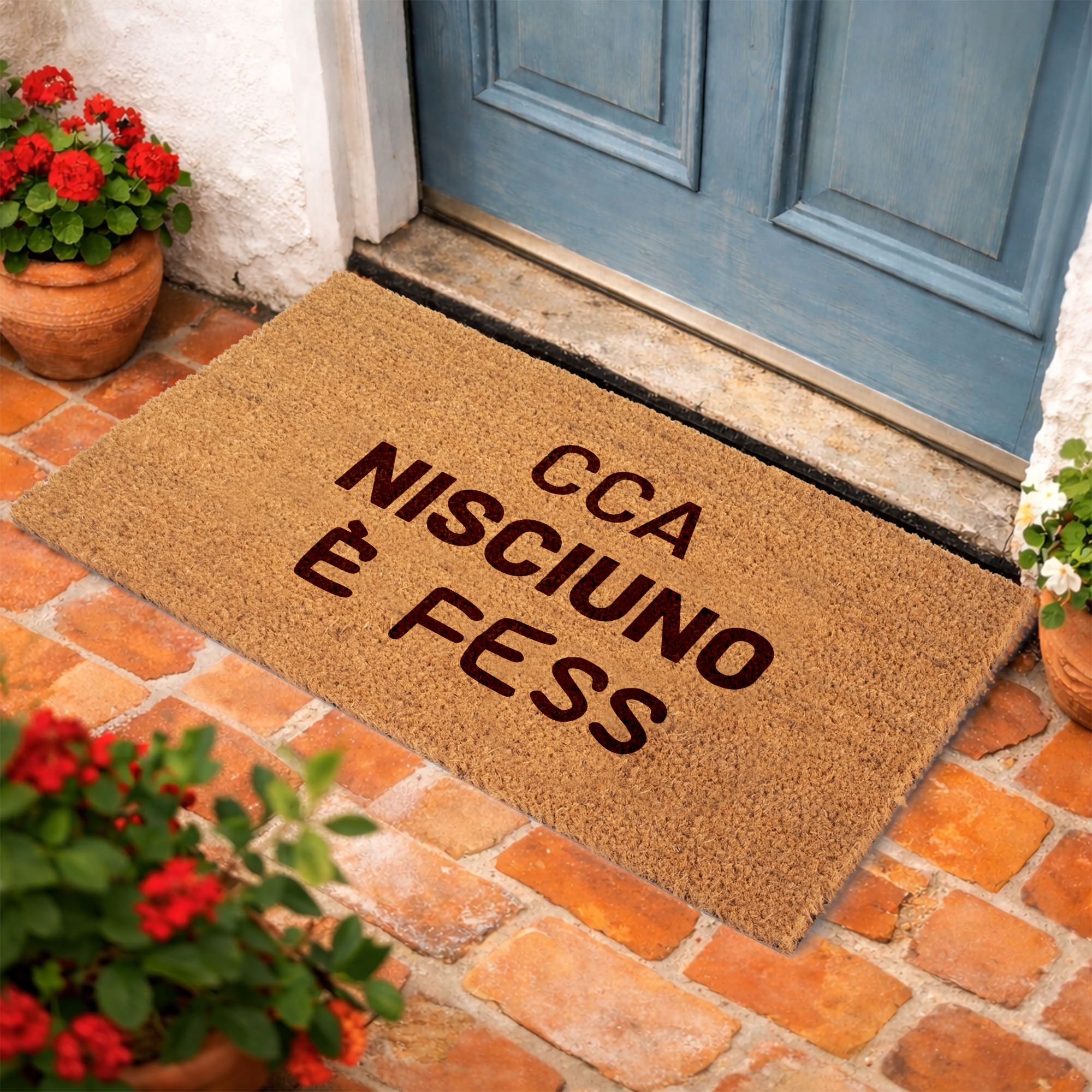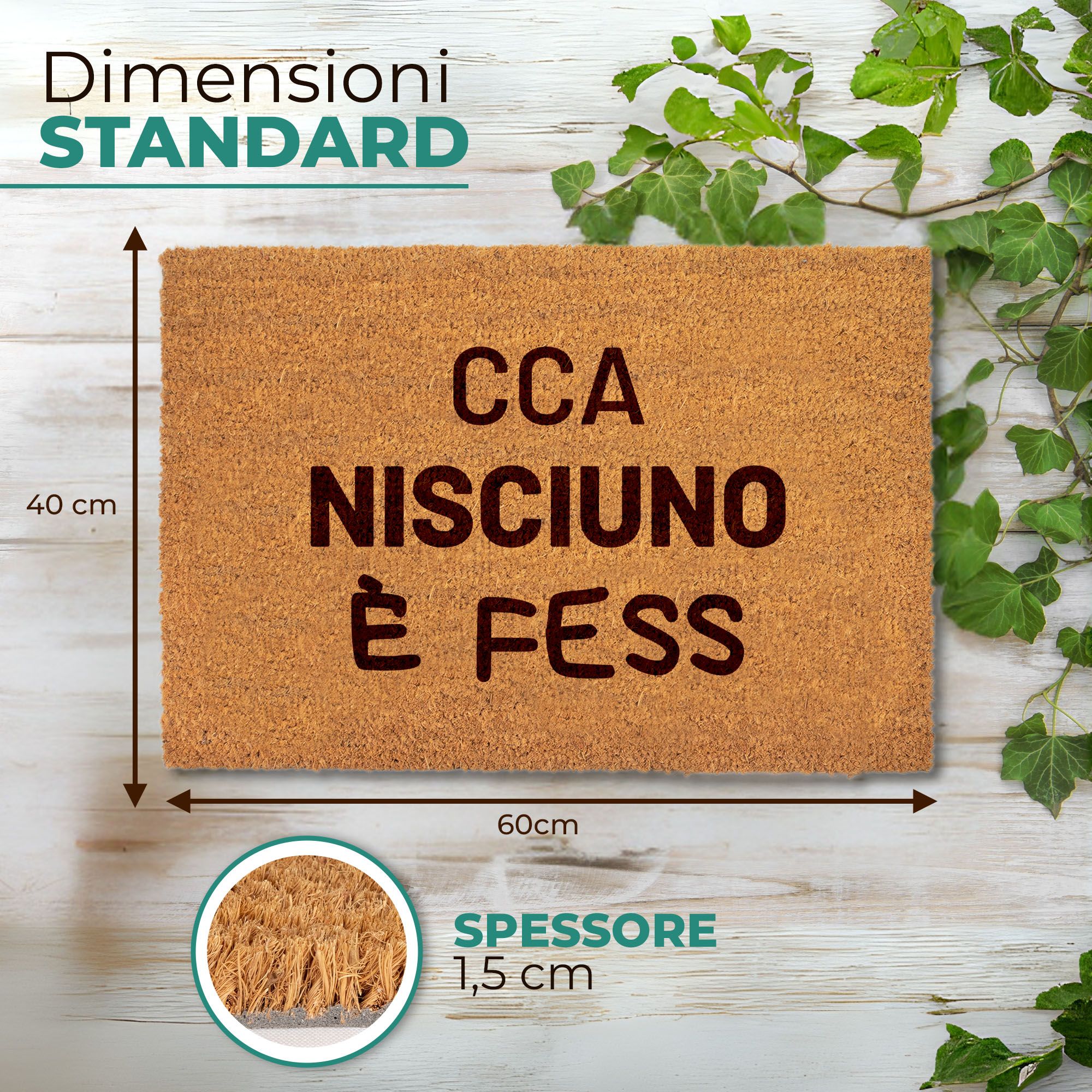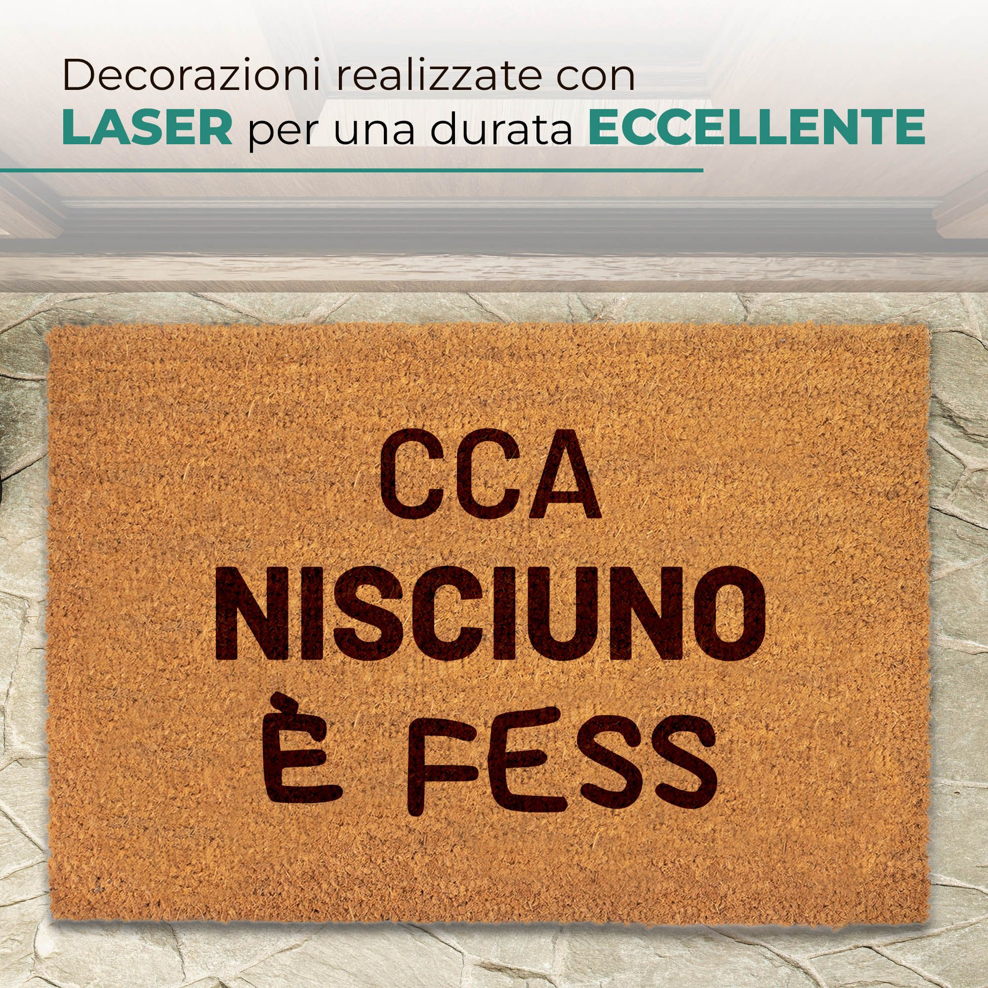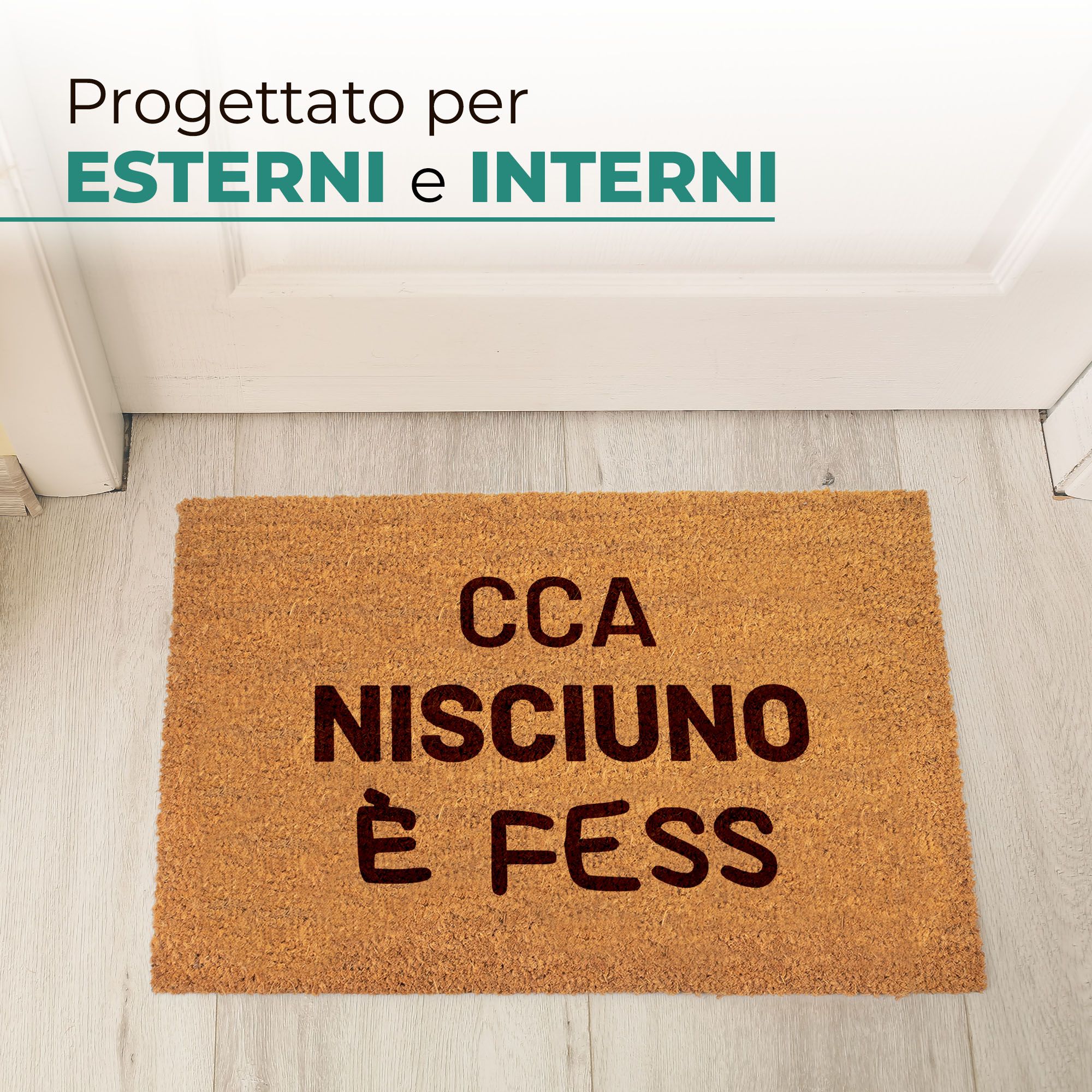 Lupia - Zerbino in fibra di cocco Naturale stampato 40x60 cm CCA NISCIUNO E' FESS, Retro antiscivolo, Tappeto ingresso Decorato interno esterno, Antibatterico e Facile da Pulire, Napoli -