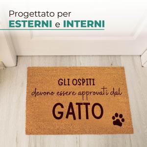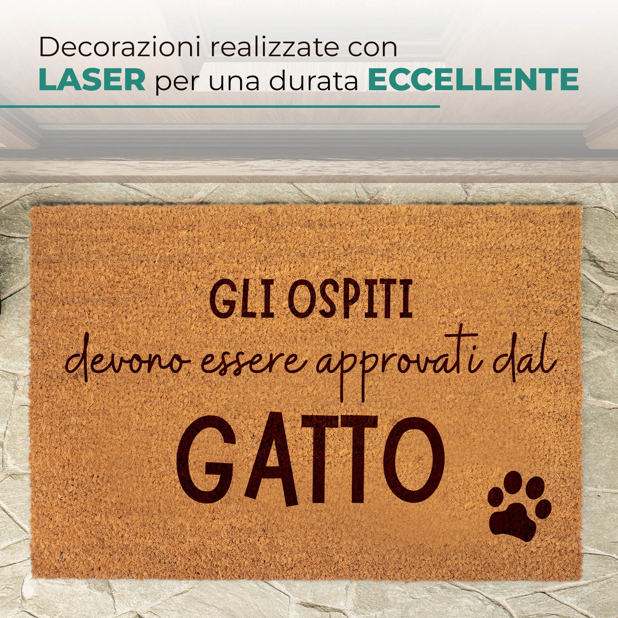 Trasforma il tuo ingresso in un biglietto da visita accogliente e funzionale con il nostro zerbino in fibra di cocco naturale 100% con retro antiscivolo in pvc. Il design è uno dei punti di forza: le decorazioni incise al laser, originali e permanenti con disegni e testi che rendono questo zerbino non solo un accessorio pratico, ma anche un complemento d’arredo che dona personalità e stile alla tua casa. Scegli tra grafiche moderne, fantasiose o classiche, pensate per sorprendere i tuoi visitatori con un messaggio di benvenuto sempre unico. Come la scritta “Ospiti approvati dal gatto”: ideale per le case pet friendly e gli amanti dei felini.