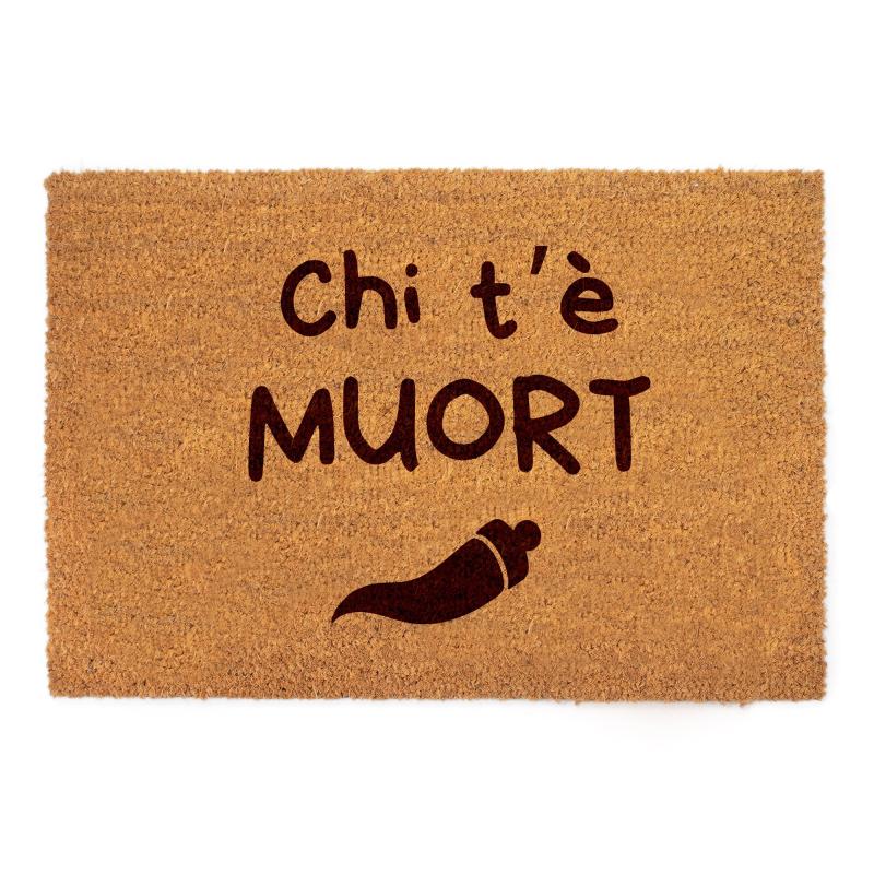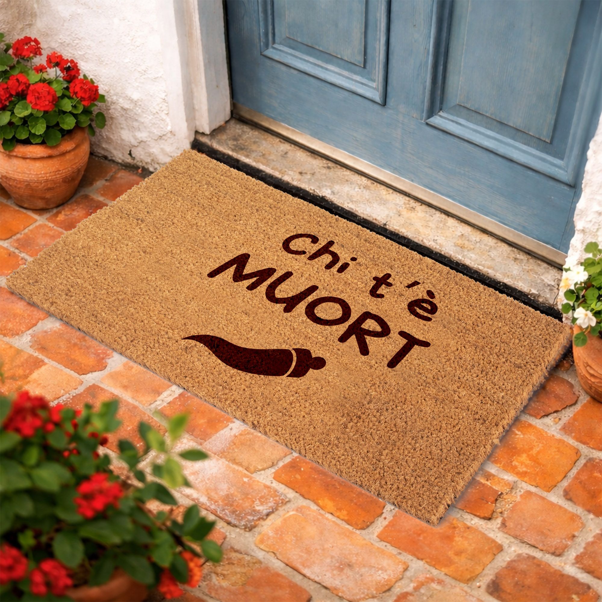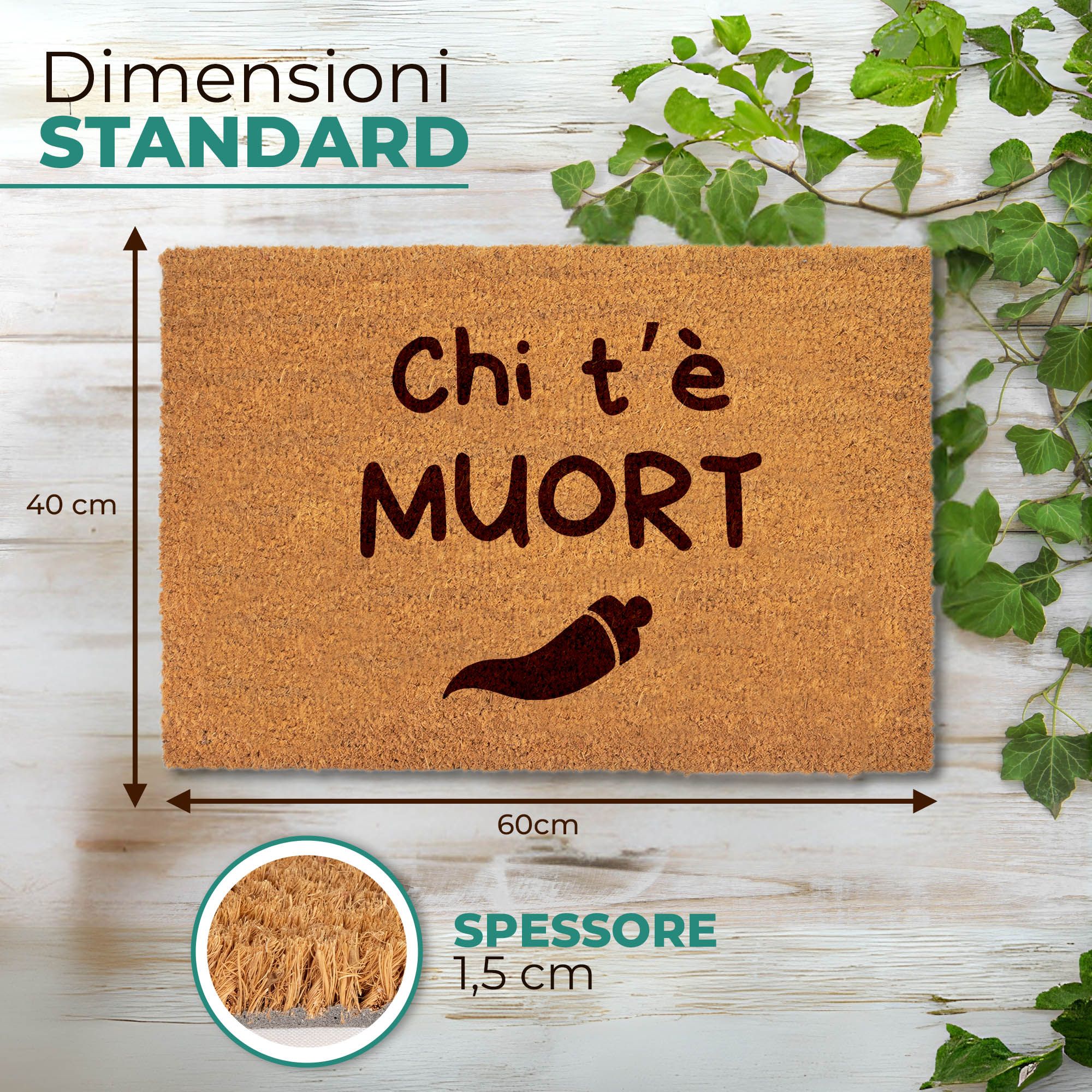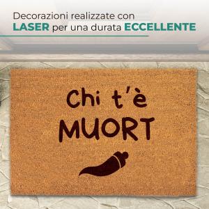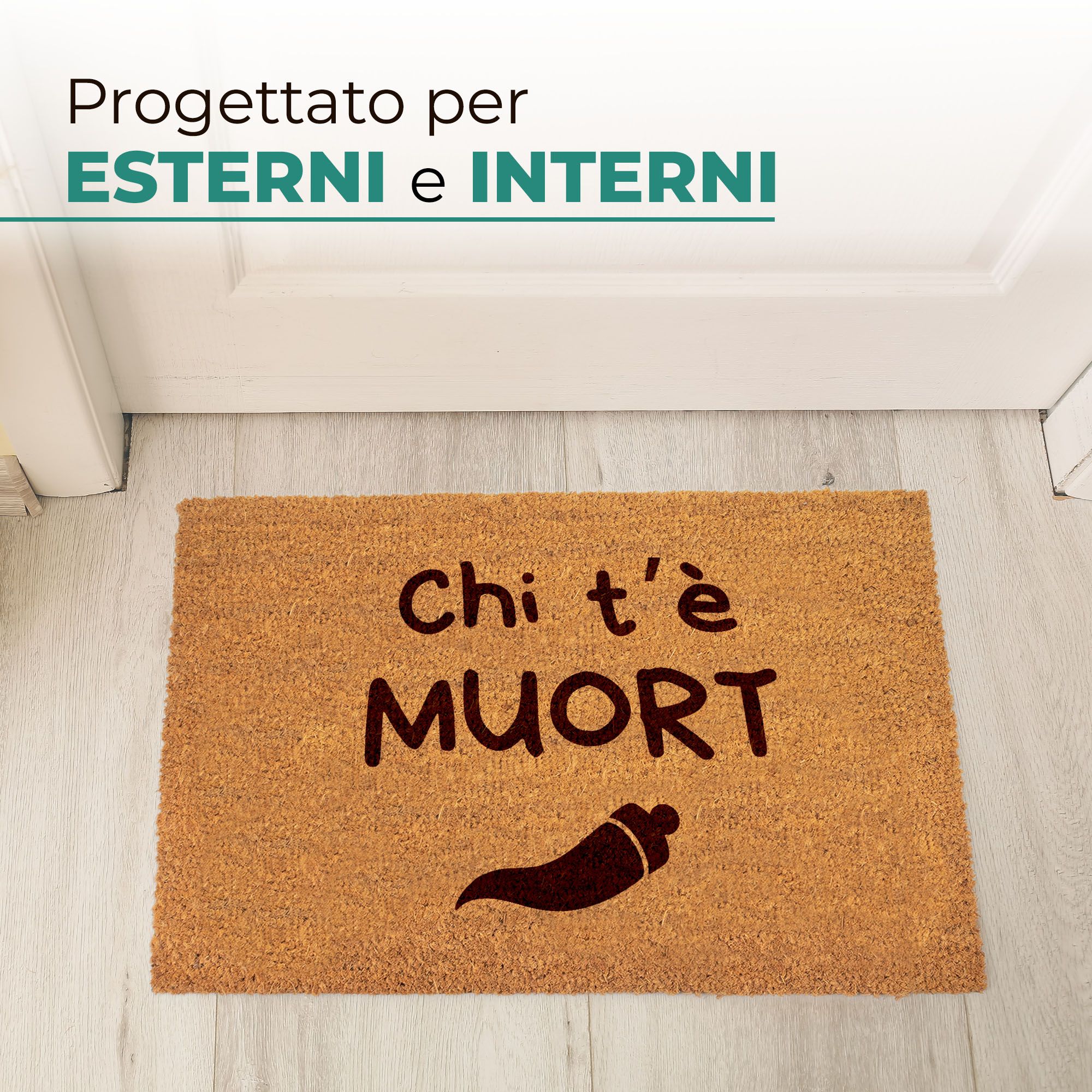 Lupia - Zerbino in fibra di cocco Naturale stampato 40x60 cm CHI T'E' MUORT, Retro antiscivolo, Tappeto ingresso Decorato interno esterno, Antibatterico e Facile da Pulire, Napoli -