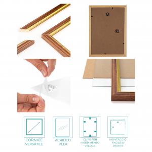 La soluzione per decorare pareti o muri di ogni ambiente della tua casa, il profilo dorato della cornice crea un dettaglio elegante e sofisticato per le tue composizioni di foto e quadri.