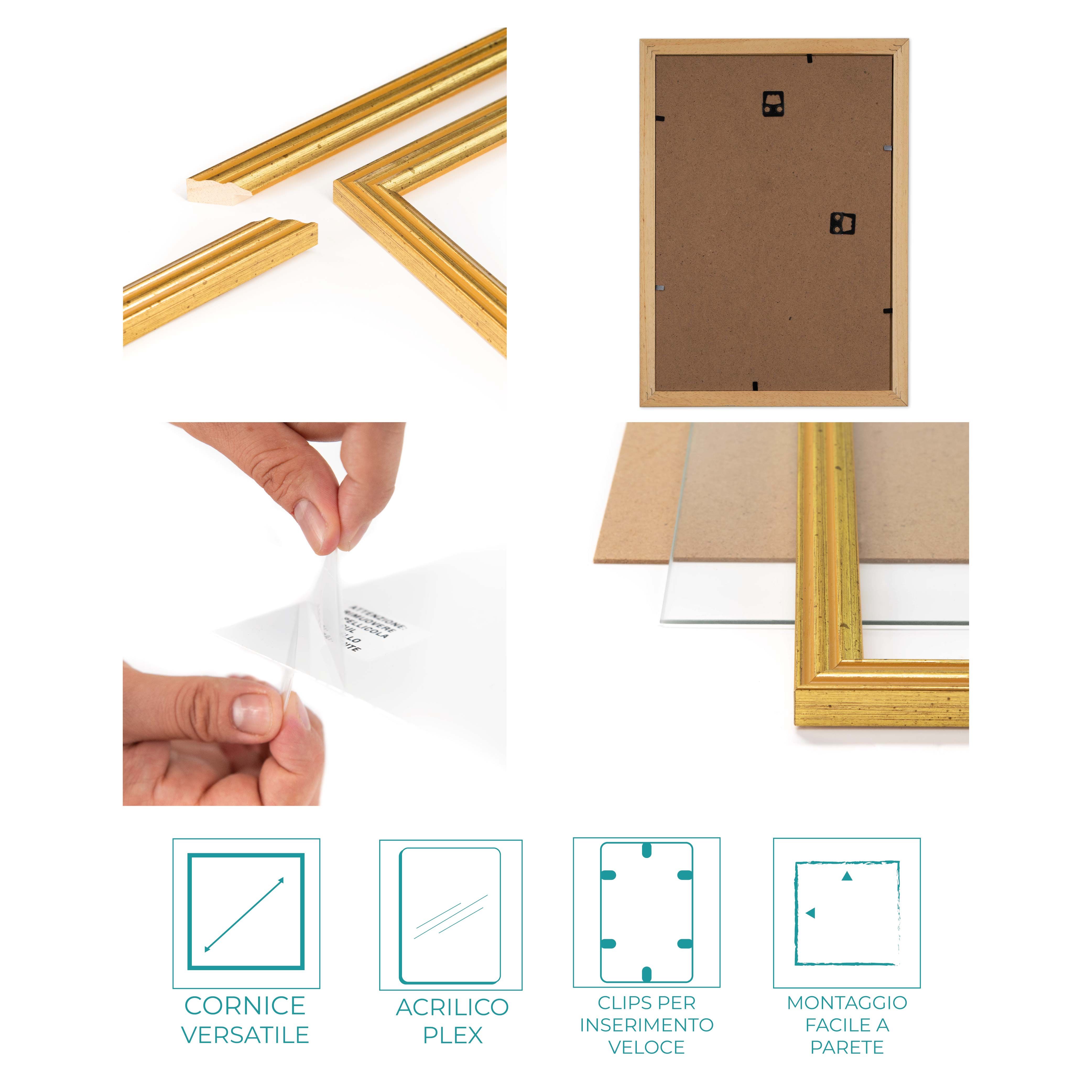 Ogni cornice portafoto ha un sistema di clips in metallo per inserire la tua foto facilmente con l’apposito pannello in legno ecologico che viene fornito con la cornice.