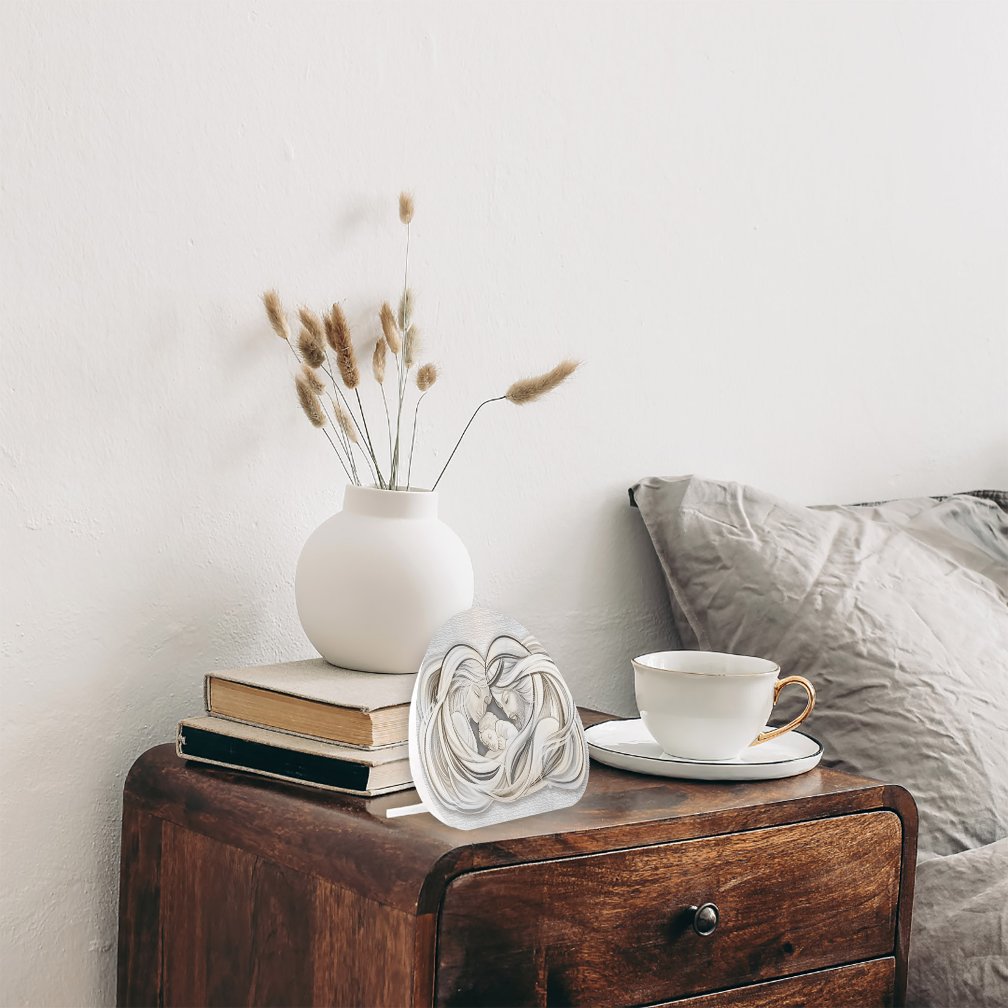 La nostra bomboniera Memory è un Quadretto originale da tavolo o parete realizzato in legno con decorazione stampata in alta qualità con colori vividi con il tema della Nativita' o sara famiglia. Il quadro moderno e’ dotato di piedino smontabile incluso nella confezione per essere poggiato su un piano oppure grazie al foro posteriore per essere facilmente fissato al muro.