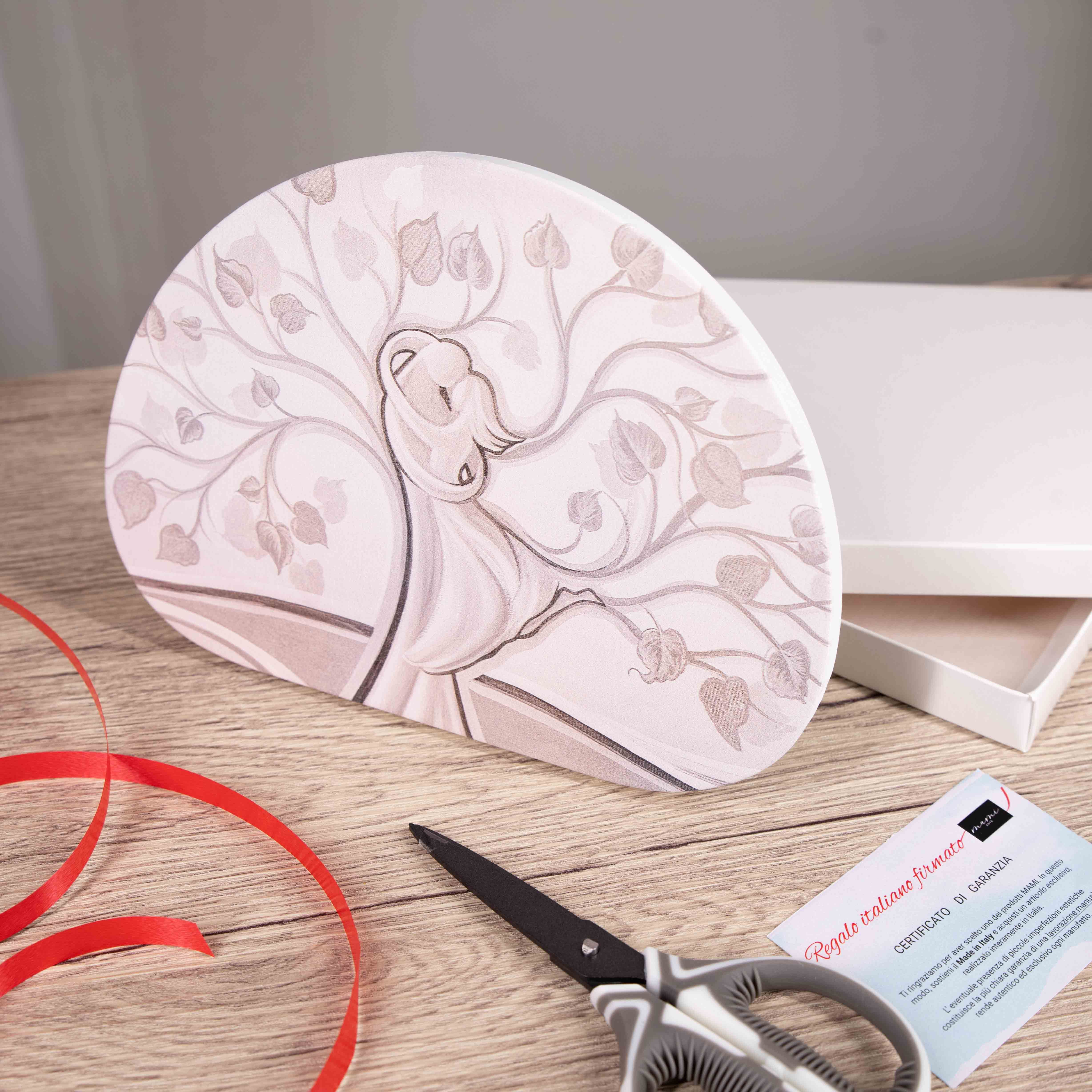 La nostra bomboniera Memory è un Quadro originale da parete realizzato in legno con decorazione stampata in alta qualità con colori vividi con il tema amore e famiglia con albero della vita. Il quadro moderno e’ dotato foro posteriore per essere facilmente fissato al muro.