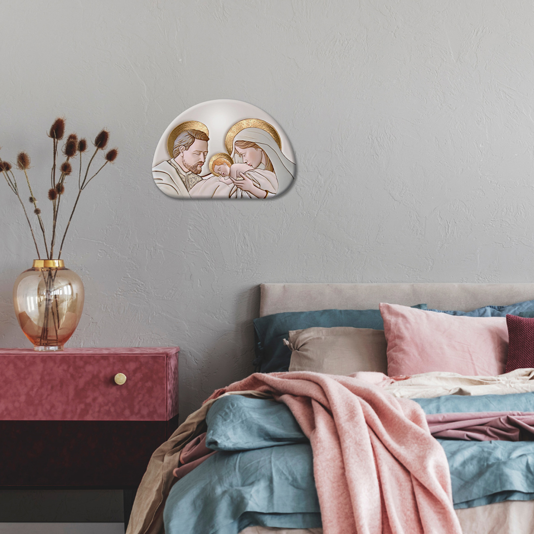 La nostra bomboniera Memory è un Quadro originale da parete realizzato in legno con decorazione stampata in alta qualità con colori vividi con il tema della Nativita' o Sacra Famiglia. Il quadro moderno e’ dotato foro posteriore per essere facilmente fissato al muro.