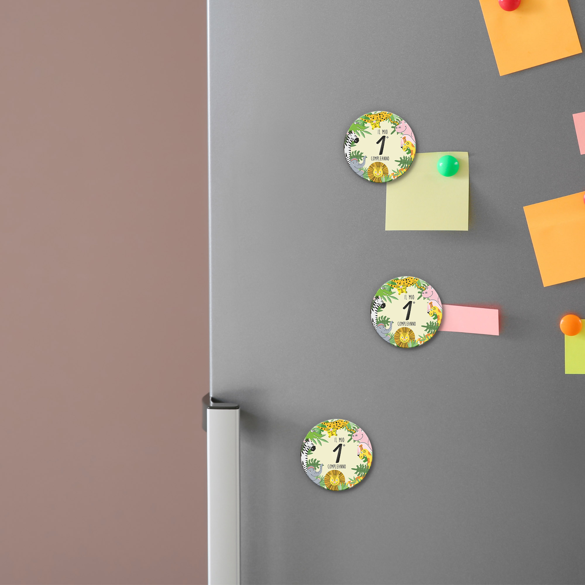Set composto da 24 pezzi di Calamite Rotonde con struttura in Legno e decorazione nel tema del soggetto scelto, con un diametro di dimensione pari a 4,5 cm e uno spessore di 3 mm.