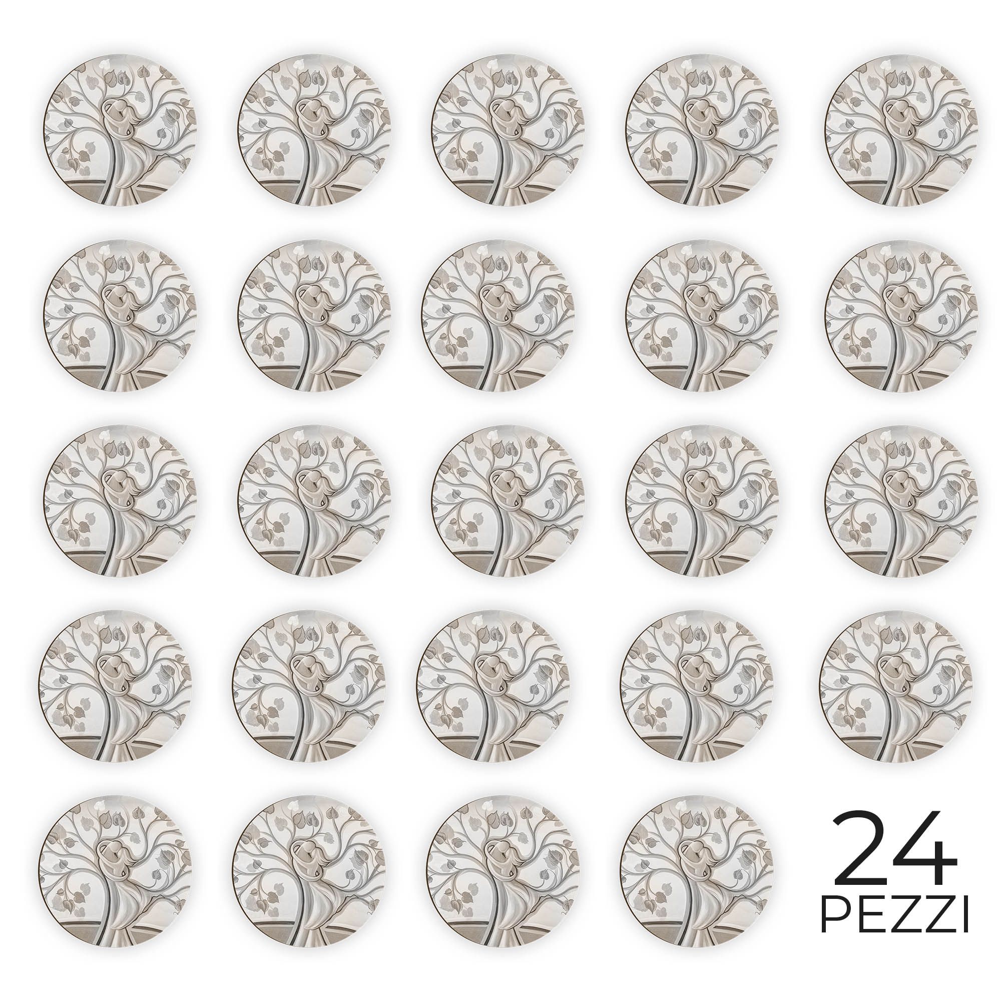 Set composto da 24 pezzi di Calamite Rotonde con struttura in Legno e decorazione nel tema del soggetto scelto, con un diametro di dimensione pari a 4,5 cm e uno spessore di 3 mm.