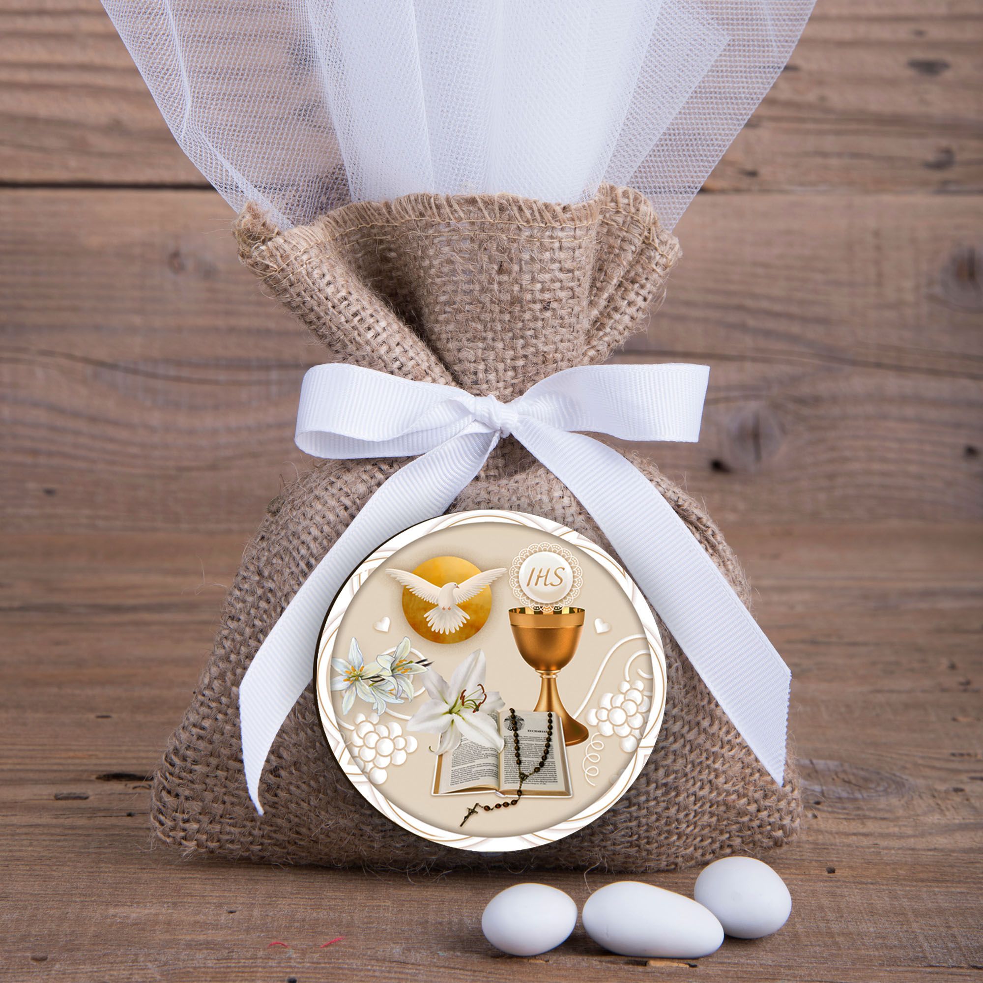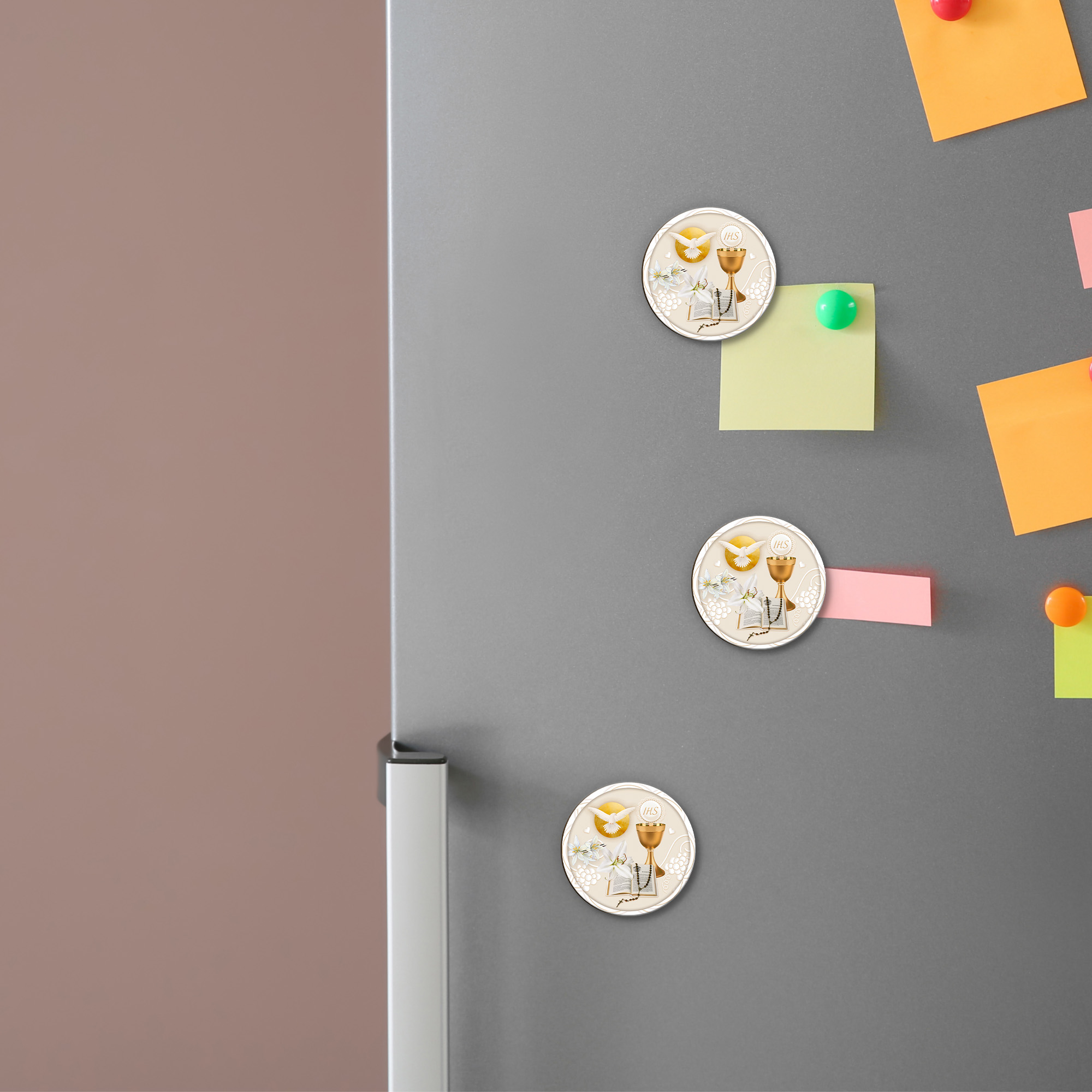 Calamita, MAGNETI in Legno Set da 24 PEZZI D.4,5 cm COMUNIONE, segnaposto ricordino regalo, bomboniera confettata, pensierino evento -