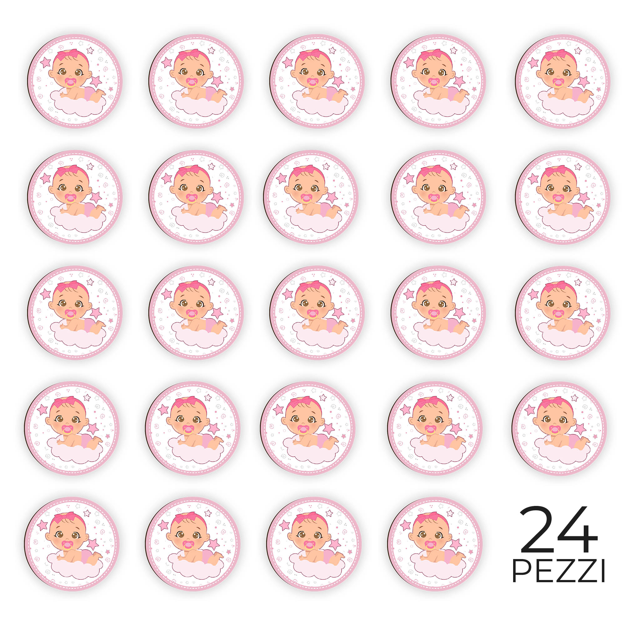 Calamita, MAGNETI in Legno Set da 24 PEZZI D.4,5 cm NEONATA, segnaposto ricordino regalo, bomboniera confettata, pensierino Battesimo o evento -