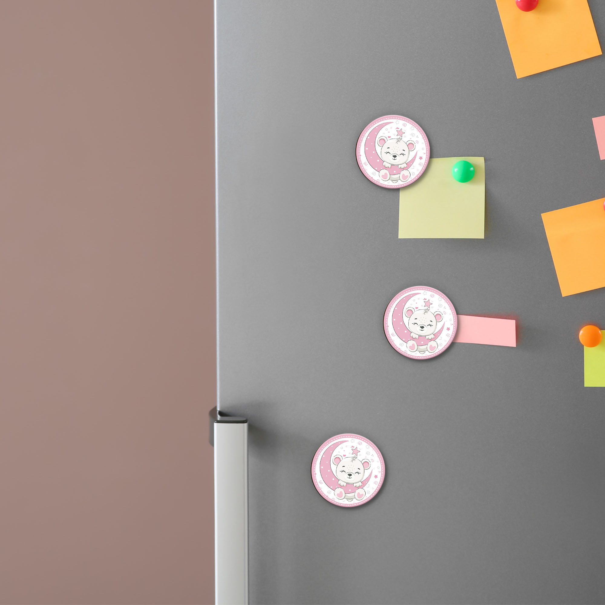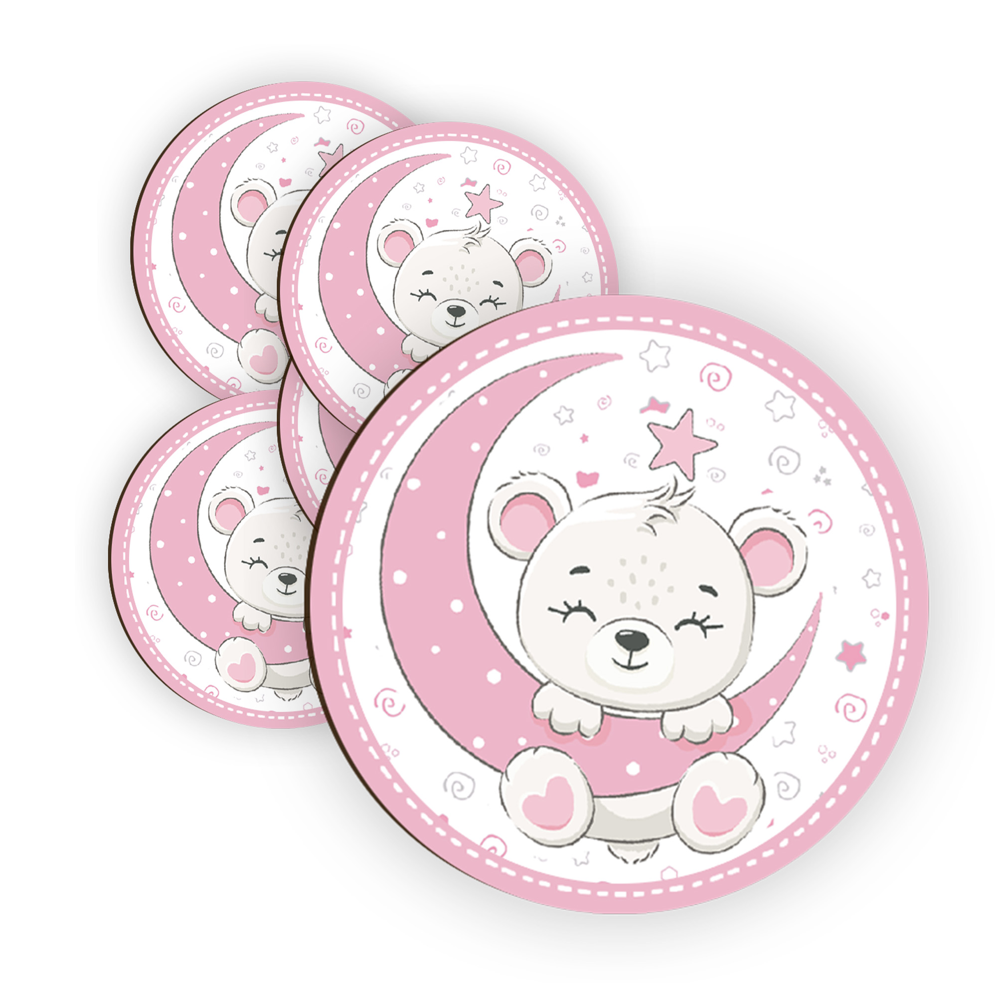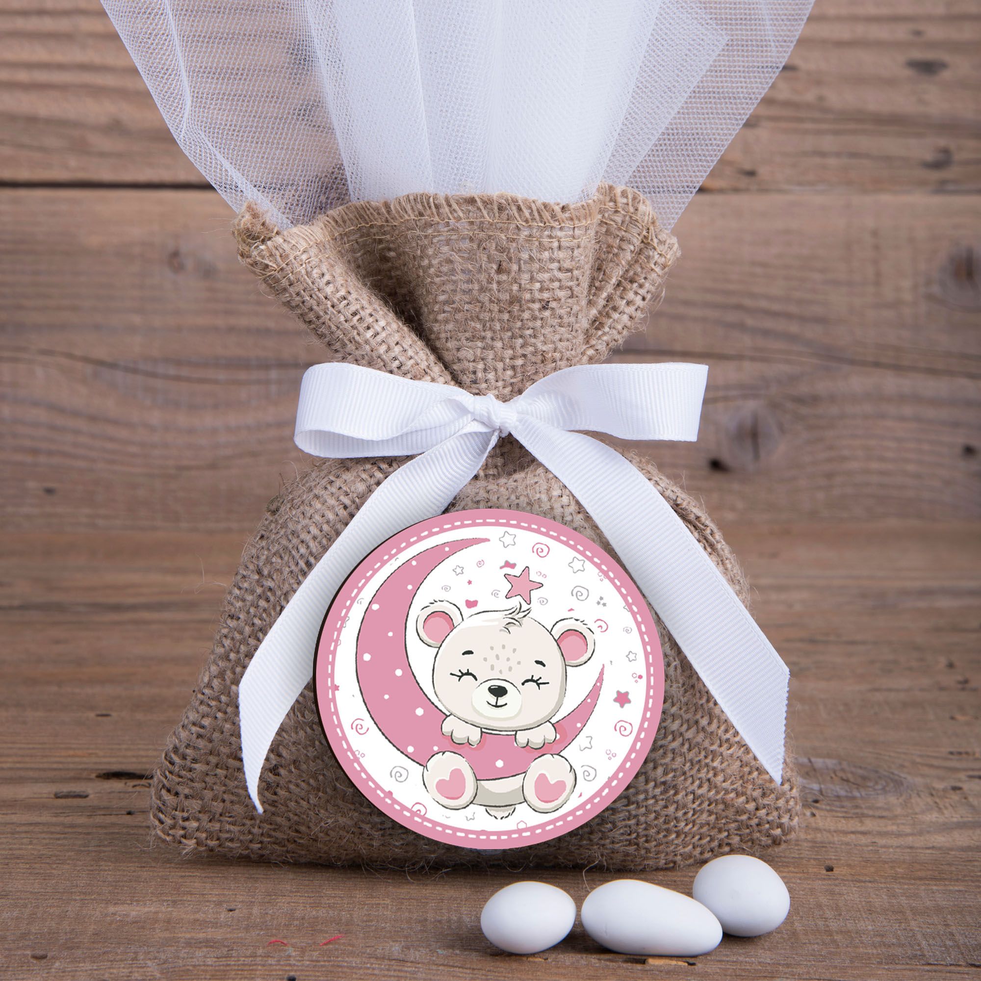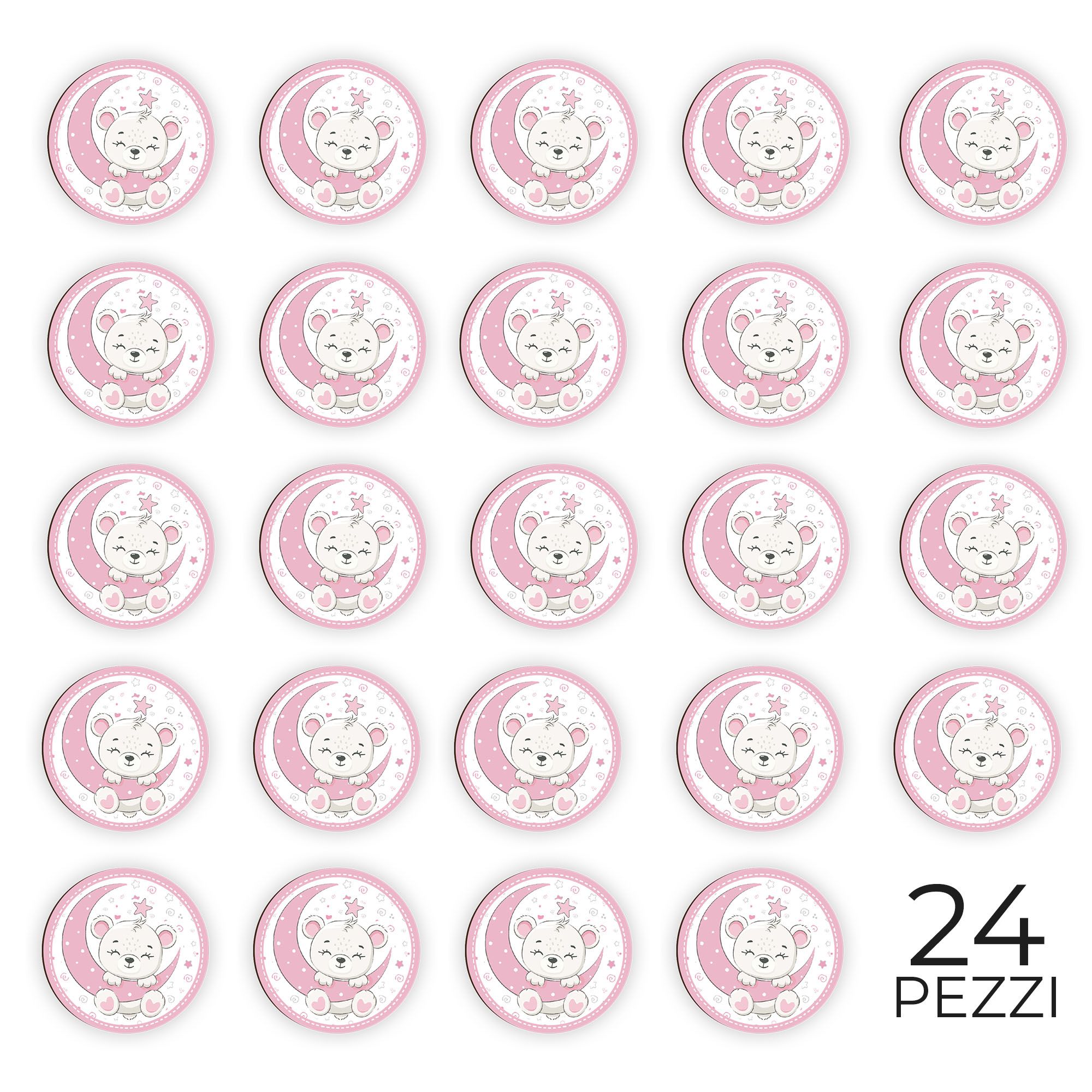 Calamita, MAGNETI in Legno Set da 24 PEZZI D.4,5 cm ORSACCHIOTTO LUNA LITTLE GIRL, segnaposto ricordino regalo, bomboniera confettata, pensierino Battesimo -