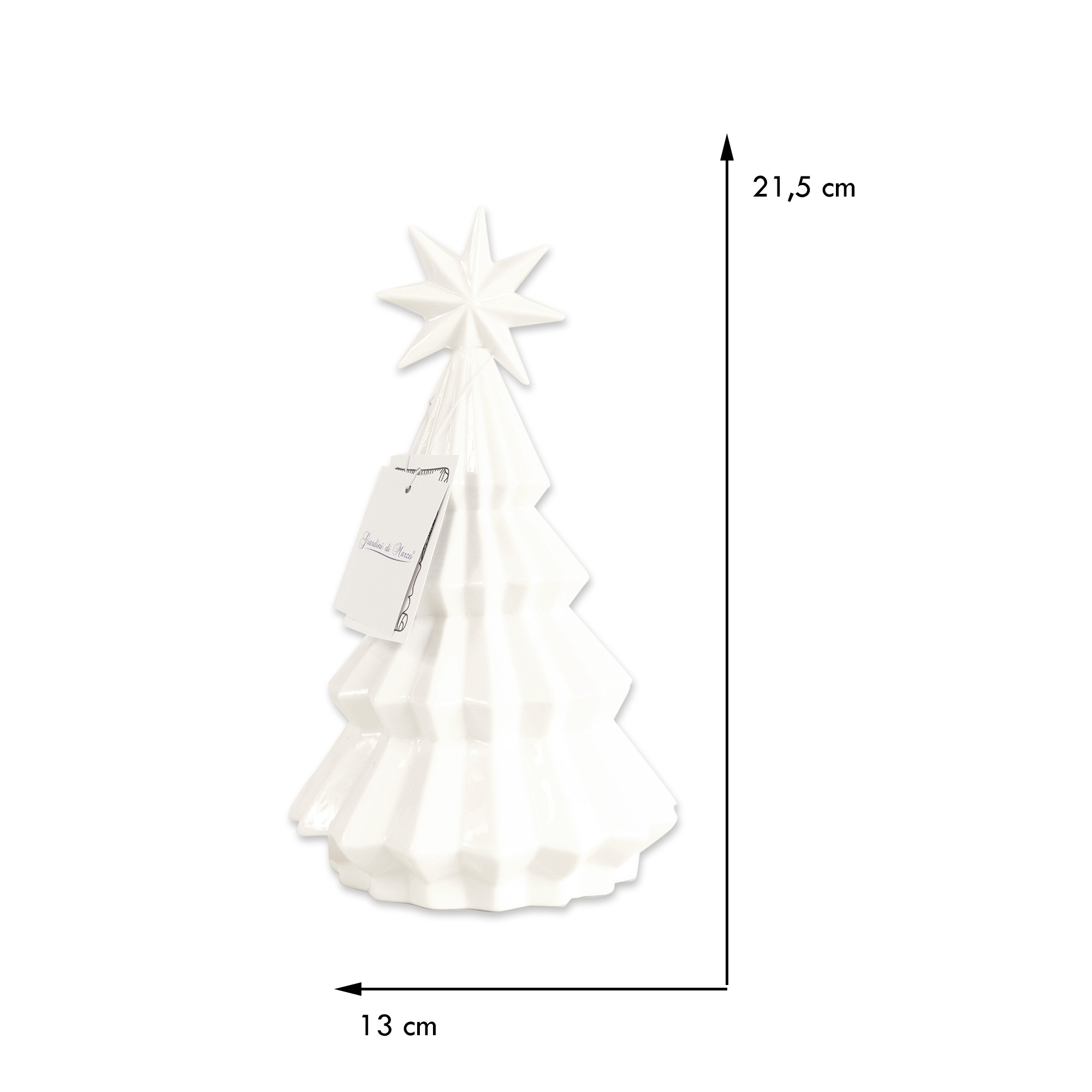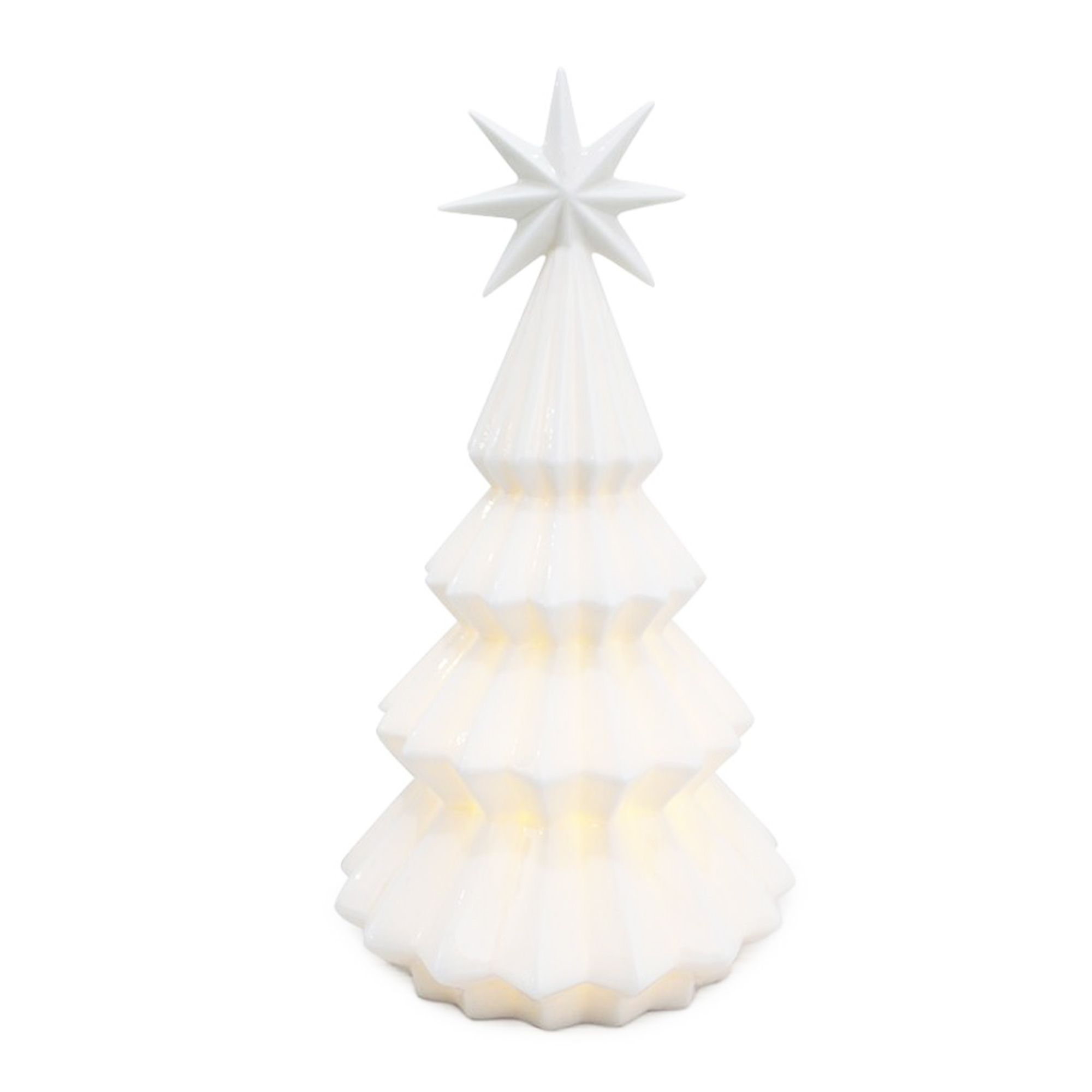 Statuetta Decorazione natalizia ideale per le festivita’ del Natale, a forma di albero in Ceramica dal design curato nei minimi dettagli, per ricreare in casa la tipica atmosfera. Realizzato con materiali di buona qualita’ facile da pulire. L’albero di Natale e’ disponibile in tre varianti in base alla grandezza e altezza dell’oggetto, tutte nella colorazione bianca, per un design versatile e adatto a qualsiasi stile di arredamento. Un oggetto perfetto per la tua collezione o anche come regalo per amici e familiari. Crea un intimo effetto luminoso, grazie alla sorgente di luce led interna alimentata a batterie. Le dimensioni delle varianti sono: Albero Piccolo larghezza 13 cm e altezza 21,5, Albero Medio larghezza 14 cm e altezza 26 cm, Albero Grande larghezza 16,3 e altezza 31,3 cm.