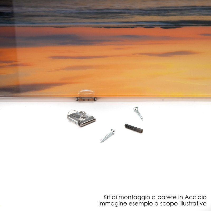La facilità di installazione è assicurata da 4 ganci robusti inclusi nella confezione, che permettono un montaggio semplice e sicuro. Inoltre, la sua superficie lavabile e la resistenza al calore lo rendono un complemento d'arredo versatile, ideale anche come paraschizzi in cucina.