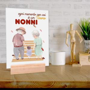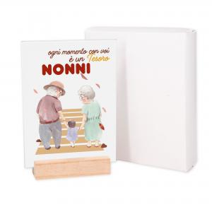 La struttura in legno naturale funge da piedino e supporto da tavolo, mentre il vetro protegge l’immagine da graffi e polvere, garantendo durabilita’ e qualita’ nel tempo. La grafica dedicata alla Festa dei Nonni, aggiunge un valore sentimentale, rendendolo un regalo ideale per dimostrare affetto e gratitudine in un giorno speciale.