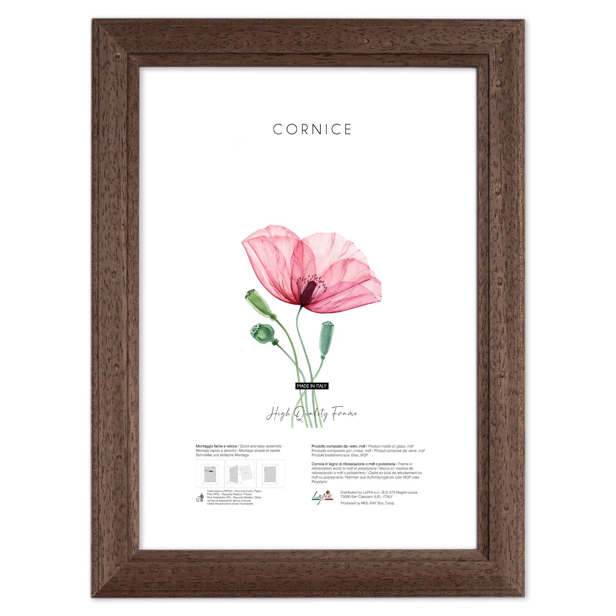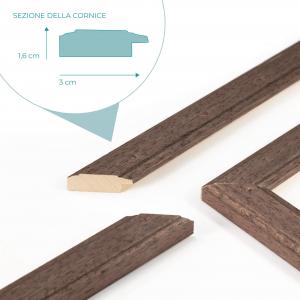 Il Portafoto dal caratteristico colore noce, ha uno spessore di 1,6 cm e una larghezza di 3 cm, misure che si riferiscono alle dimensioni interne della cornice. le misure delle varianti di dimensione disponibili si riferiscono alle dimensioni interne della cornice per accogliere il soggetto da incorniciare.