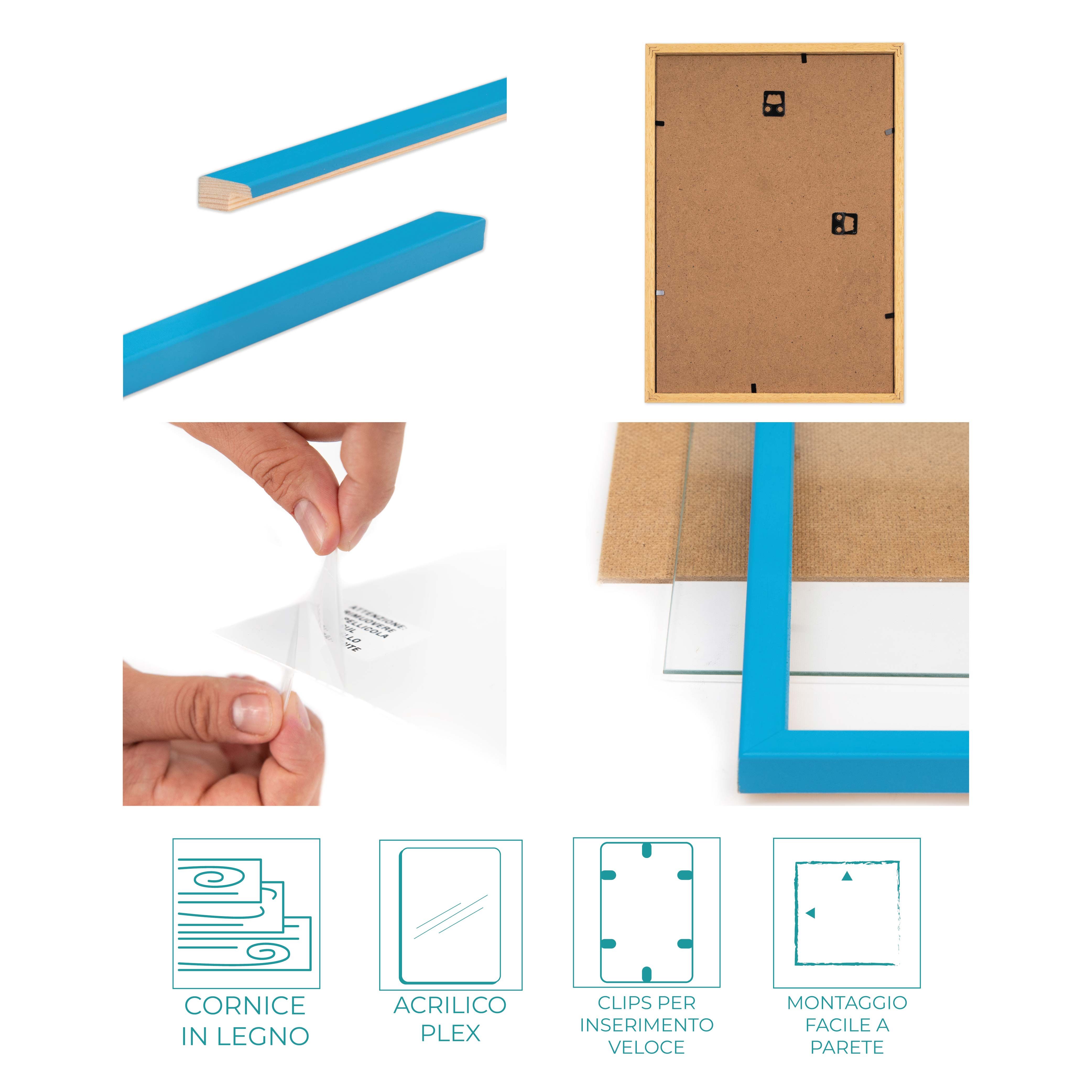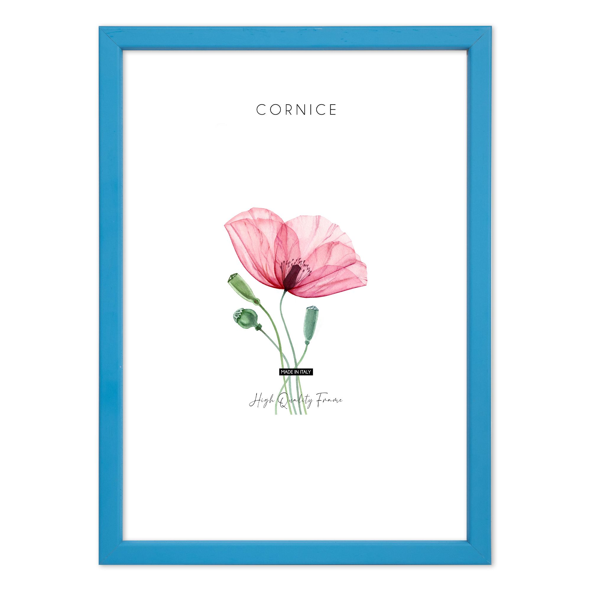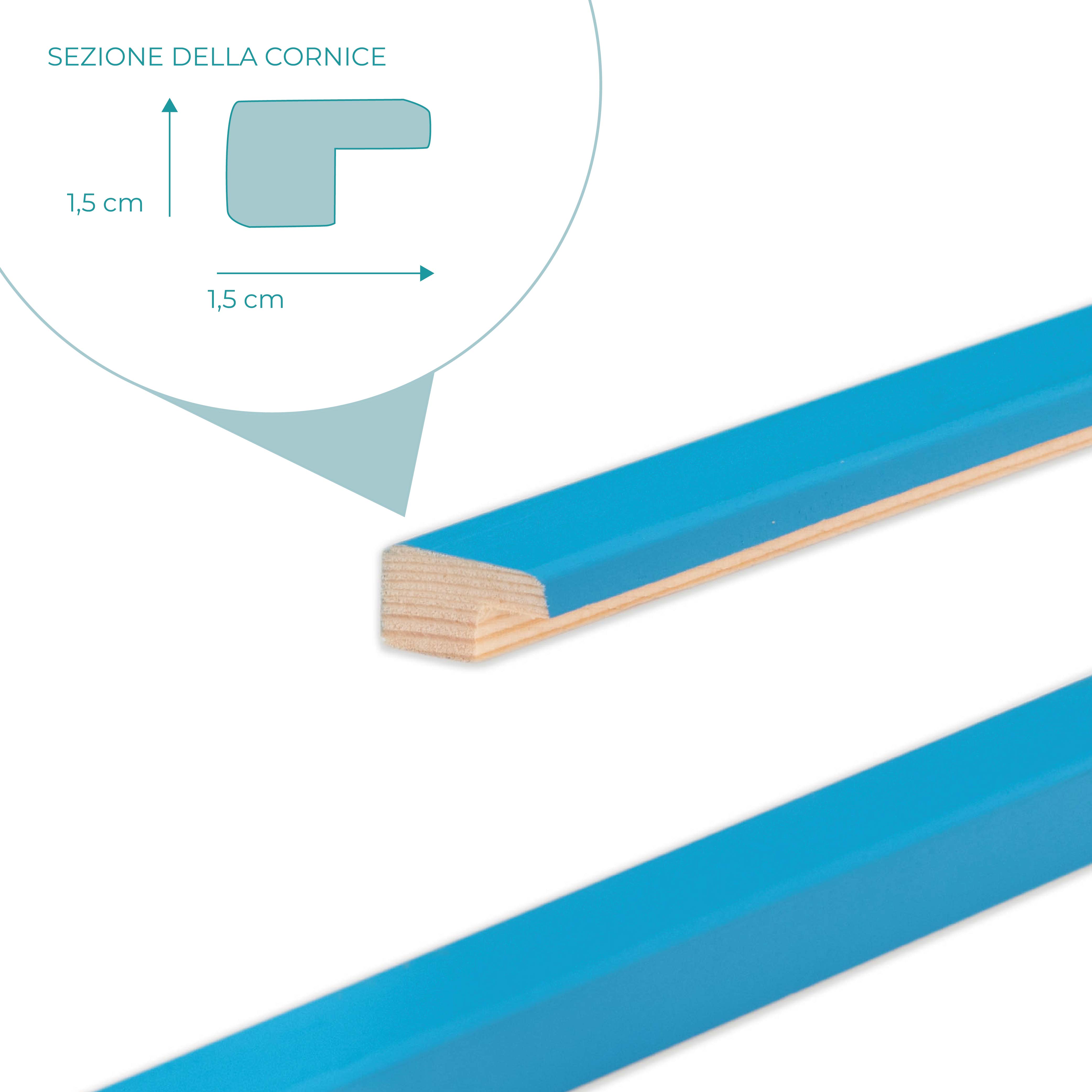 Cornice in Legno BOMBER Blu Celeste con spessore o altezza della cornice di 1,5 cm e larghezza di 1,5 cm, si adatta ad ambienti moderni e colorati, industrial ma anche classici e dallo stile tradizionale. Le misure che vi proponiamo sono quelle interne del soggetto da incorniciare.