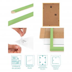Ogni cornice in legno portafoto è dotata di un sistema di clips in metallo che permette di inserire facilmente la foto o l’immagine con l’apposito pannello in legno ecologico fornito. Questo sistema facilita l'uso e garantisce un montaggio rapido e sicuro.
