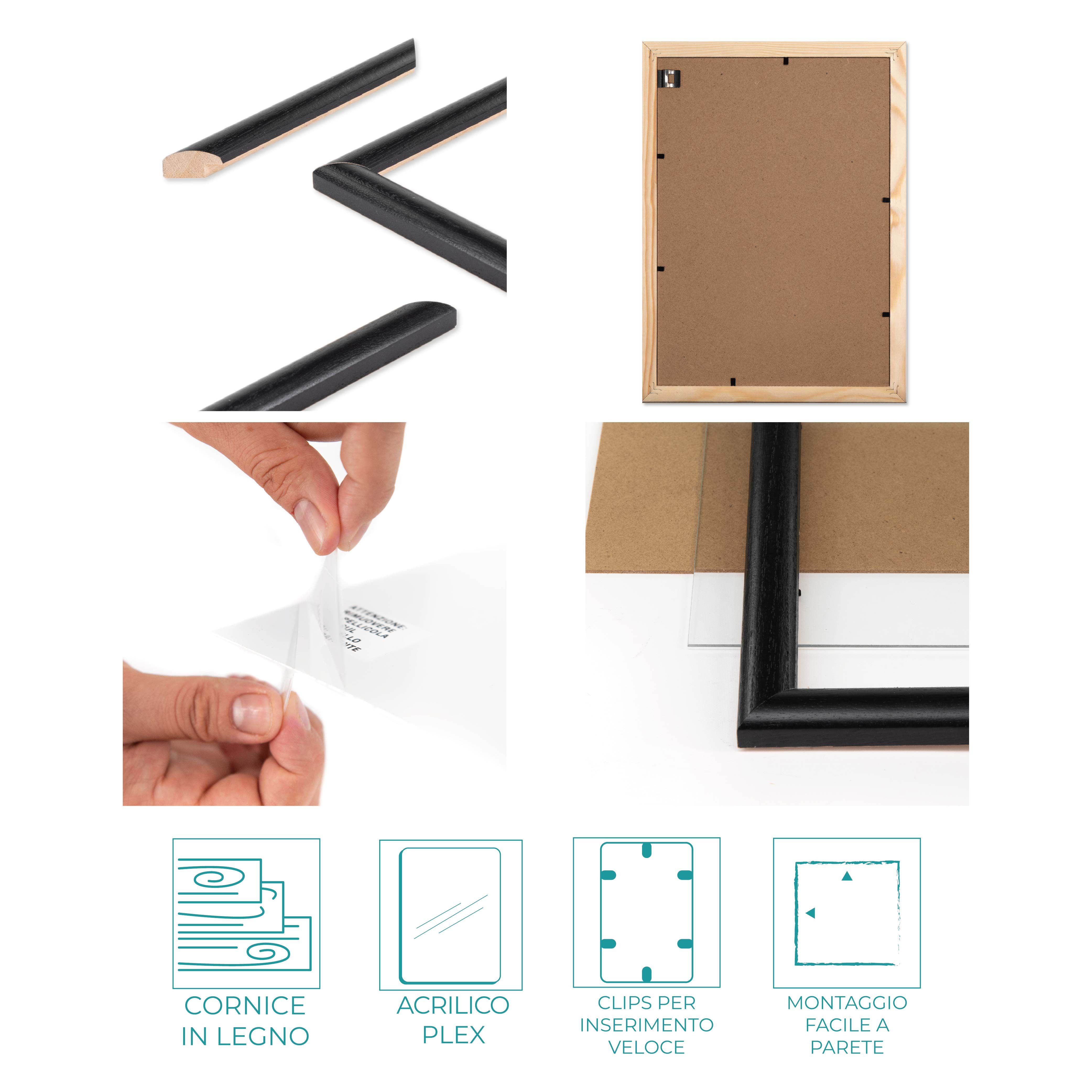 Le misure proposte si riferiscono alle dimensioni interne del soggetto da incorniciare, consentendo adattabilità nell’utilizzo con vari formati.