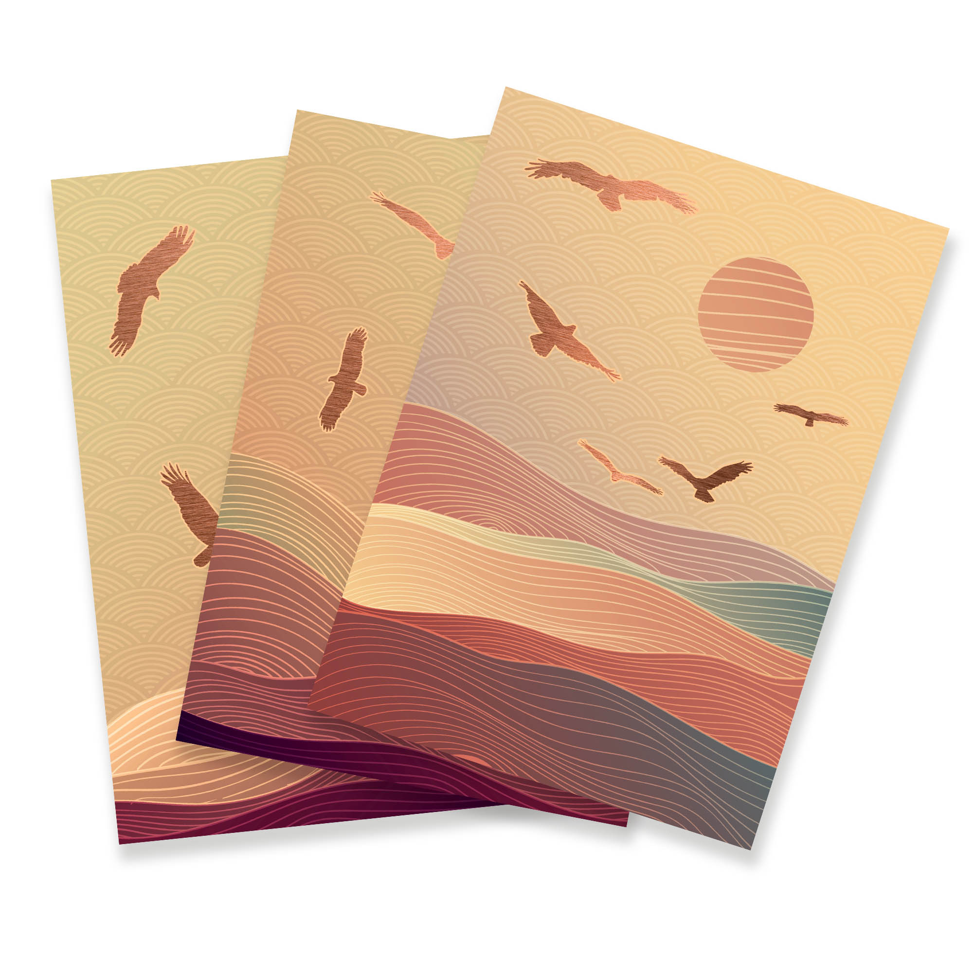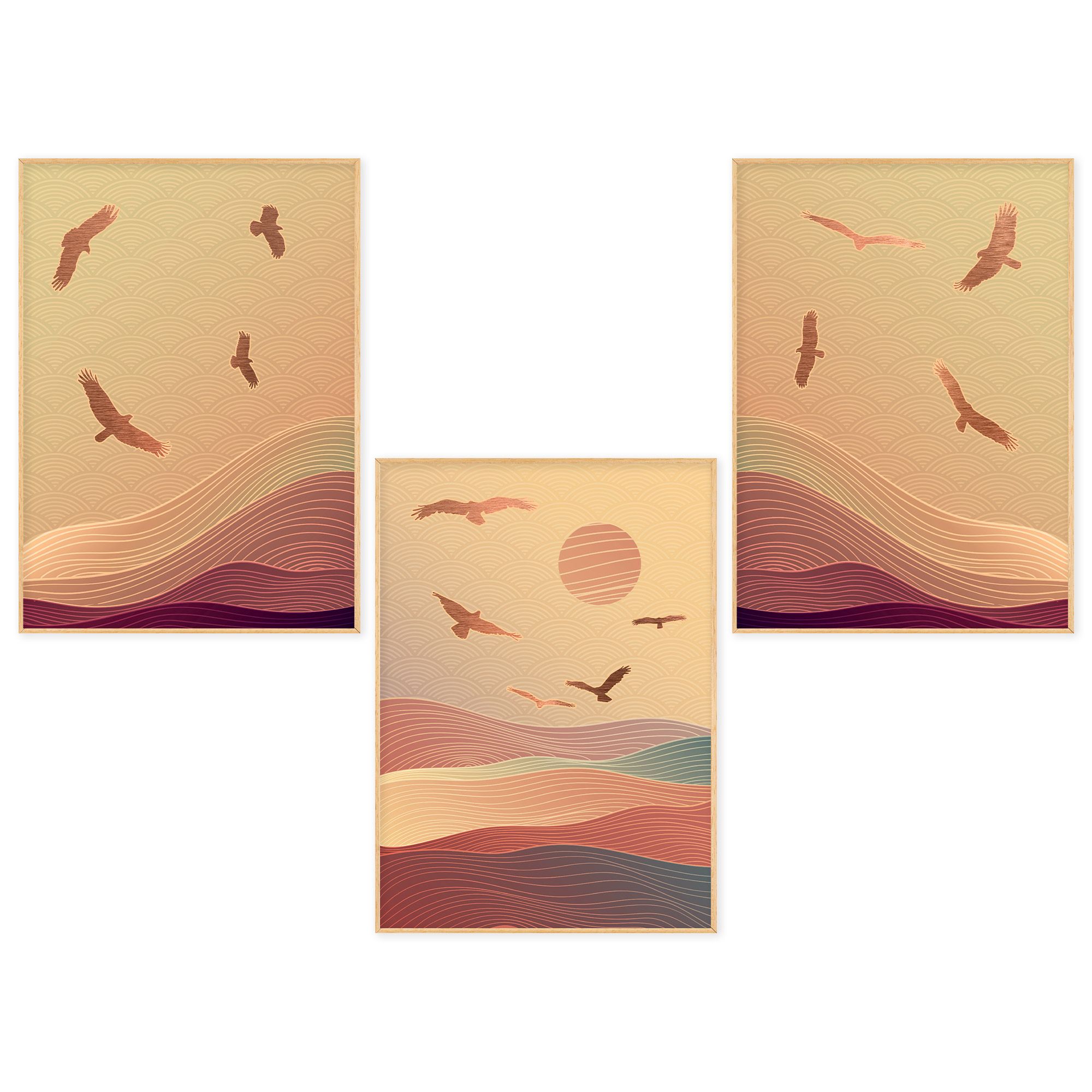 Set con 3 POSTER Quadri moderni DESERT A3 29,7x42 ART PRINTS METAL finitura metallizzata soggiorno camera da letto, astratti SENZA CORNICE -