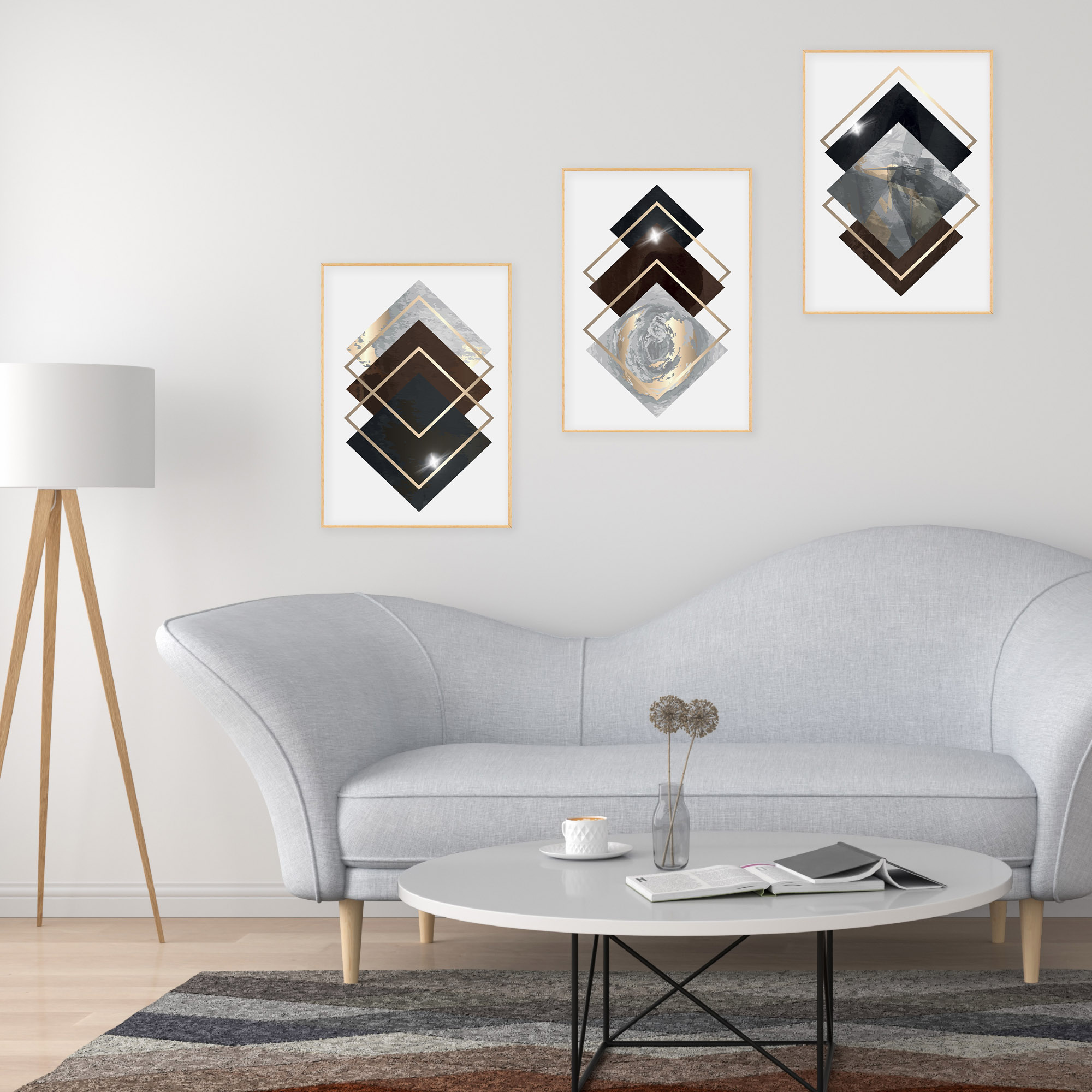 Stile e personalita’ alla tua casa con il nostro Set con 3 splendidi Poster da parete. Realizzati con materiali di alta qualita’ con carta 300 gr FSC stampata con inchiostri vivaci e caratterizzati da un effetto glamour pregiato Metalizzato con veri tratti dorati o argentati e finitura colorata, oro o argento, questi poster sono perfetti per decorare qualsiasi stanza della tua casa.