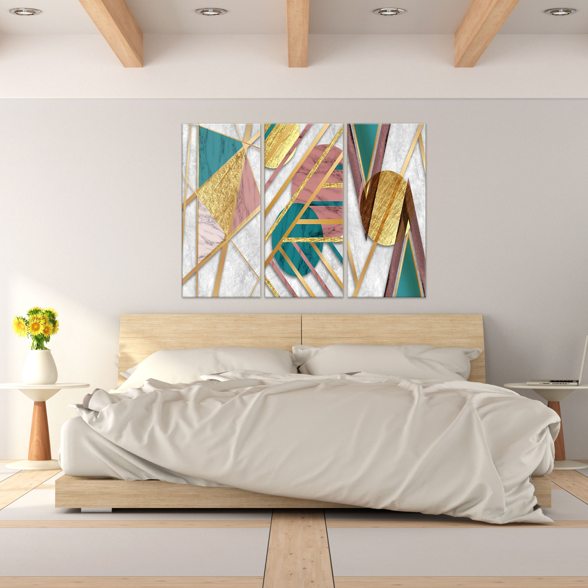 Quadro Moderno 3 pezzi stampa su tela GRANDE QUADRO 122x180 cm GEOMETRIES 1, figure geometriche per soggiorno, capezzale camera da letto, ufficio -