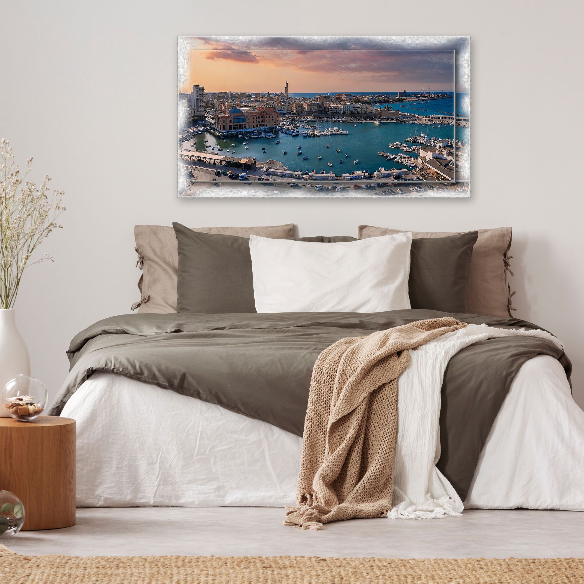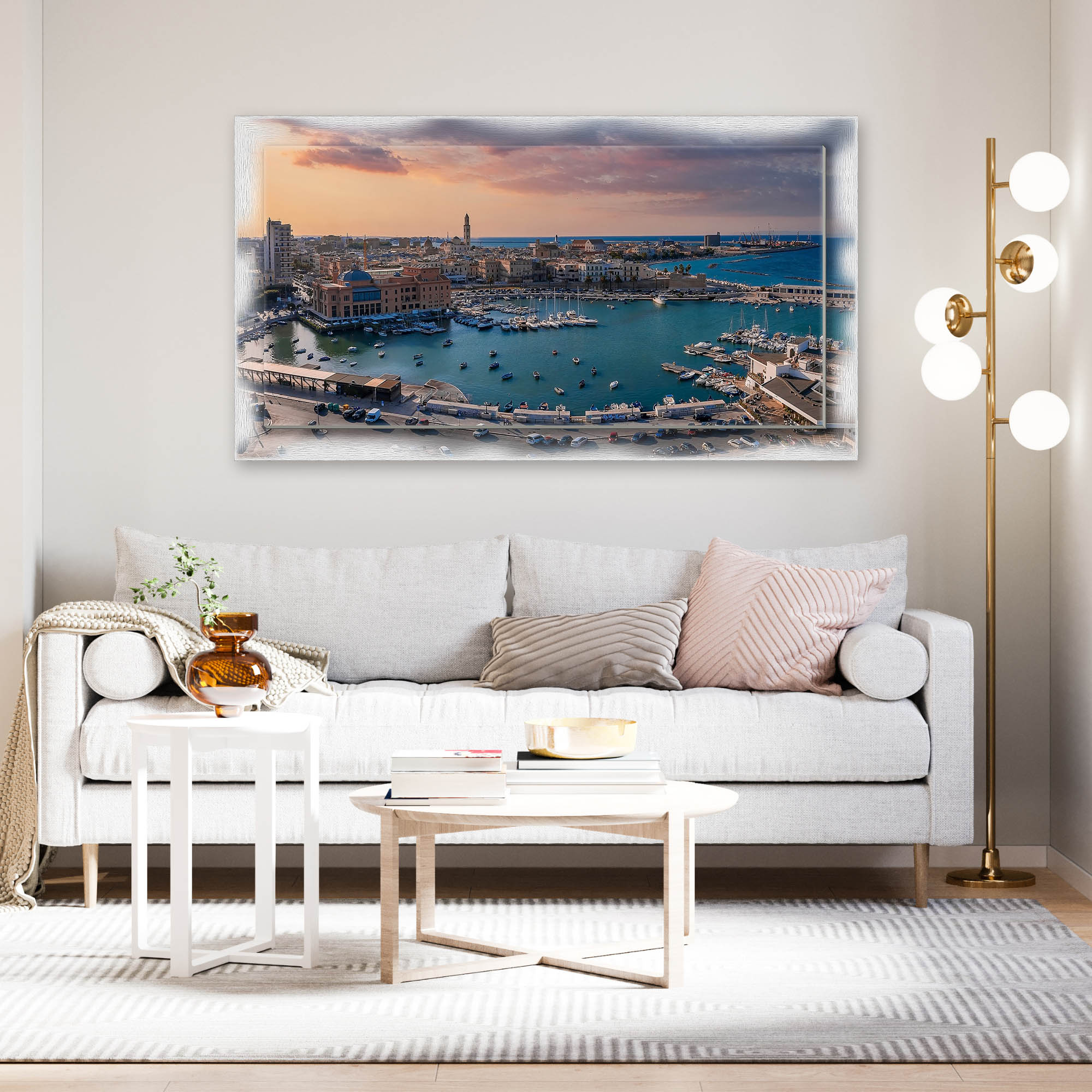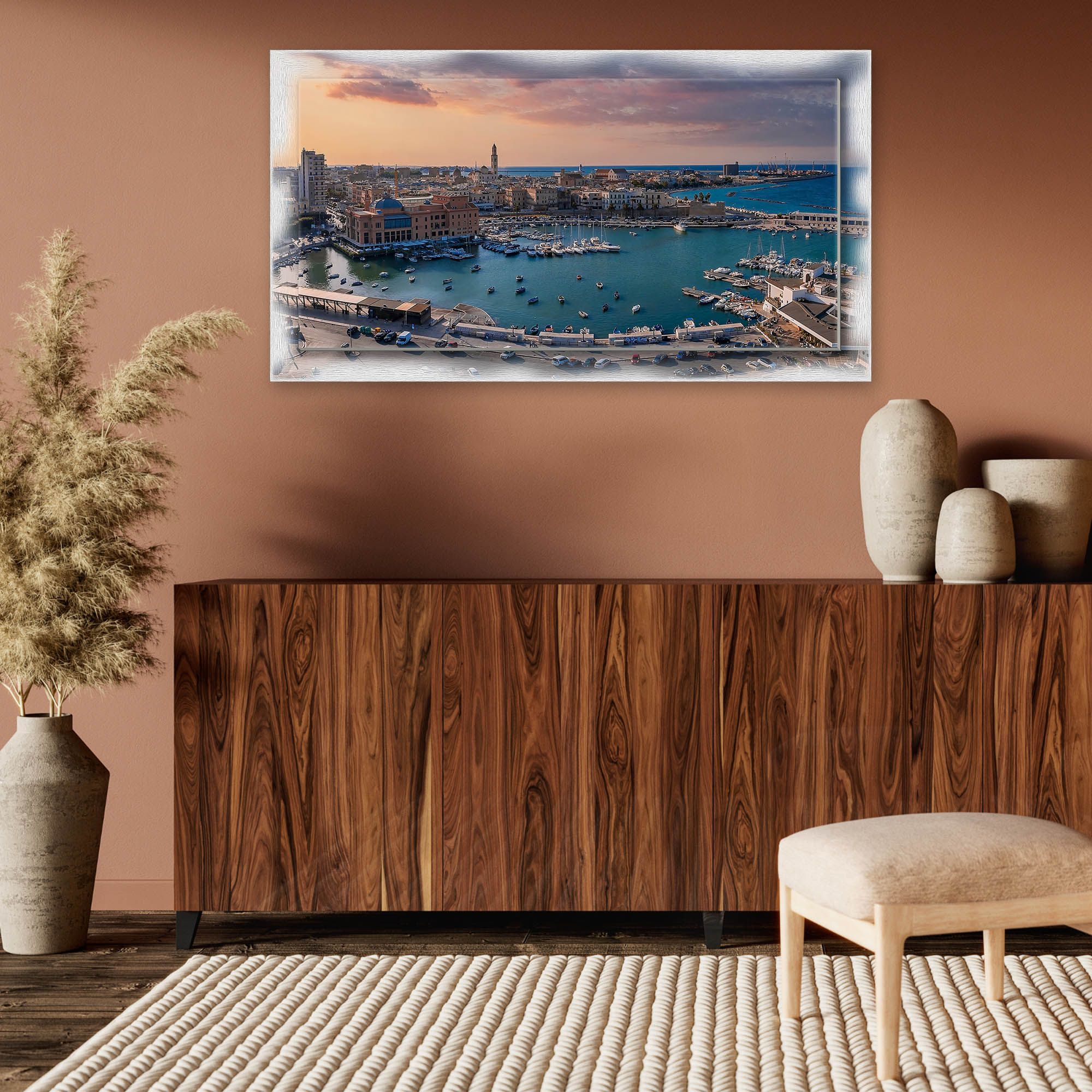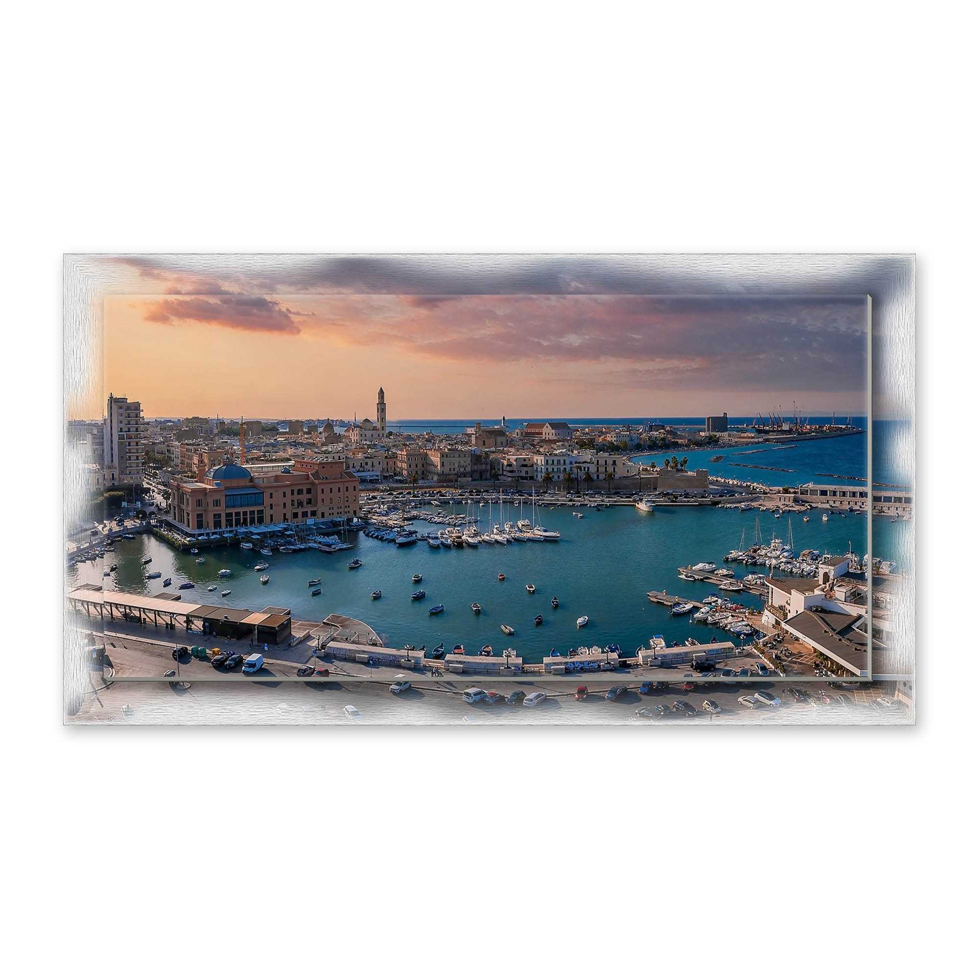 Lupia - Quadro moderno su Tela con Cornice stampata NEWEXT 75x135 cm, paesaggi localismi italiani, per casa soggiorno capezzale camera da letto hotel ufficio, BARI PANORAMA PORTO -