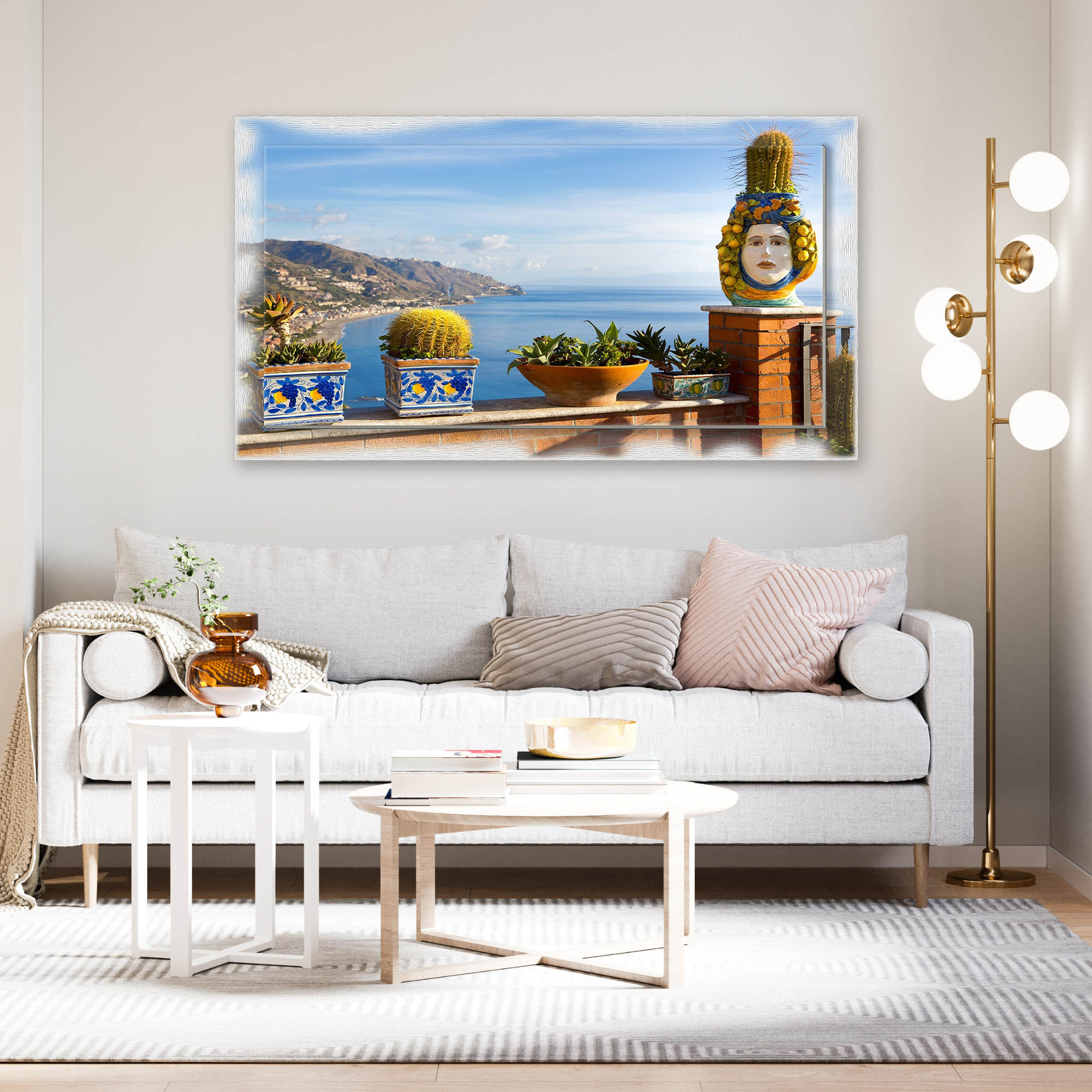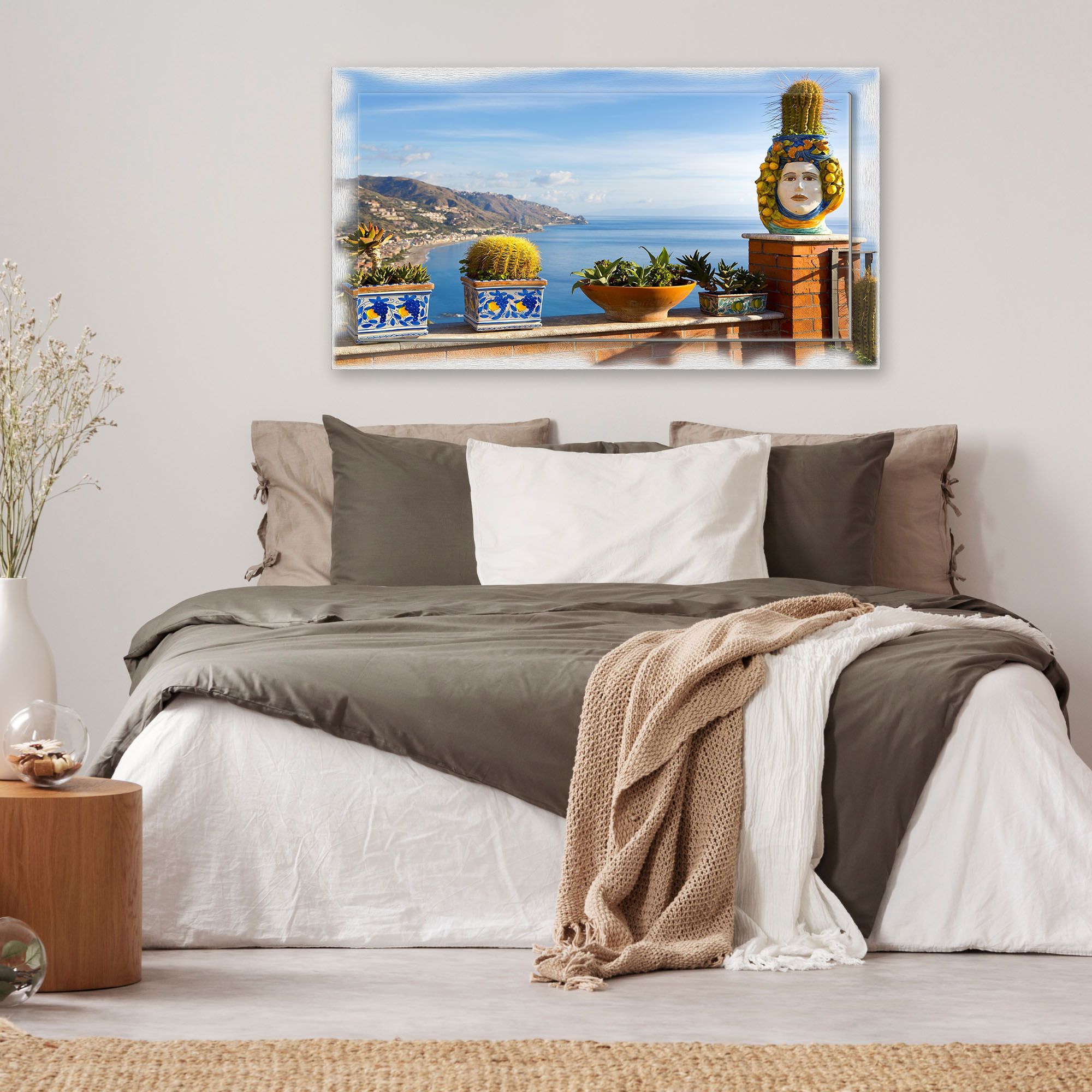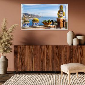 Lupia - Quadro moderno su Tela con Cornice stampata NEWEXT 75x135 cm, paesaggi localismi italiani, per casa soggiorno capezzale camera da letto hotel ufficio, CATANIA PANORAMA TAORMINA -