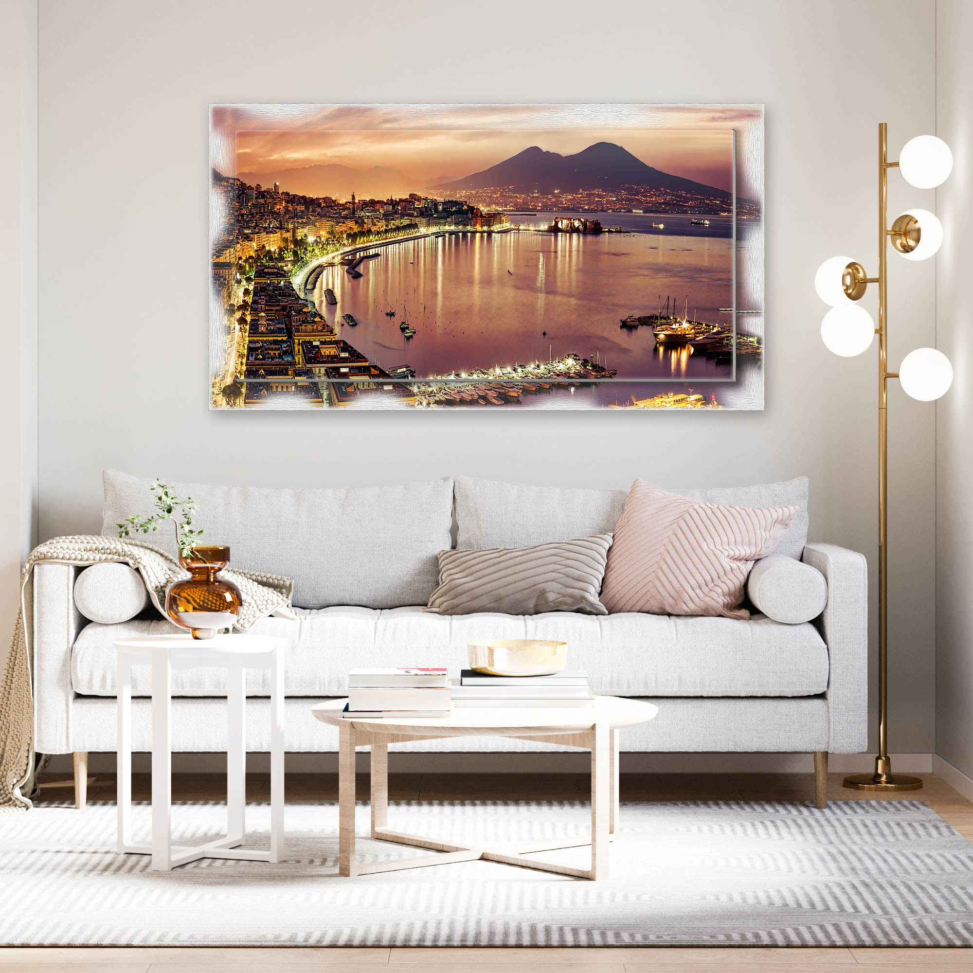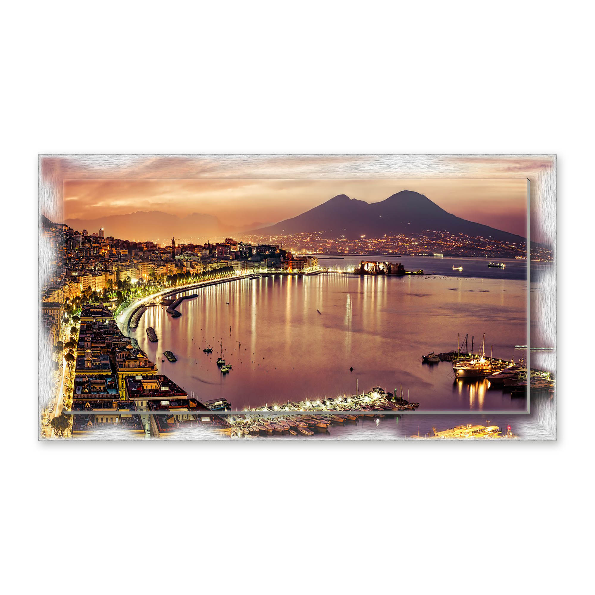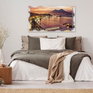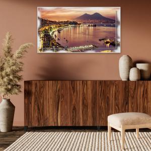 Lupia - Quadro moderno su Tela con Cornice stampata NEWEXT 75x135 cm, paesaggi localismi italiani, per casa soggiorno capezzale camera da letto hotel ufficio, NAPOLI VESUVIO NIGHT -