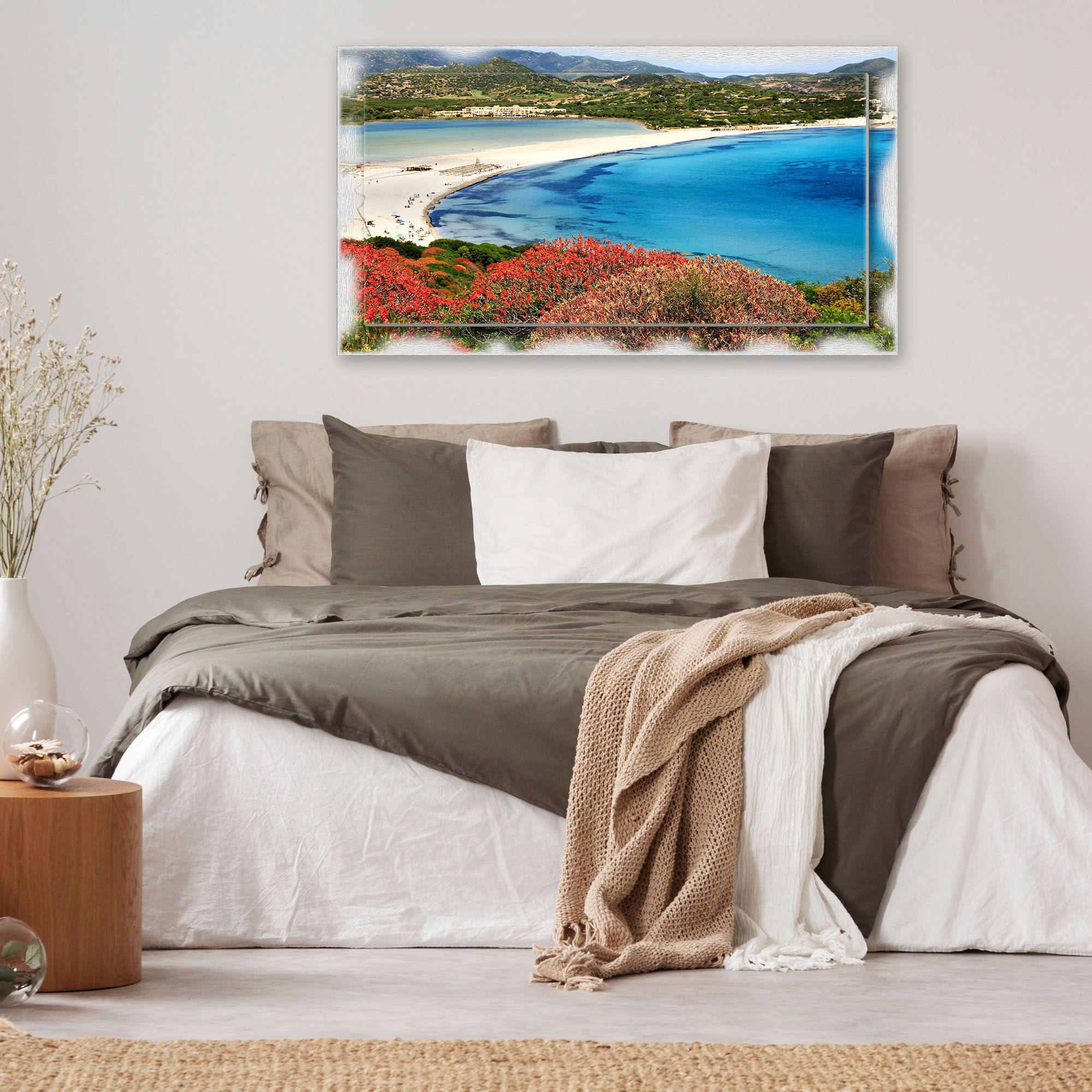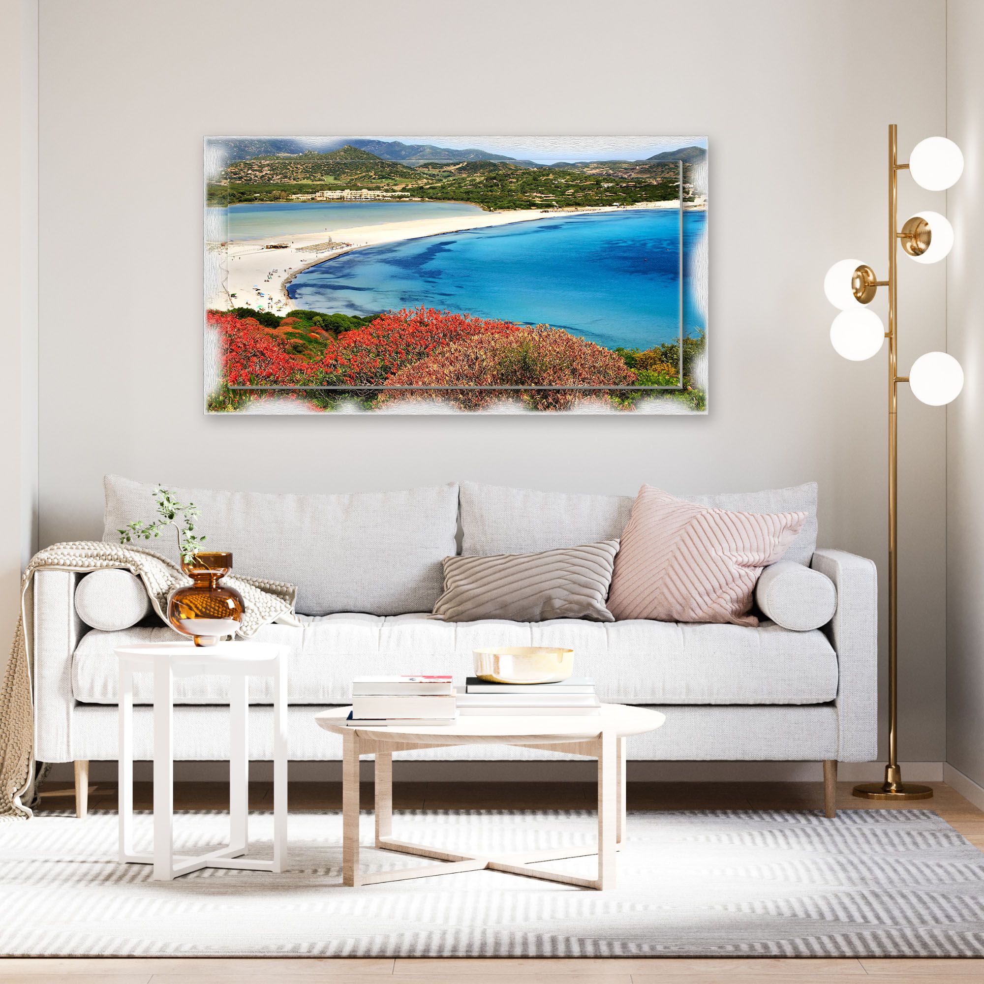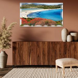 Lupia - Quadro moderno su Tela con Cornice stampata NEWEXT 75x135 cm, paesaggi localismi italiani, per casa soggiorno capezzale camera da letto hotel ufficio, SARDEGNA - PANORAMA MARE -