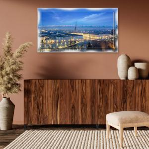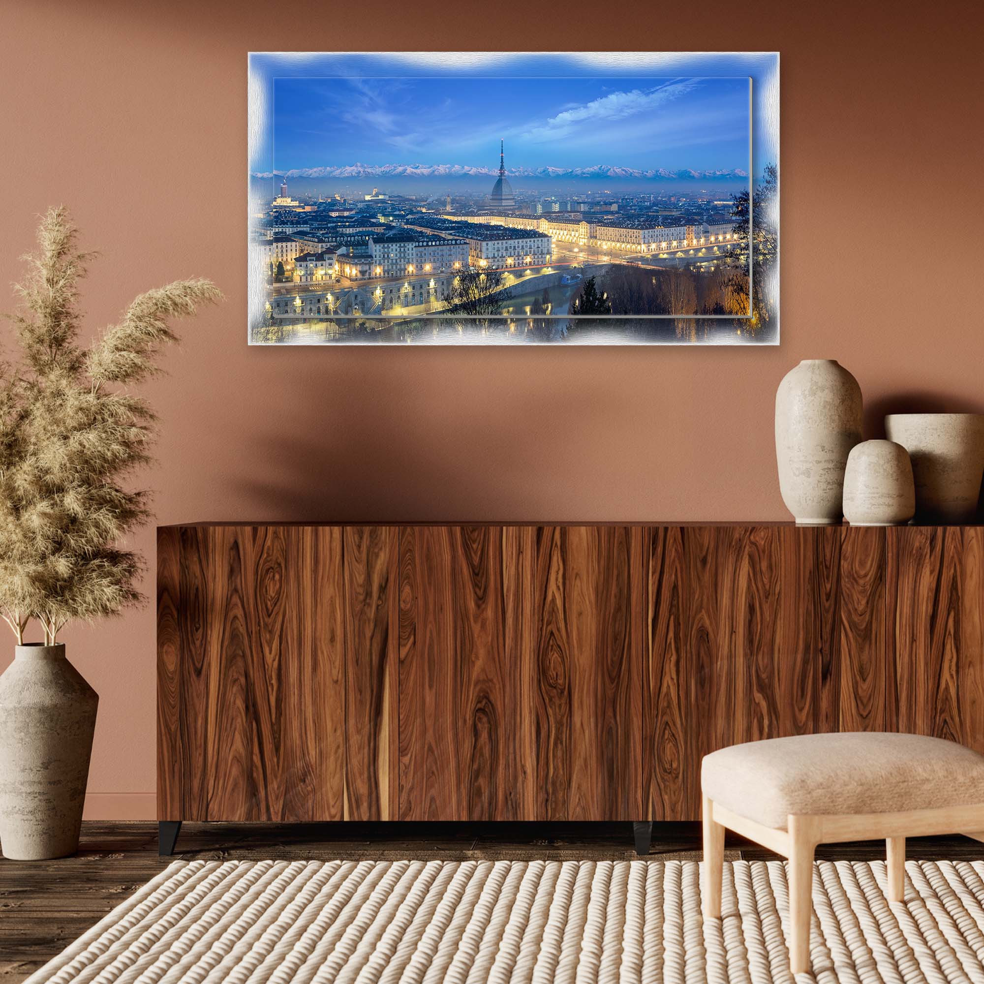 Lupia - Quadro moderno su Tela con Cornice stampata NEWEXT 75x135 cm, paesaggi localismi italiani, per casa soggiorno capezzale camera da letto hotel ufficio, TORINO PANORAMA SERA -